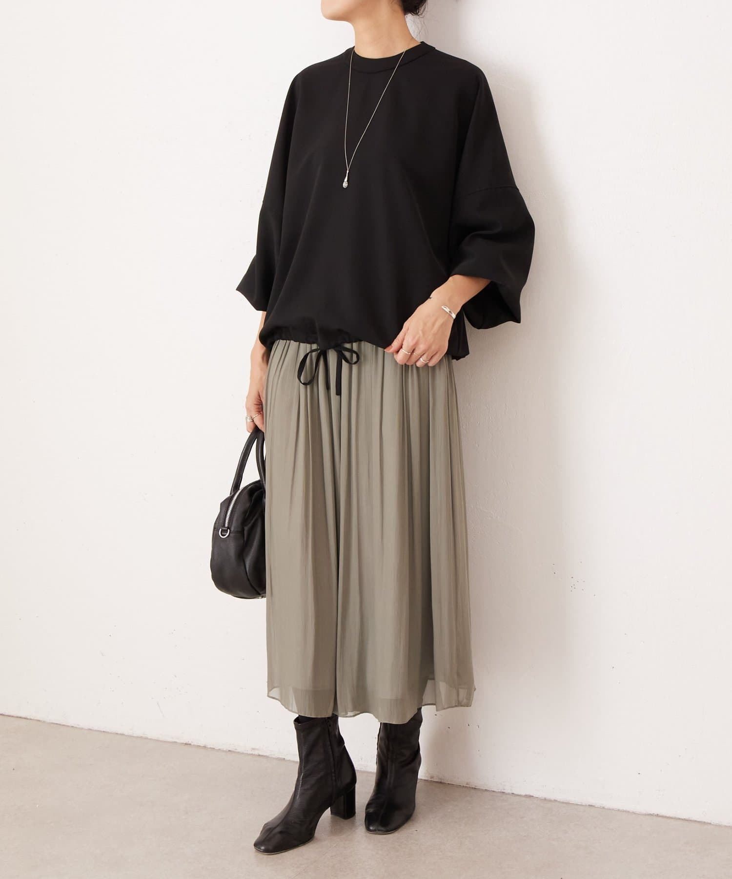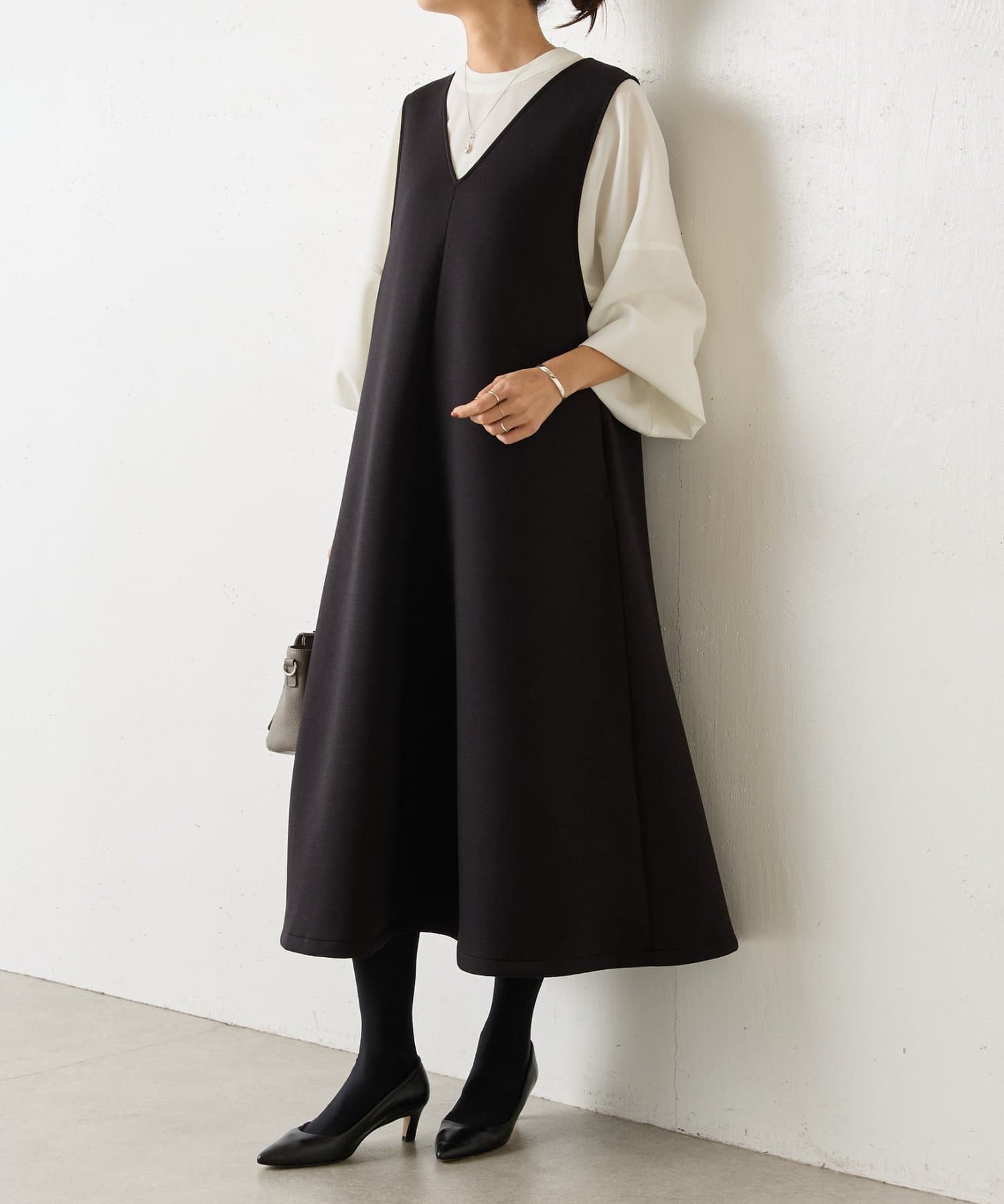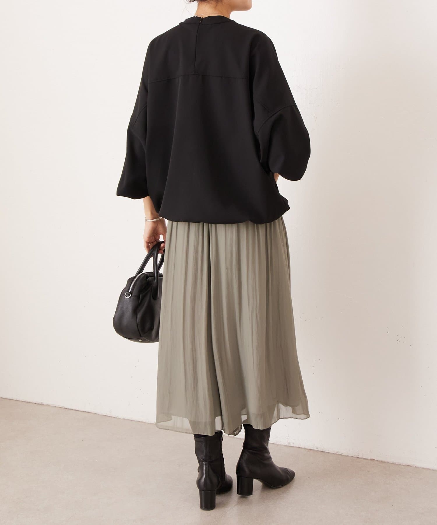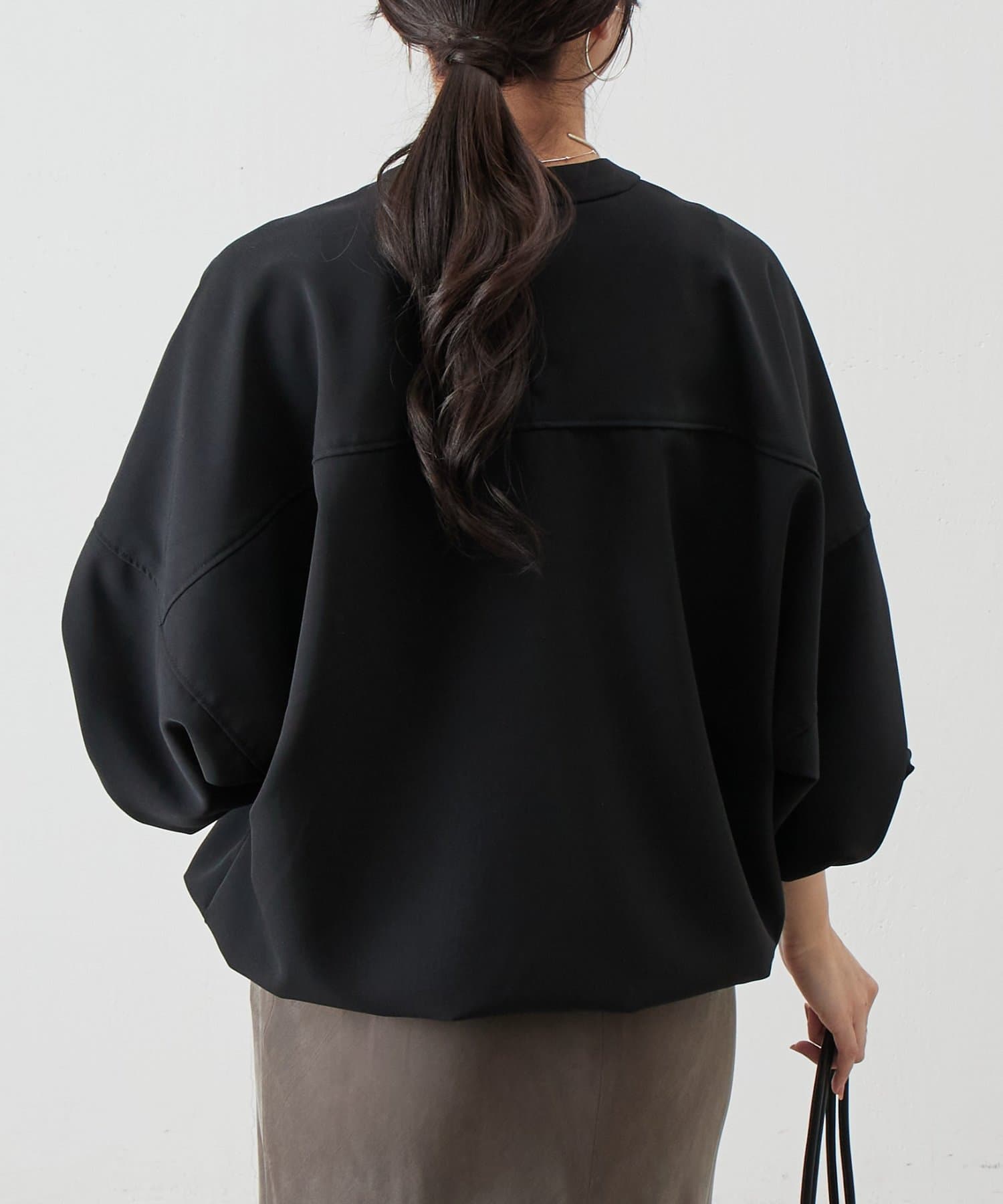 バンドカラーの上品な衿元がほどよいきちんと感を演出し、オケージョンにも活躍します。