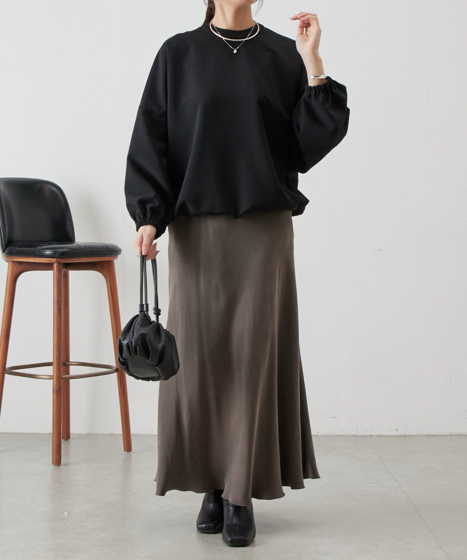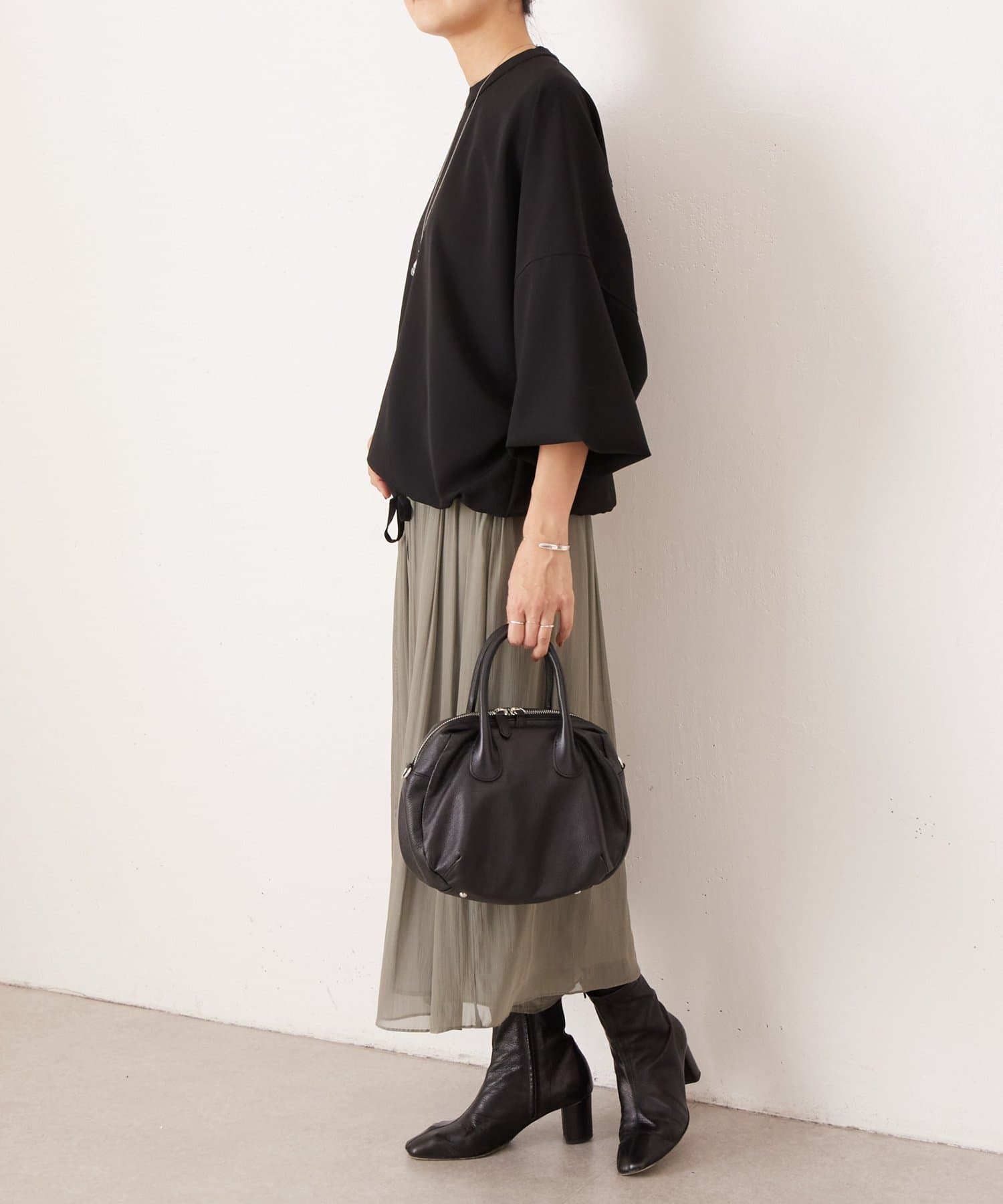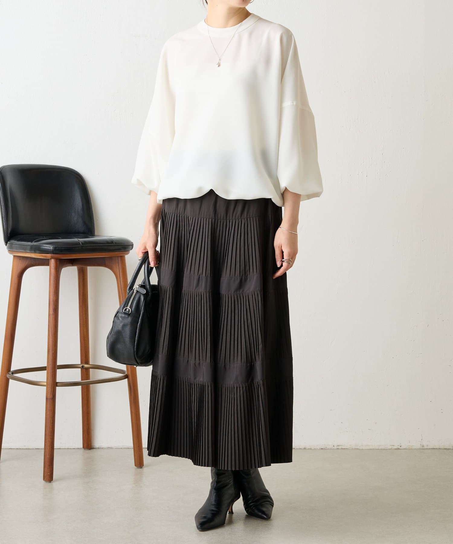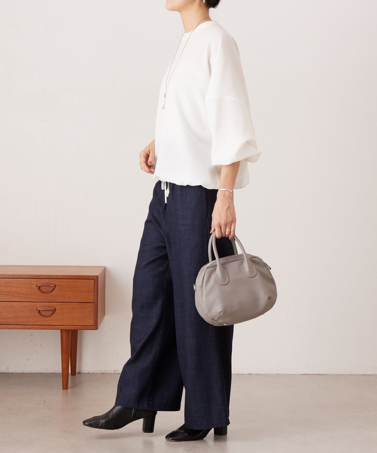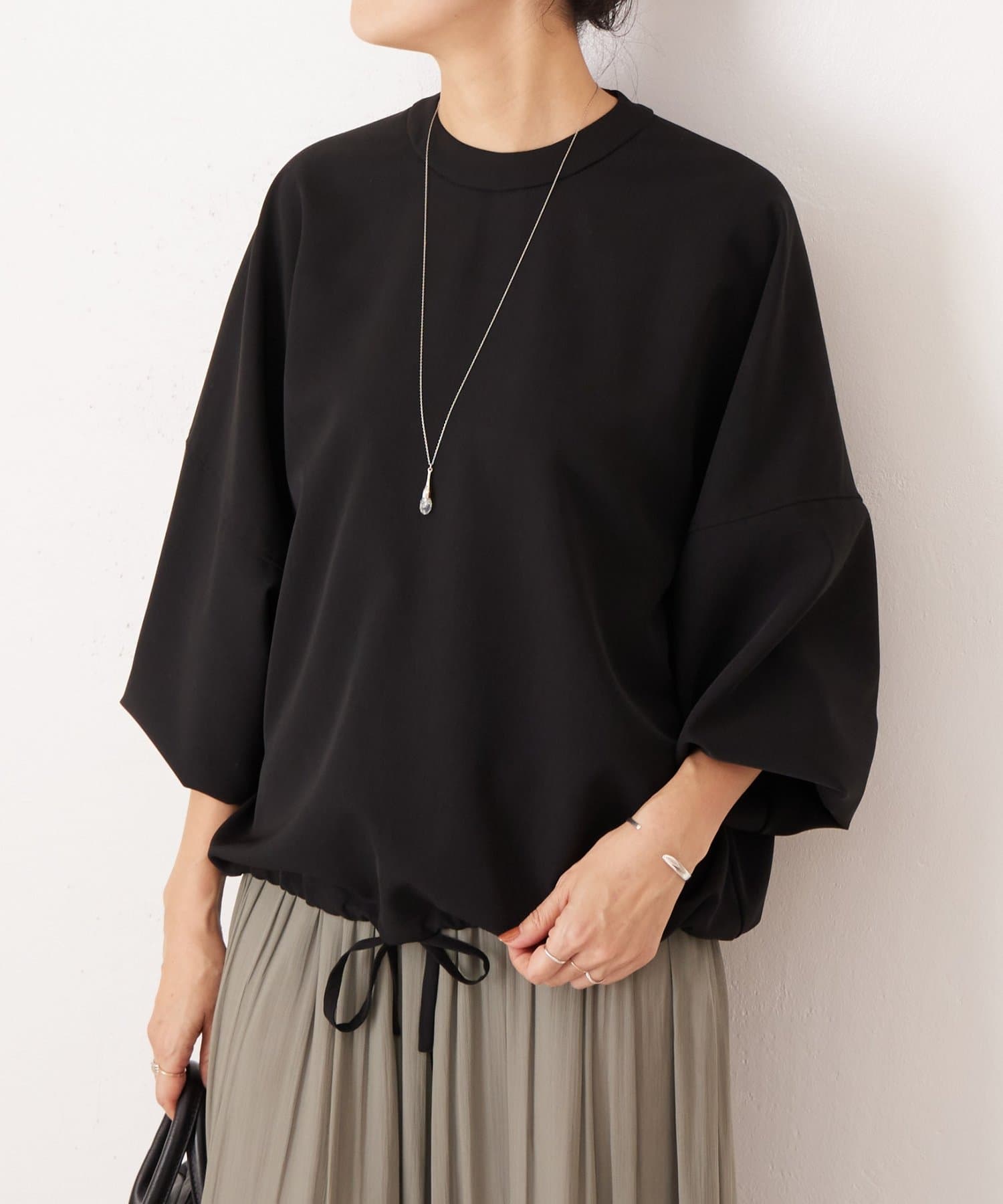 バンドカラーの上品な衿元がほどよいきちんと感を演出し、オケージョンにも活躍します。