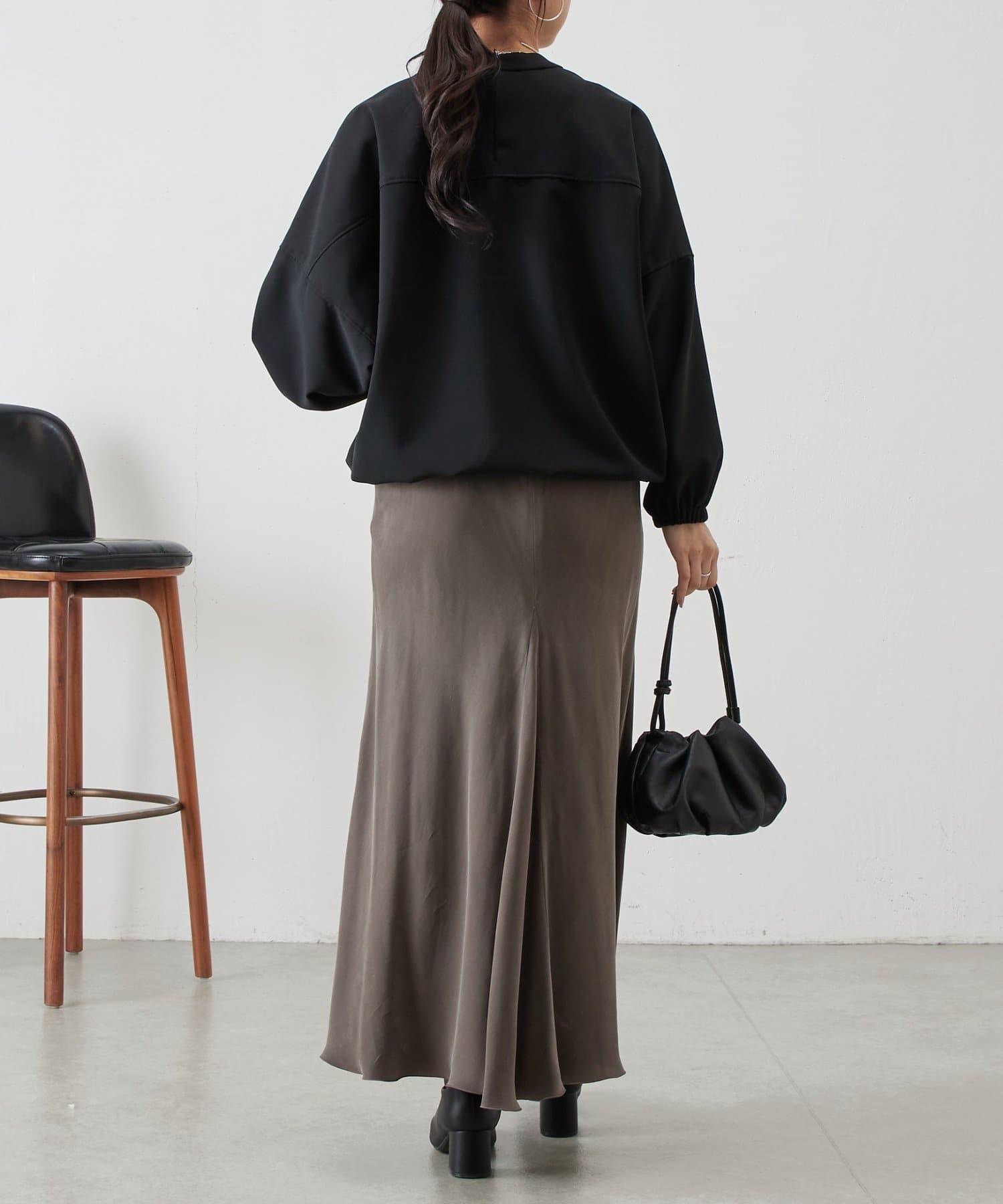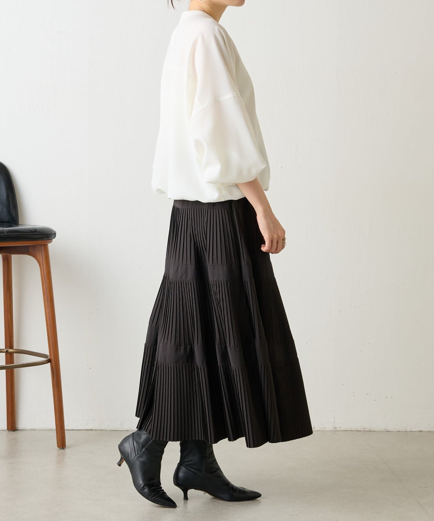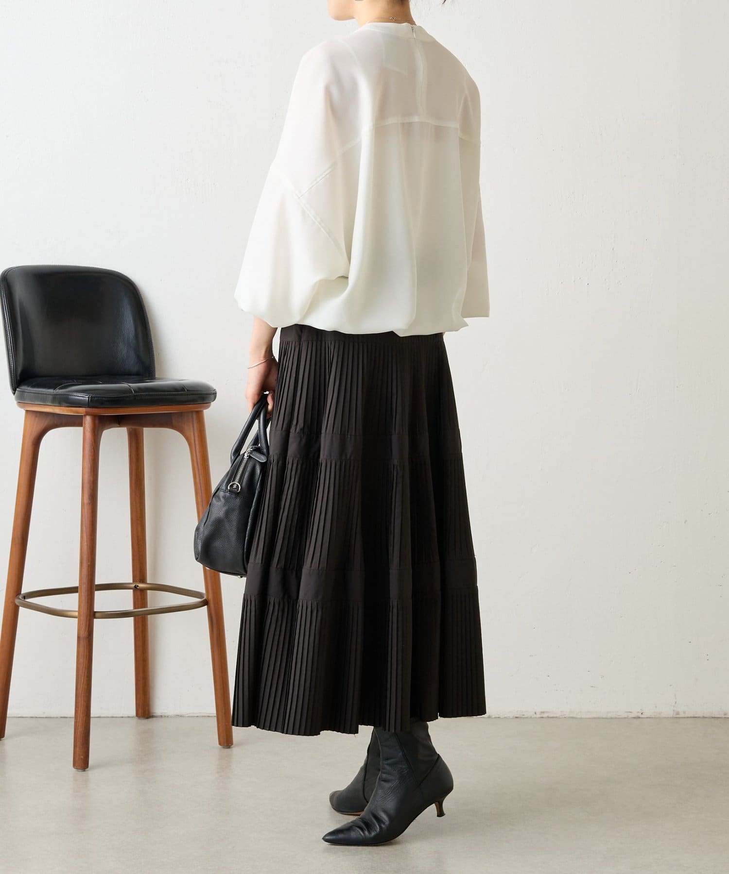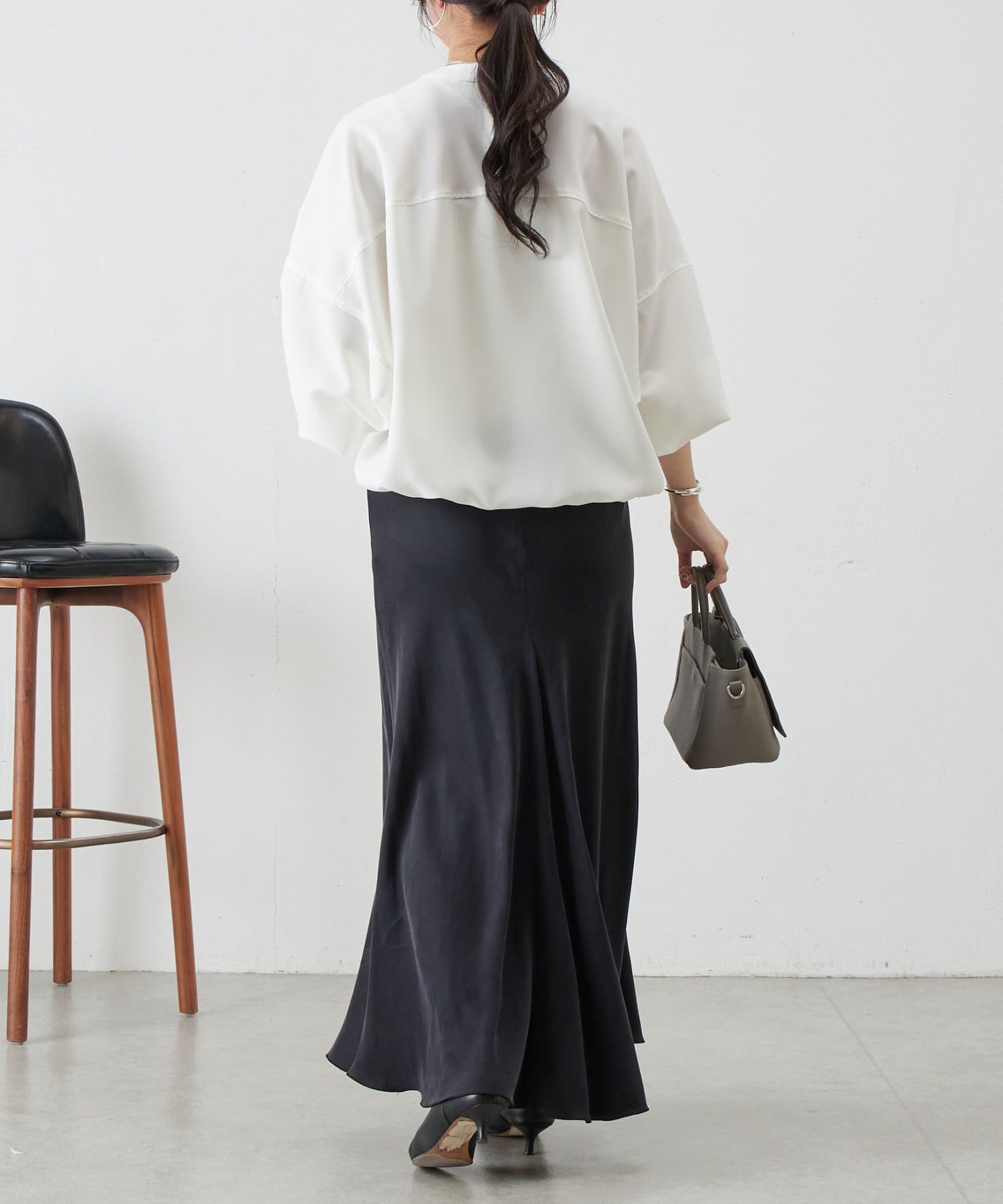 バンドカラーの上品な衿元がほどよいきちんと感を演出し、オケージョンにも活躍します。