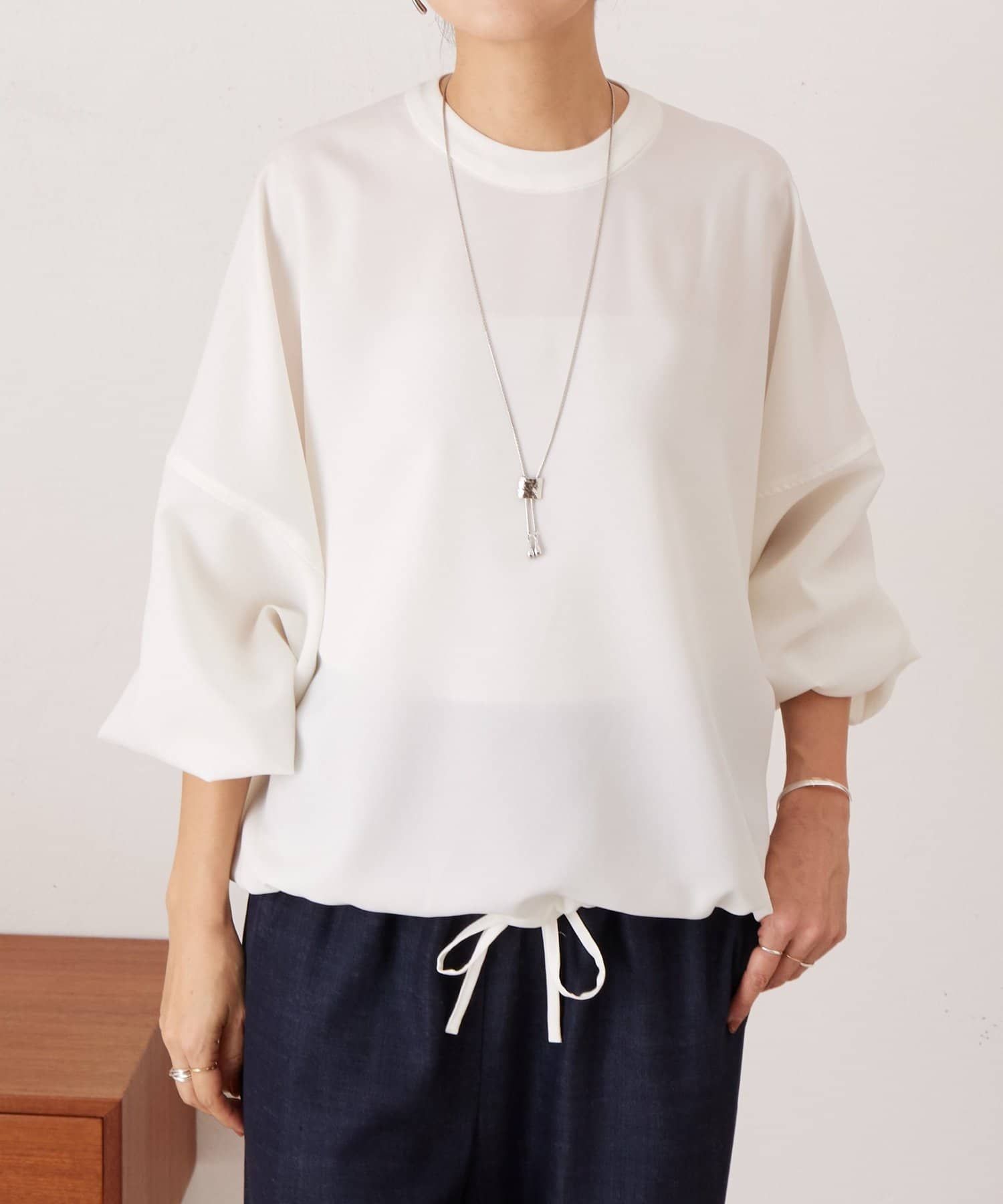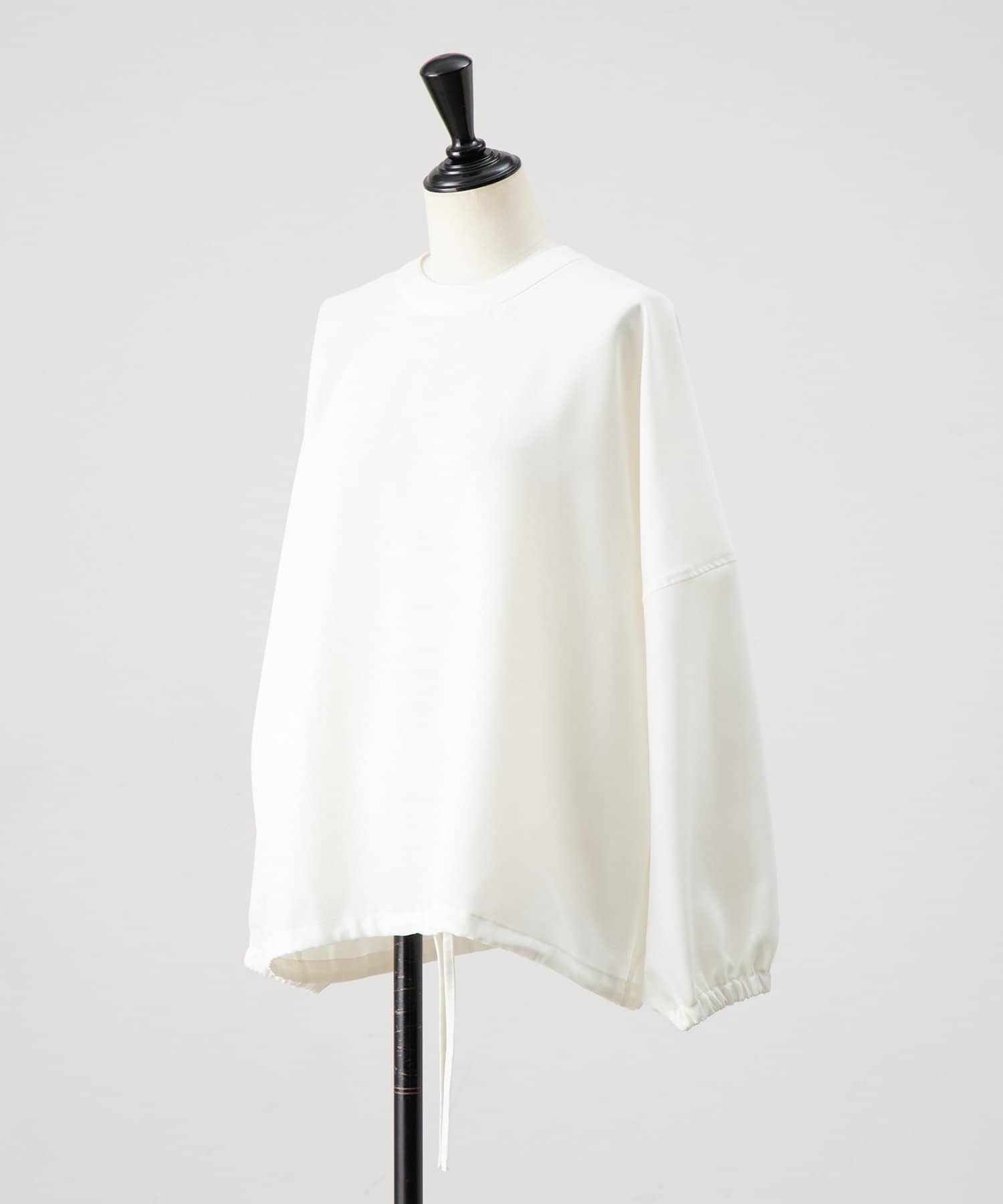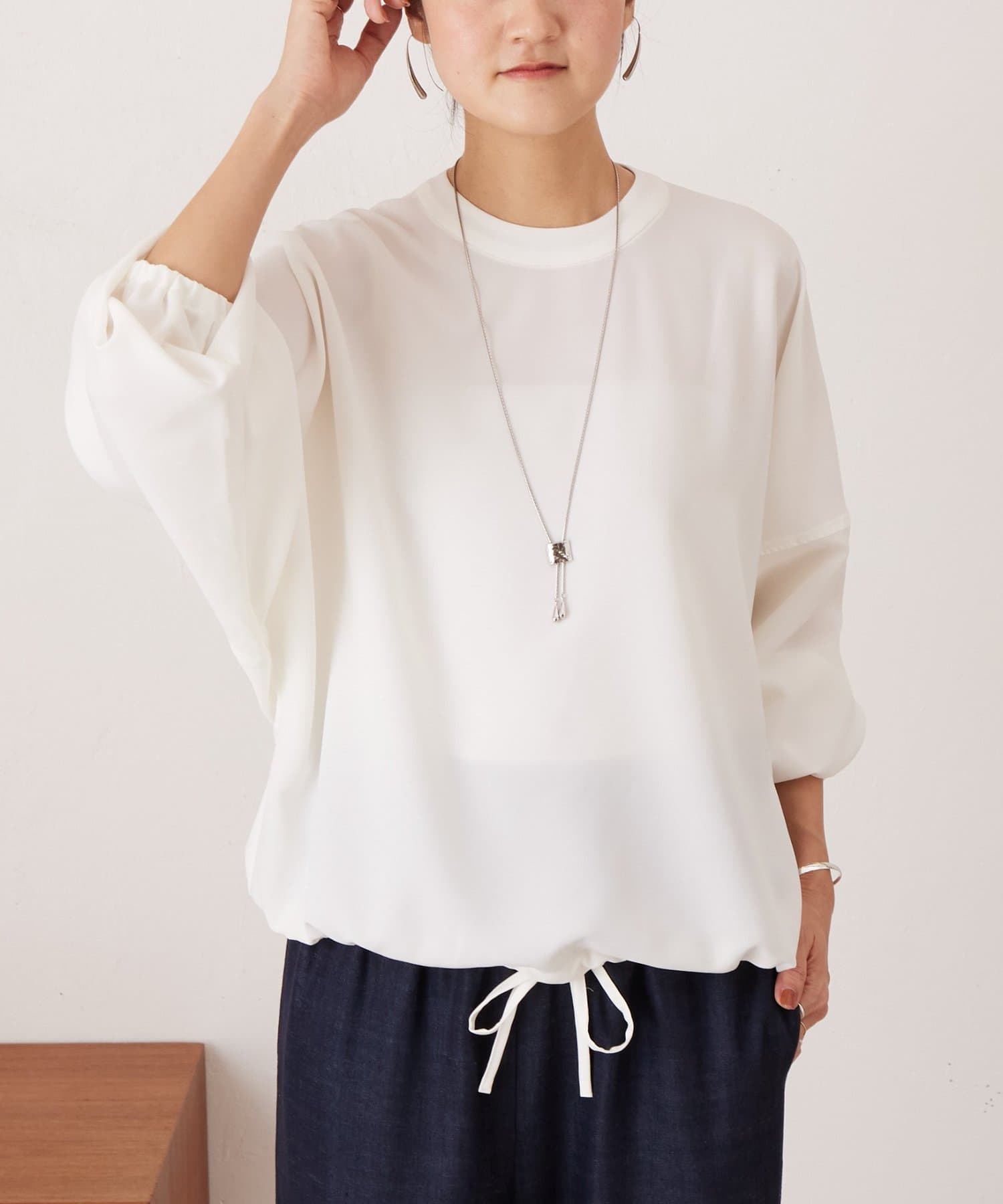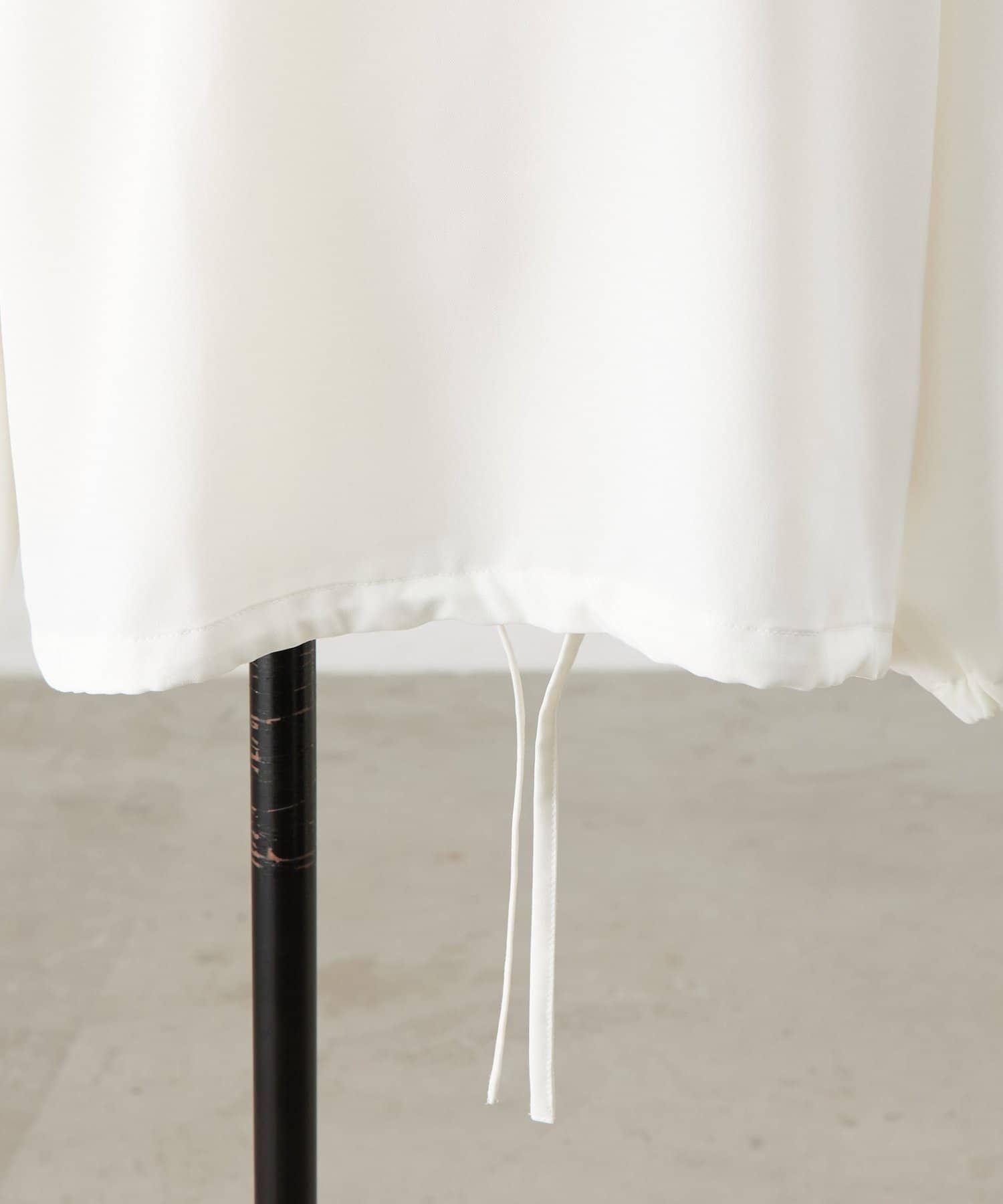 裾に通したリボンを結ぶと、ふんわりとした丸みのあるシルエットに変化します。