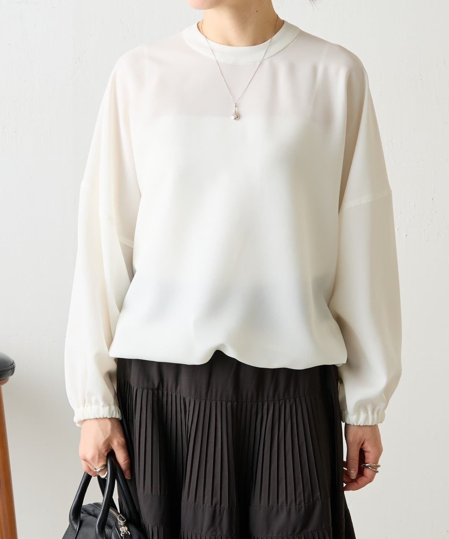 シワになりにくい、イージーケアのプルオーバーブラウス。