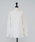 袖口は柔らかなリブ編みに切り替え、さっとかぶるだけでこなれた雰囲気に。