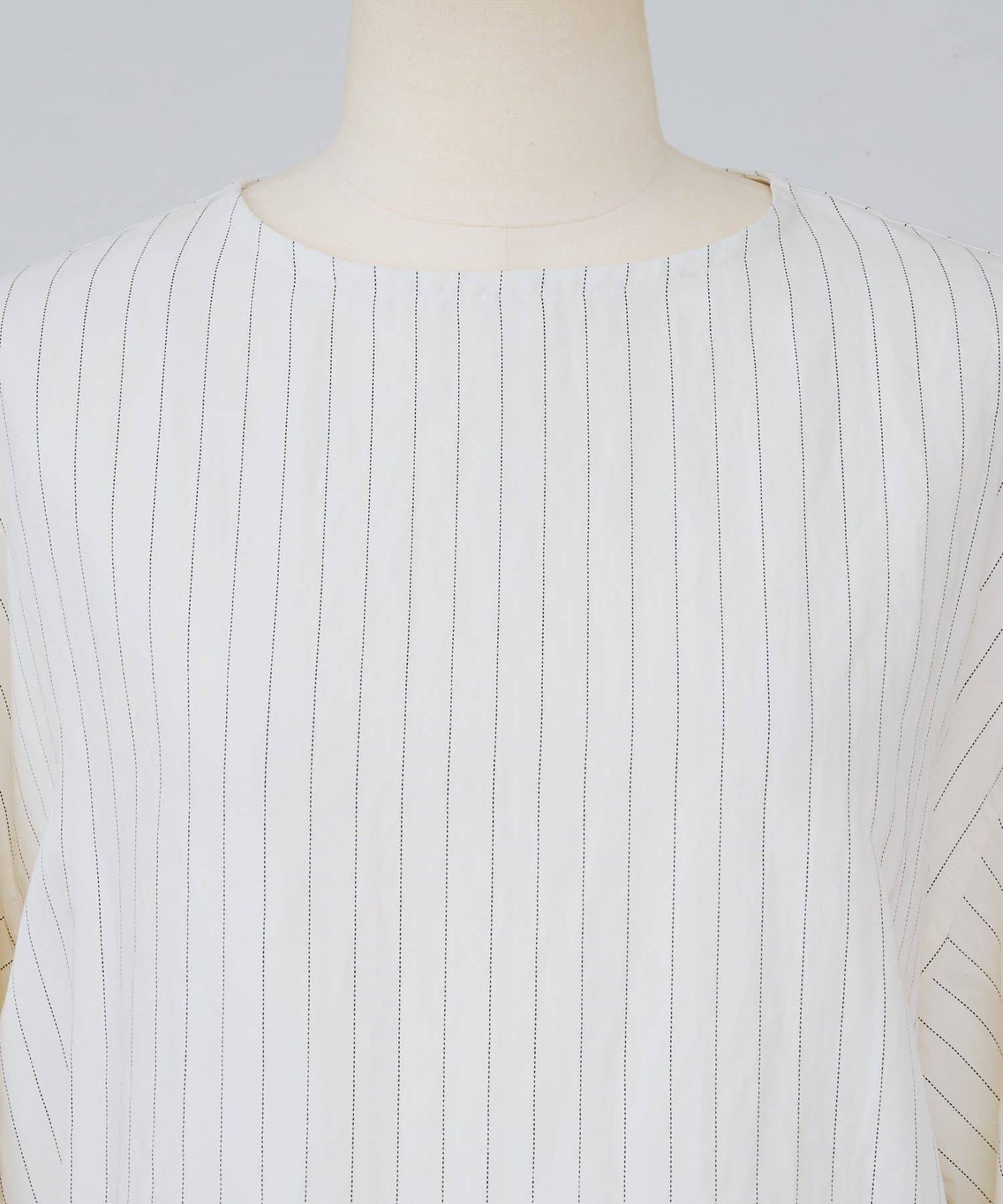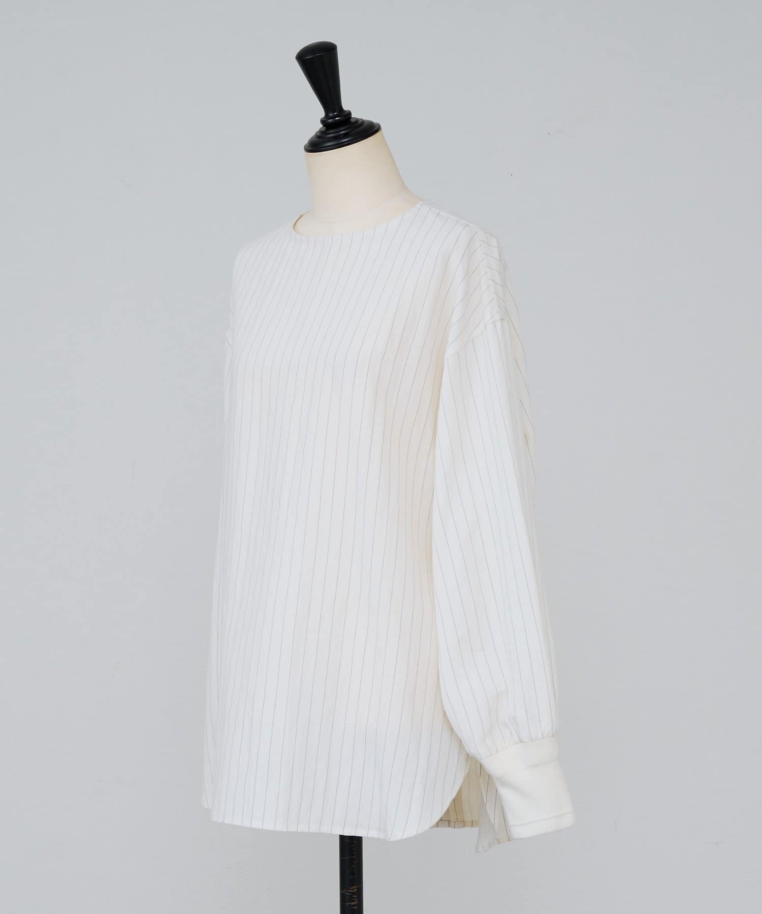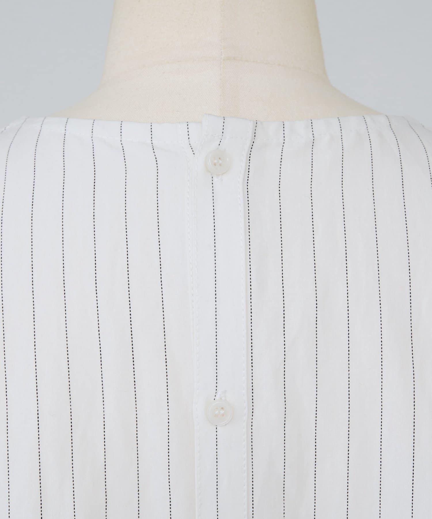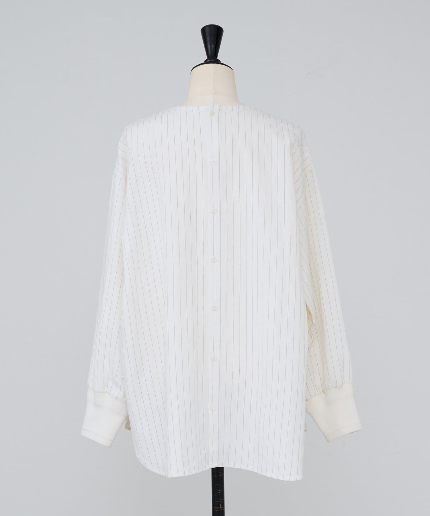 ピンストライプが上品に映える、後ろボタン仕様のプルオーバーシャツ。