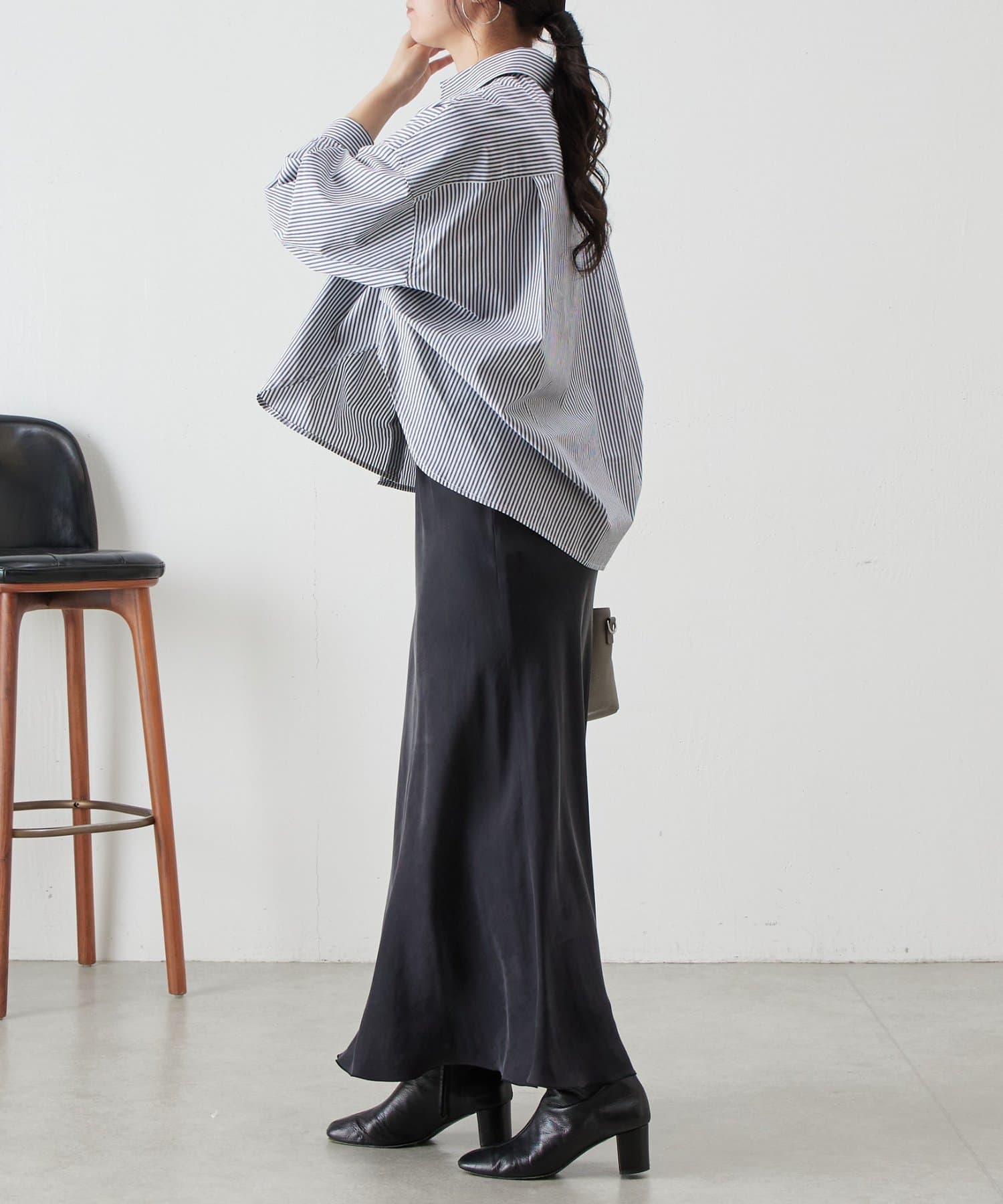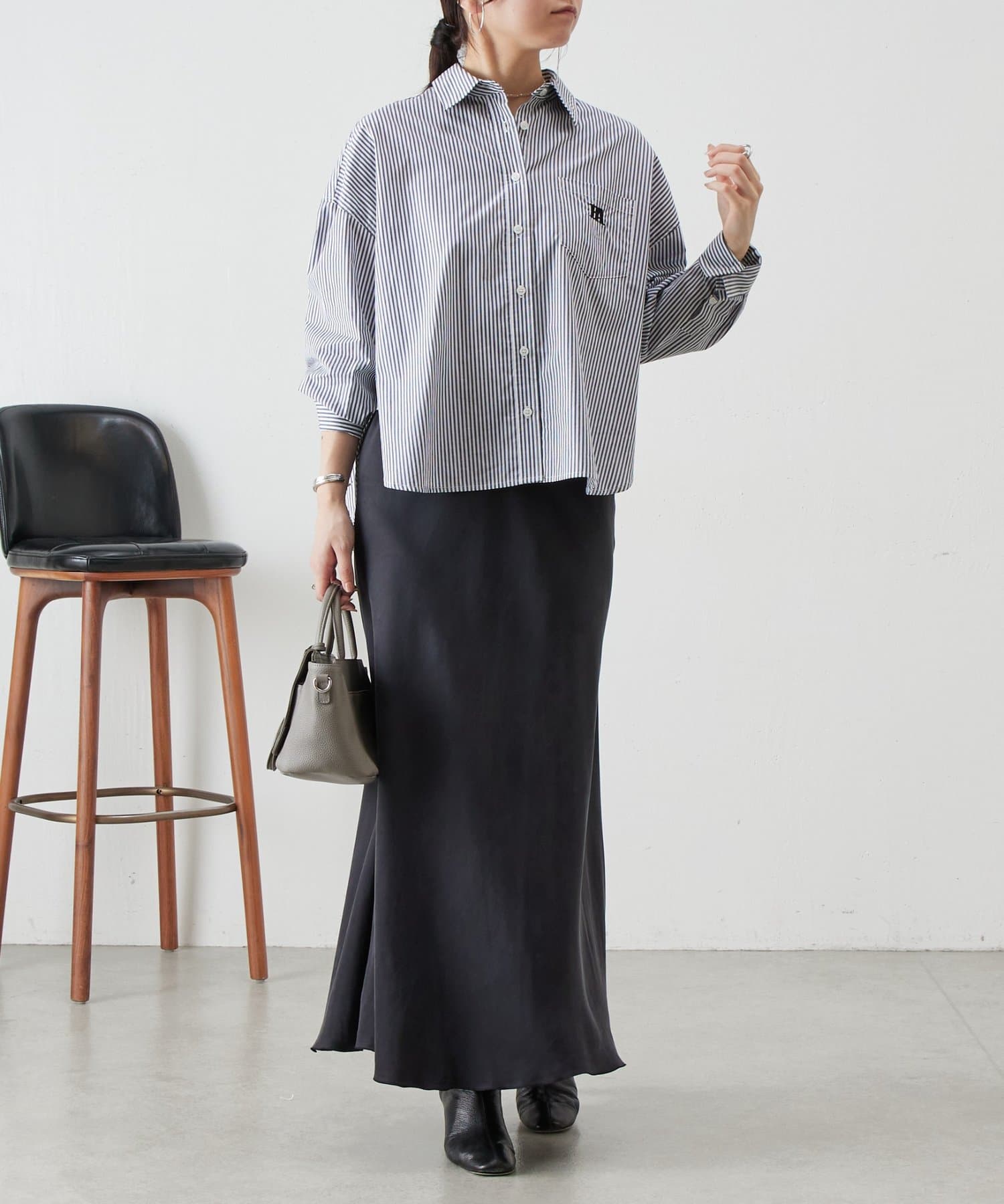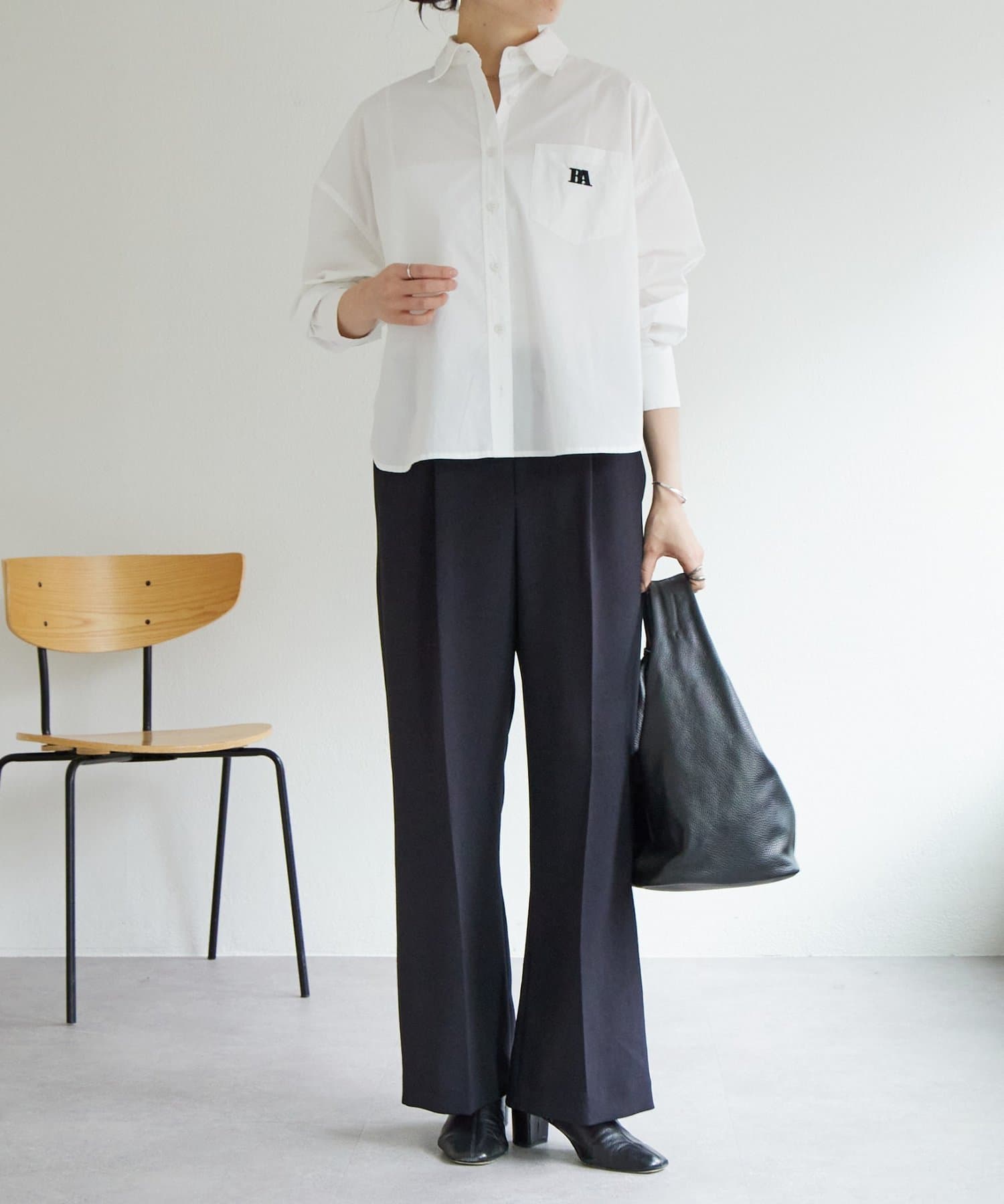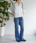 裾をインしなくてもバランスよく着られる着丈で、低身長の方にもすっきりと馴染む一枚です。