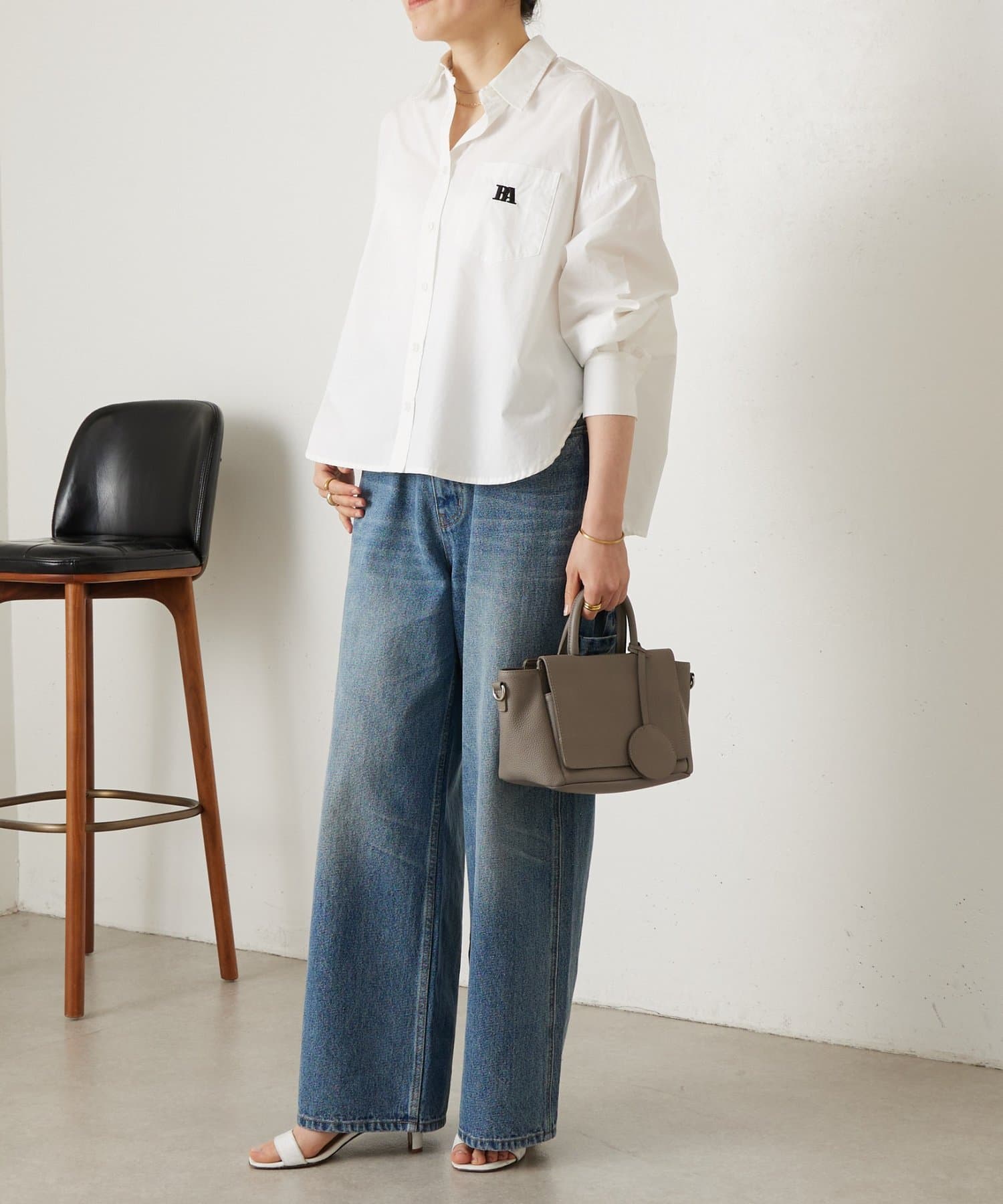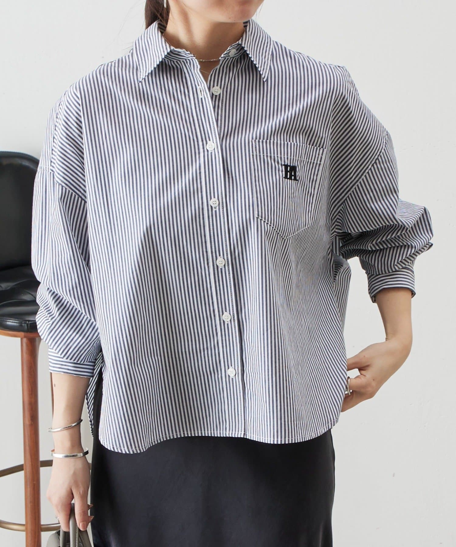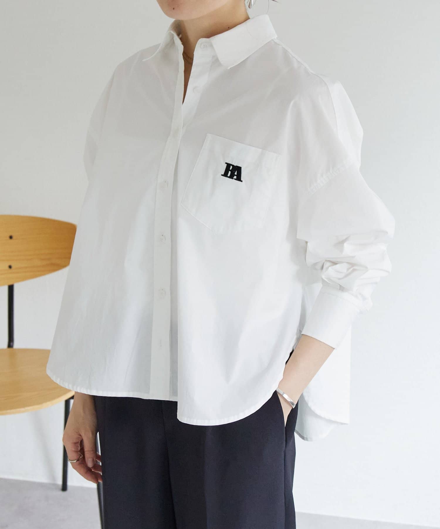 胸ポケットにさりげなく“BA”ロゴ刺繍をあしらった、コンパクト丈のショートシャツ。