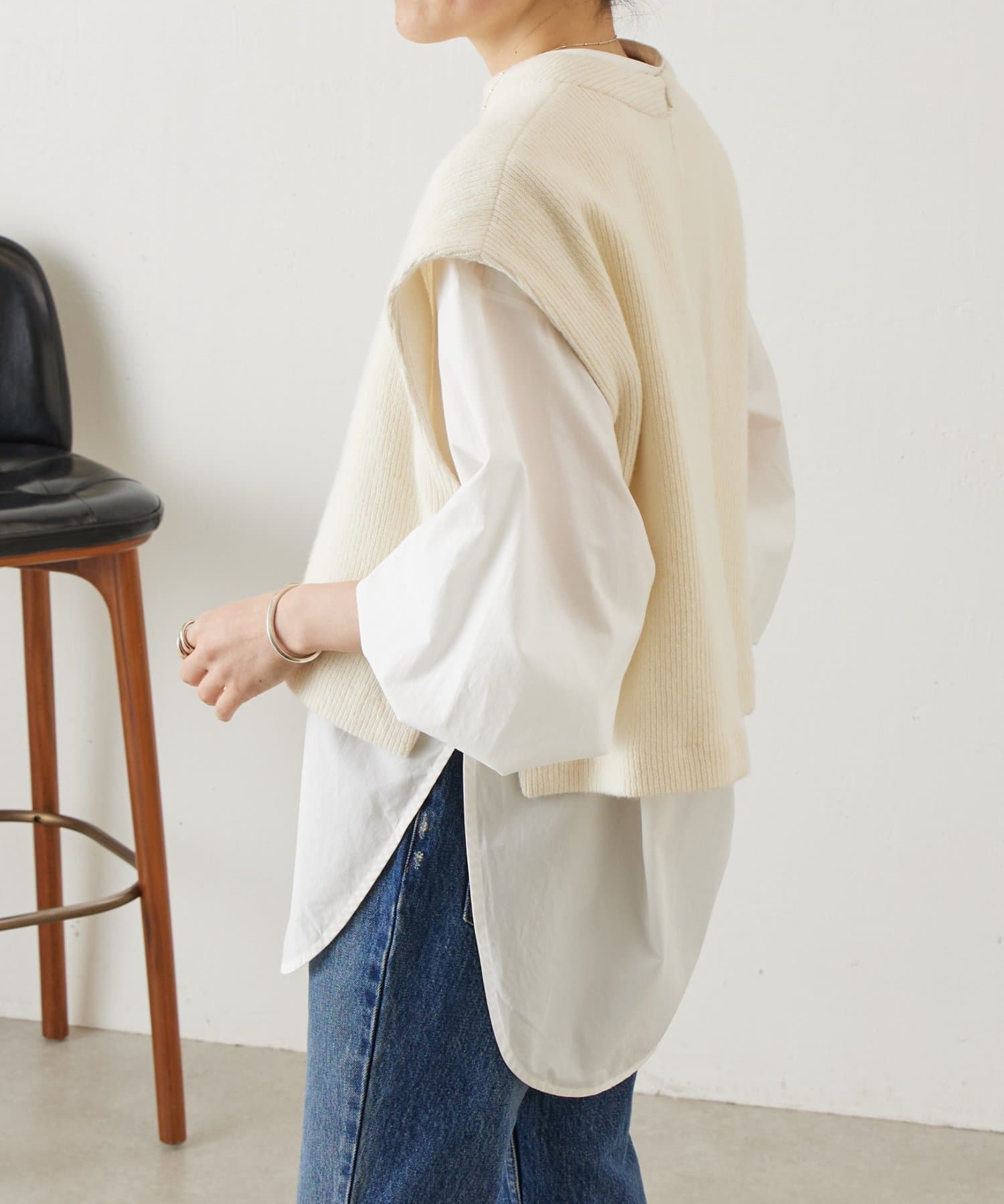 アームホールを広めにとることで、重ねても窮屈感のない着心地に仕上げています。