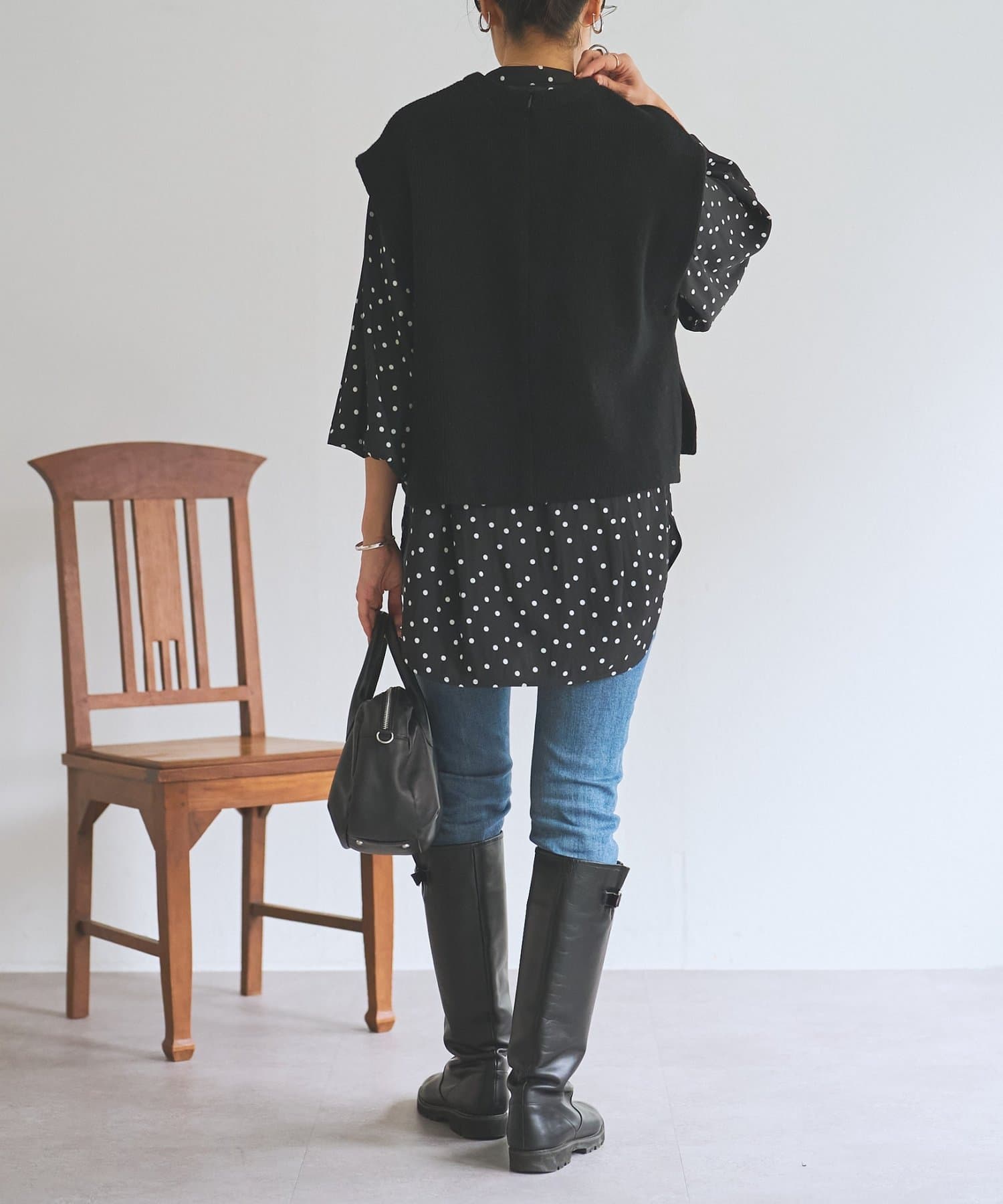 アームホールを広めにとることで、重ねても窮屈感のない着心地に仕上げています。
