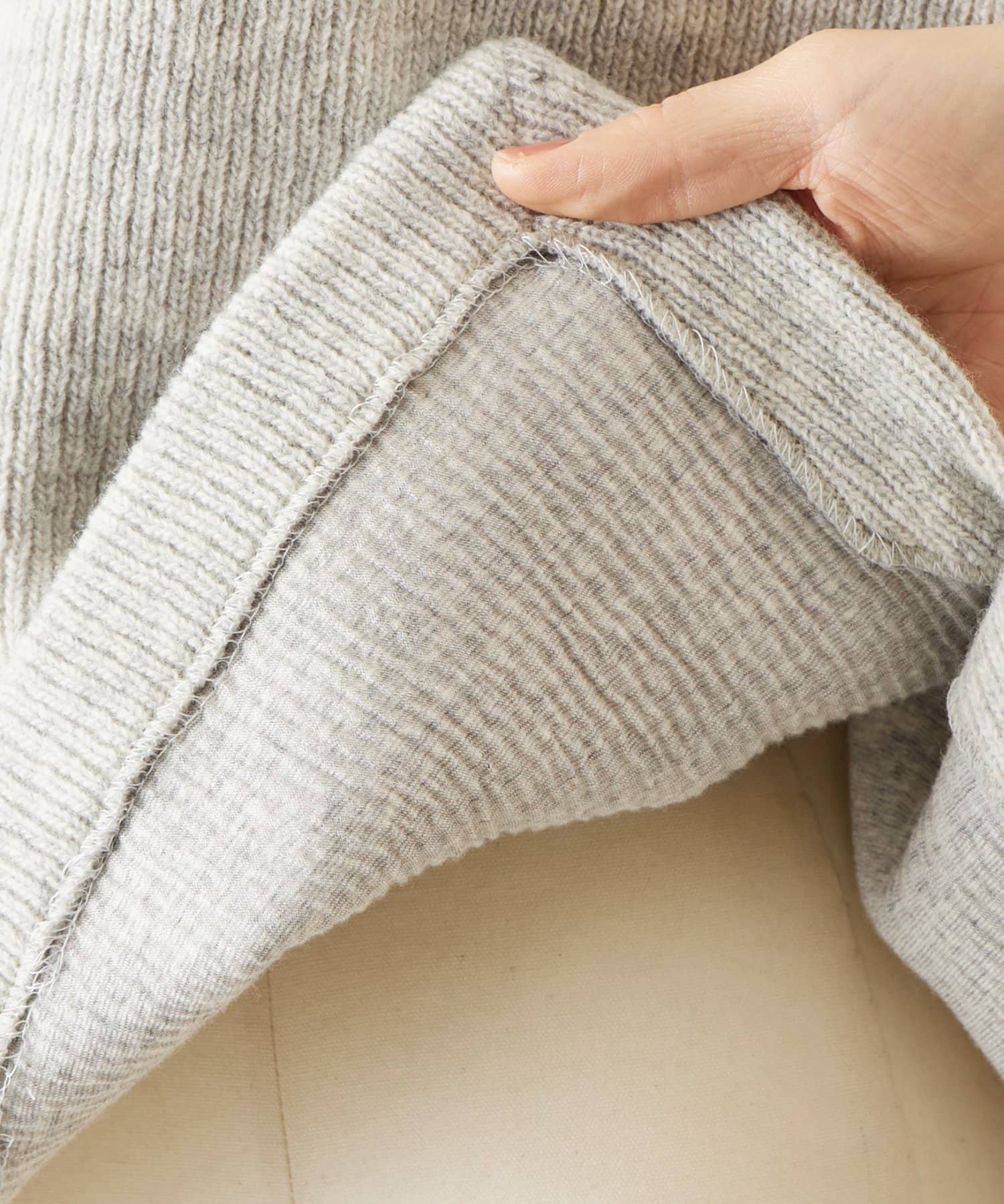 ※ニット生地のため、ファスナーは無理に引かず、軽く生地を整えながら開閉していただくのがおすすめです。