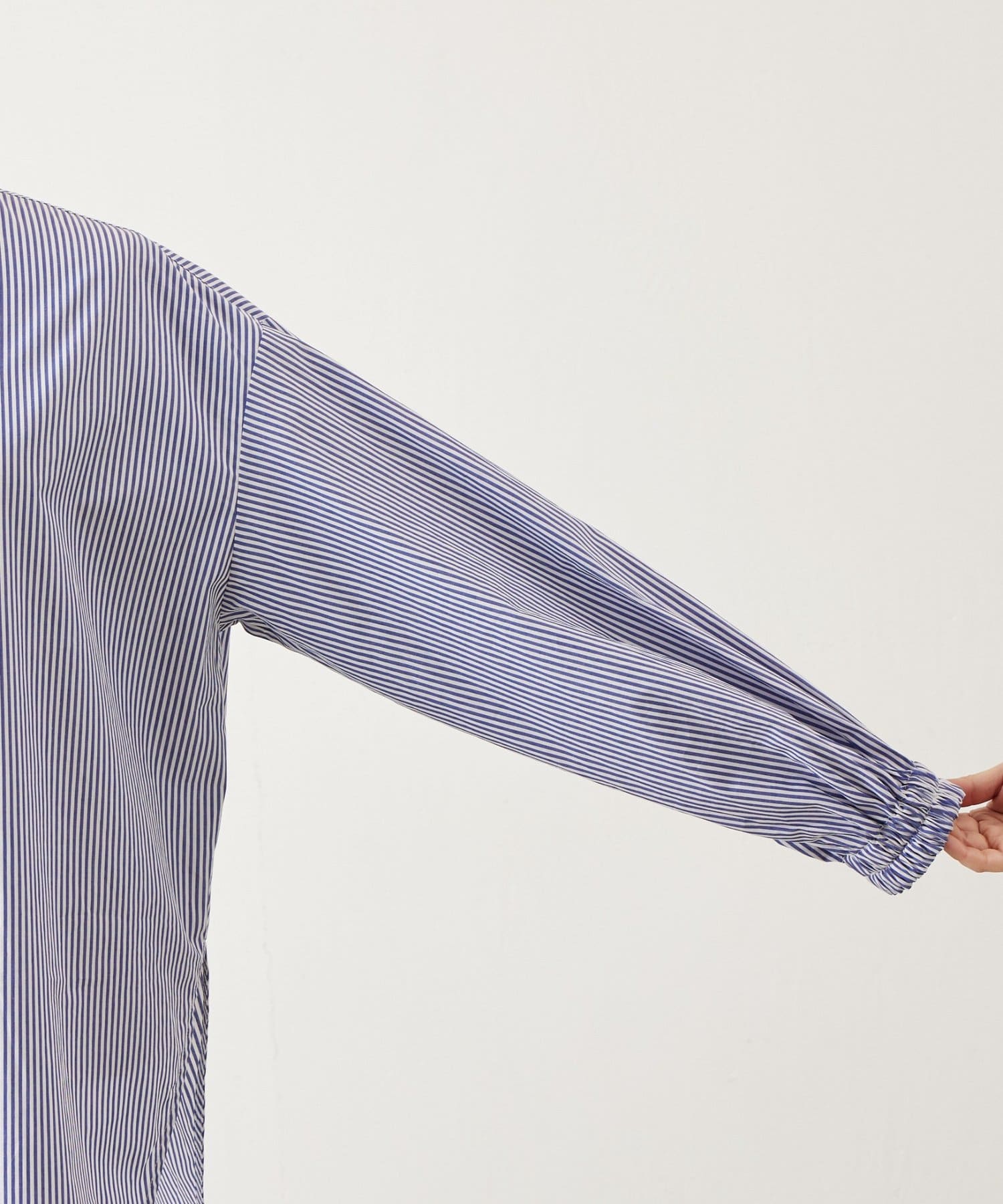 シャツのサイドには深めのスリットを施し、袖口はきゅっとたくし上げやすいゴム仕様に。
