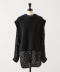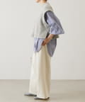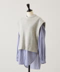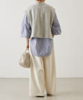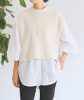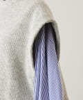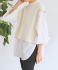 セットのジレはニット素材で、短めの着丈がシャツとのバランスを取りやすいデザイン。