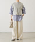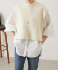 バンドカラーシャツにニットジレを組み合わせた着回し力抜群のセットアイテム。