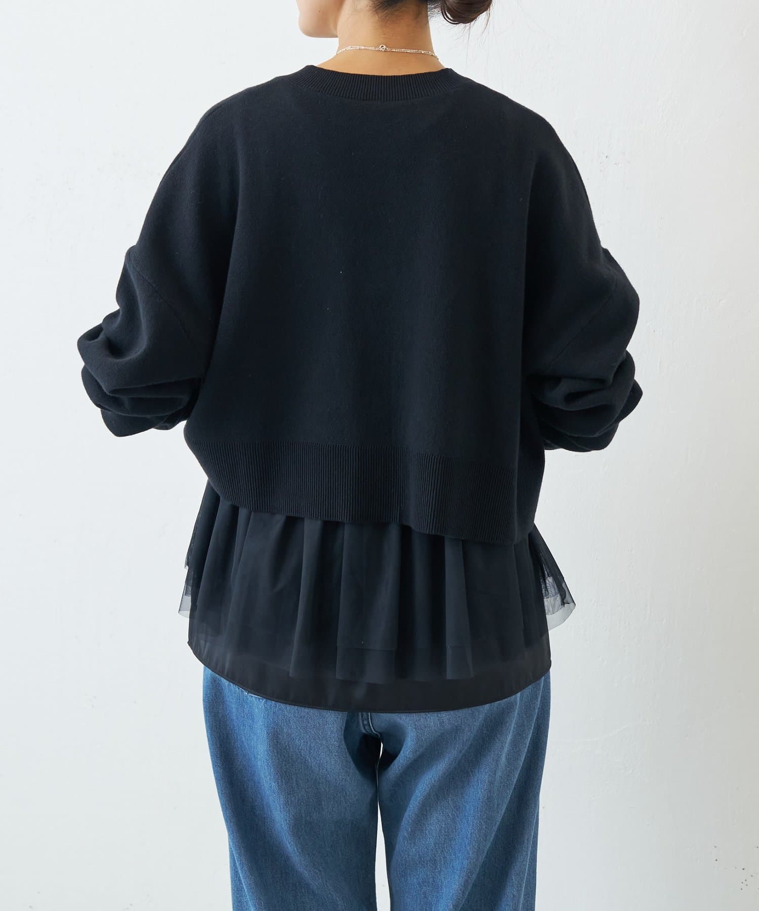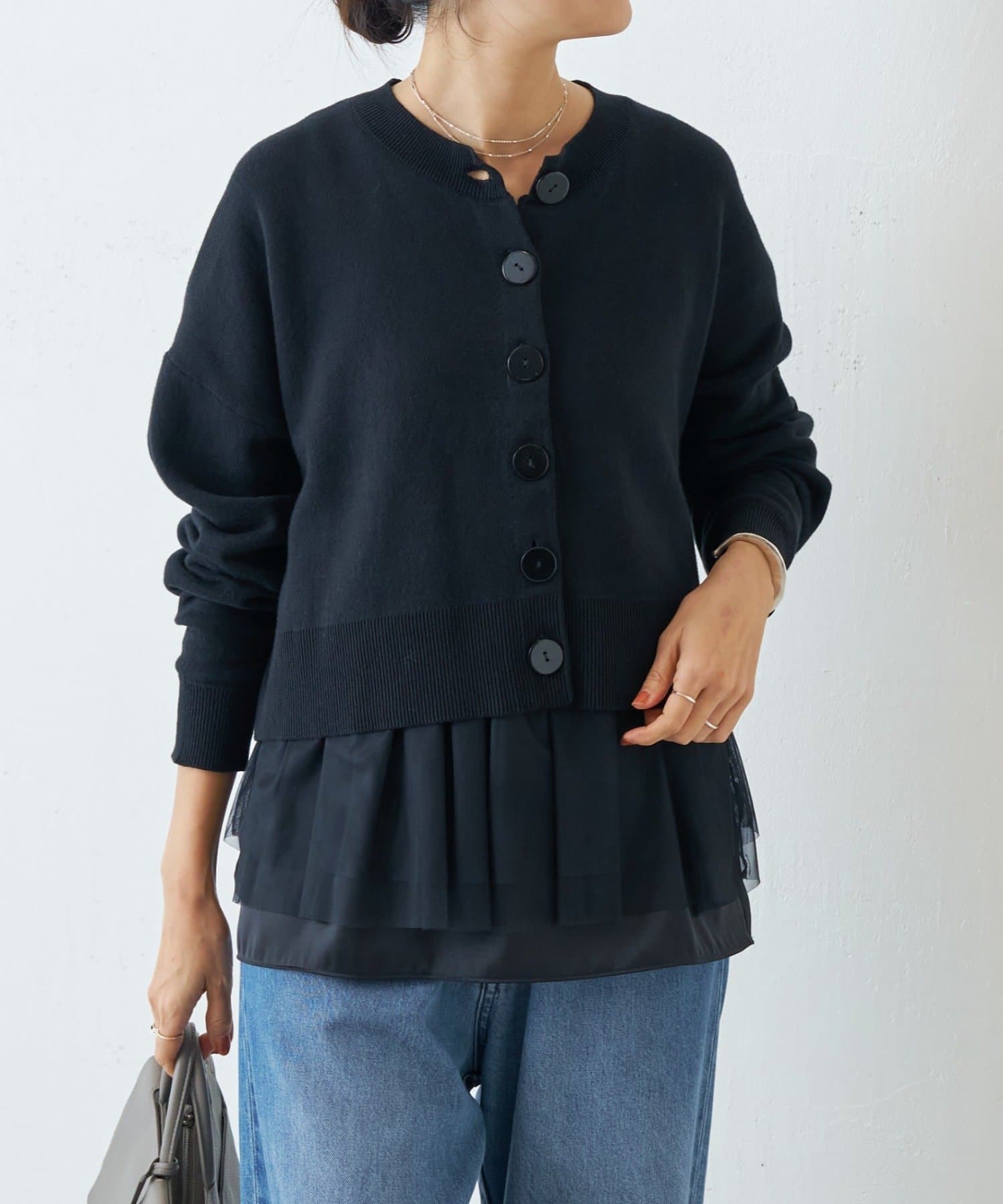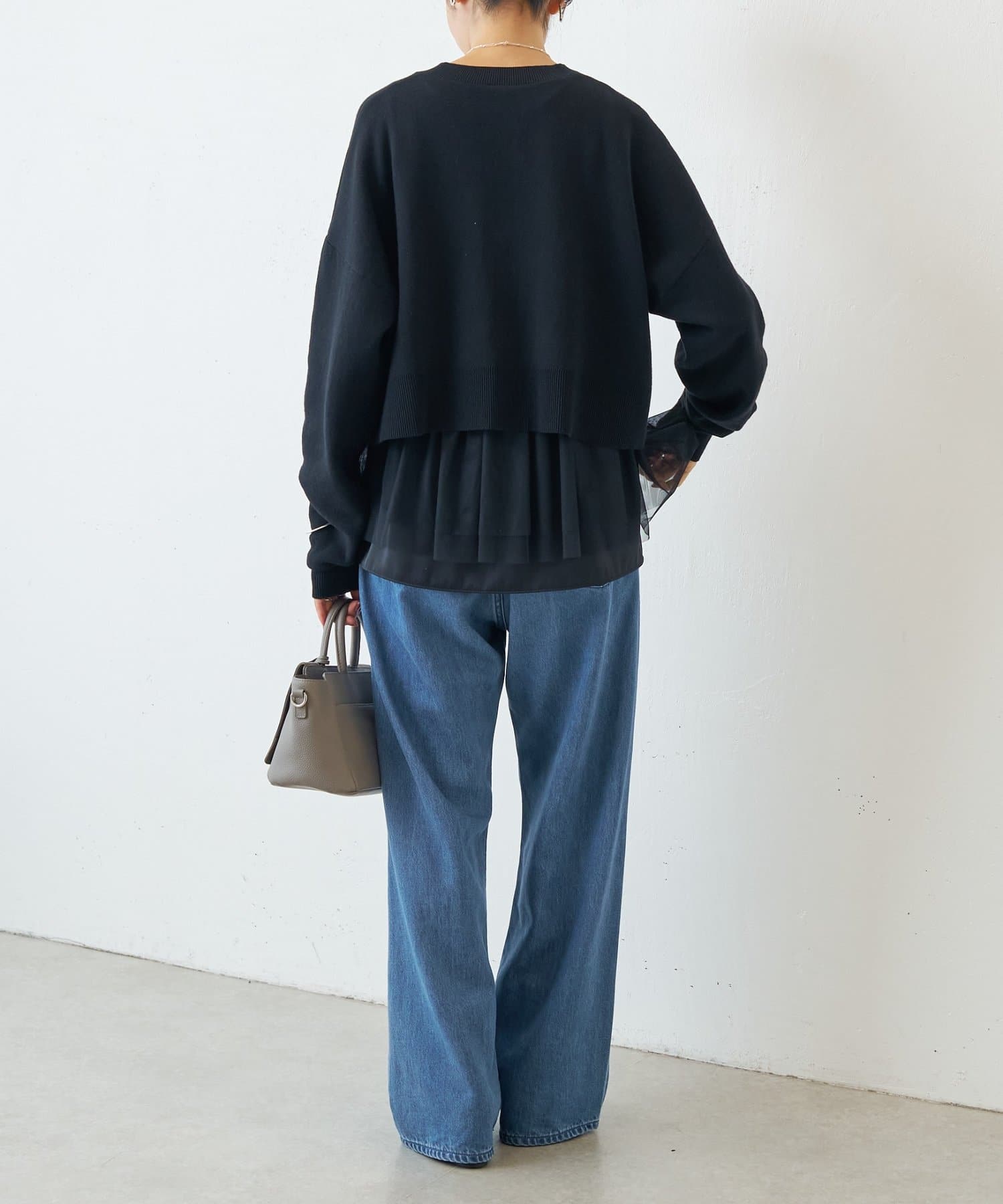 チュチュタンクなど裾にデザインのあるトップスとのレイヤードも好相性◎