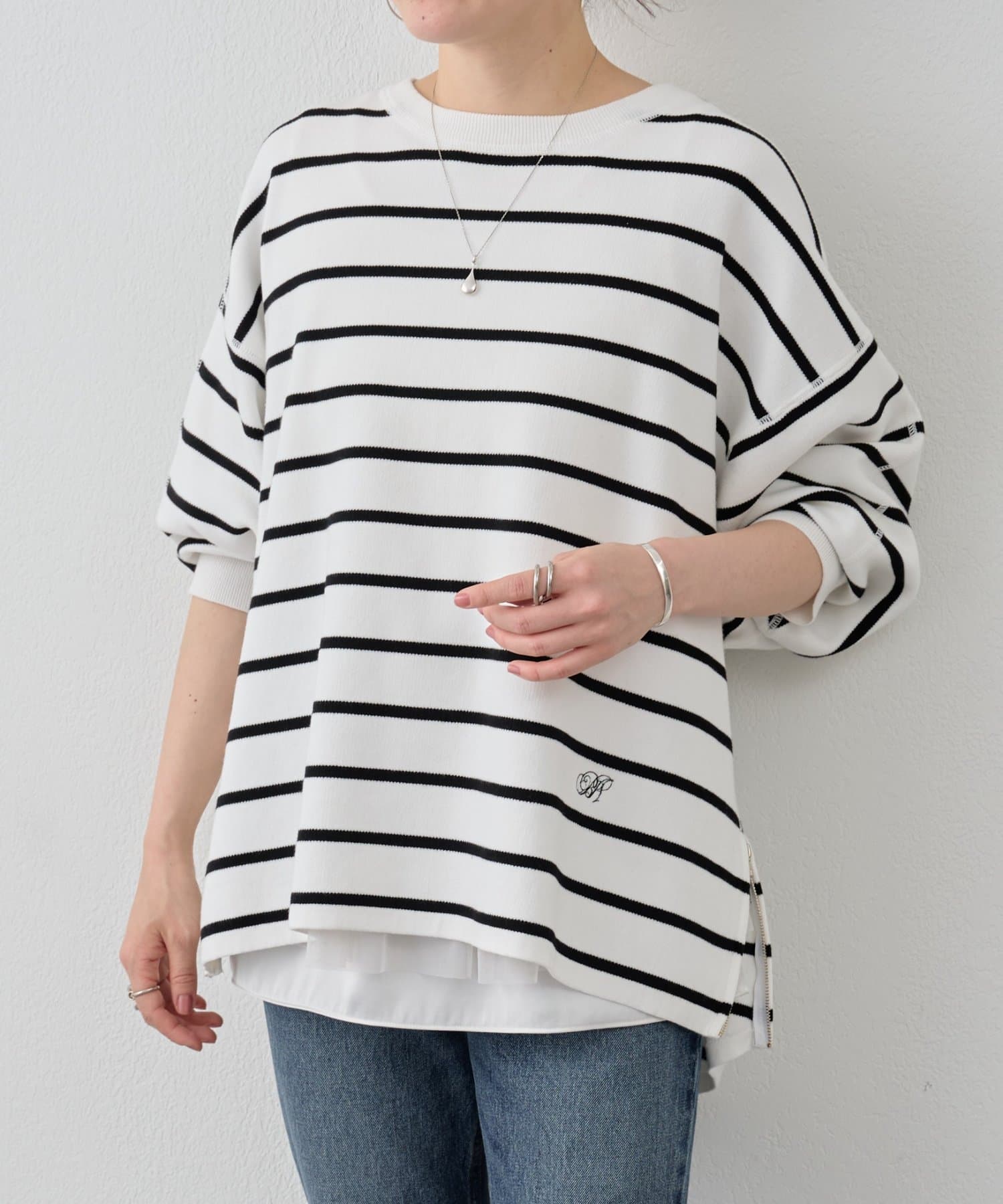 サイドジップを開いて、ドレープTやシャツTシャツをレイヤードすればこなれた印象になります。