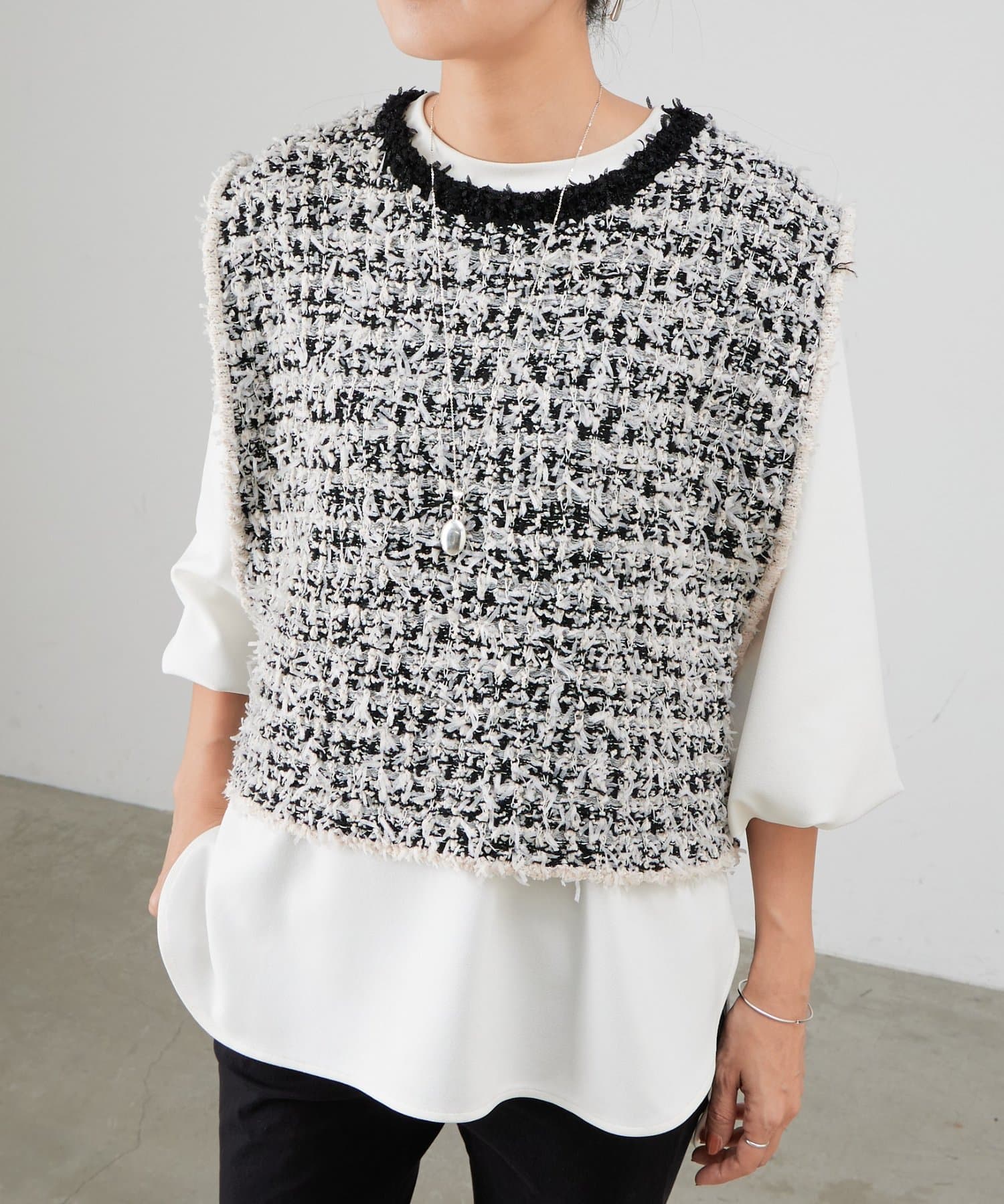 ツイードニットベスト