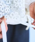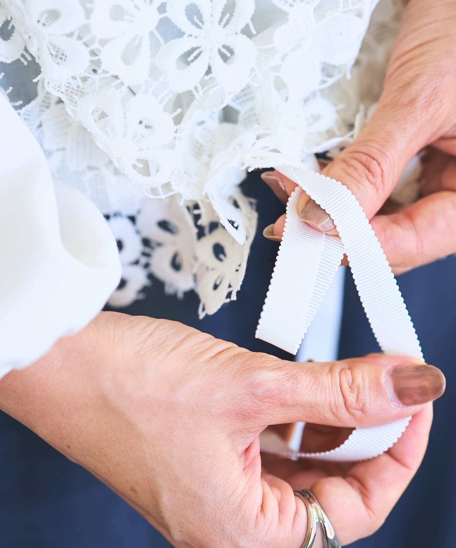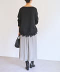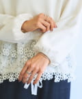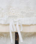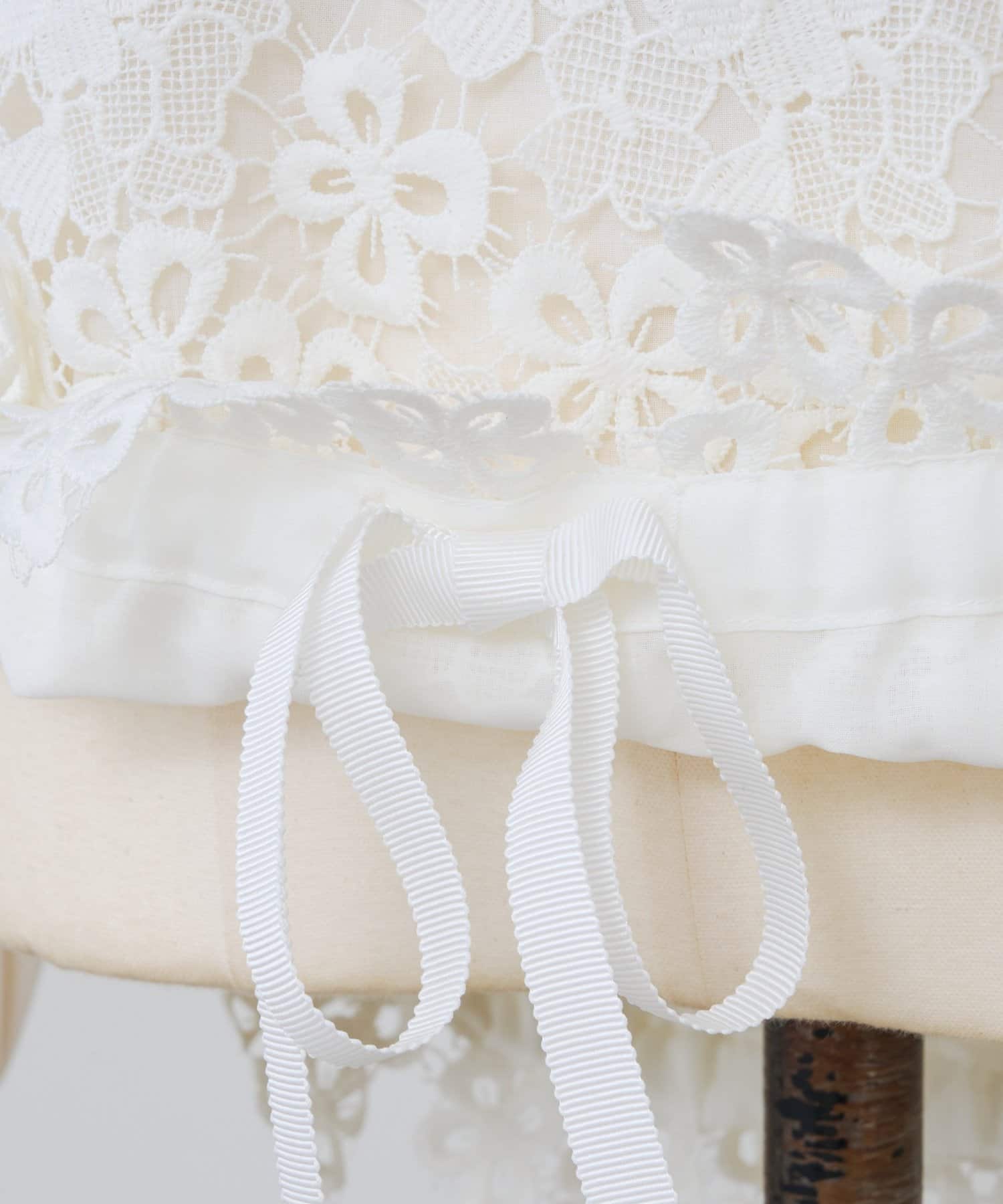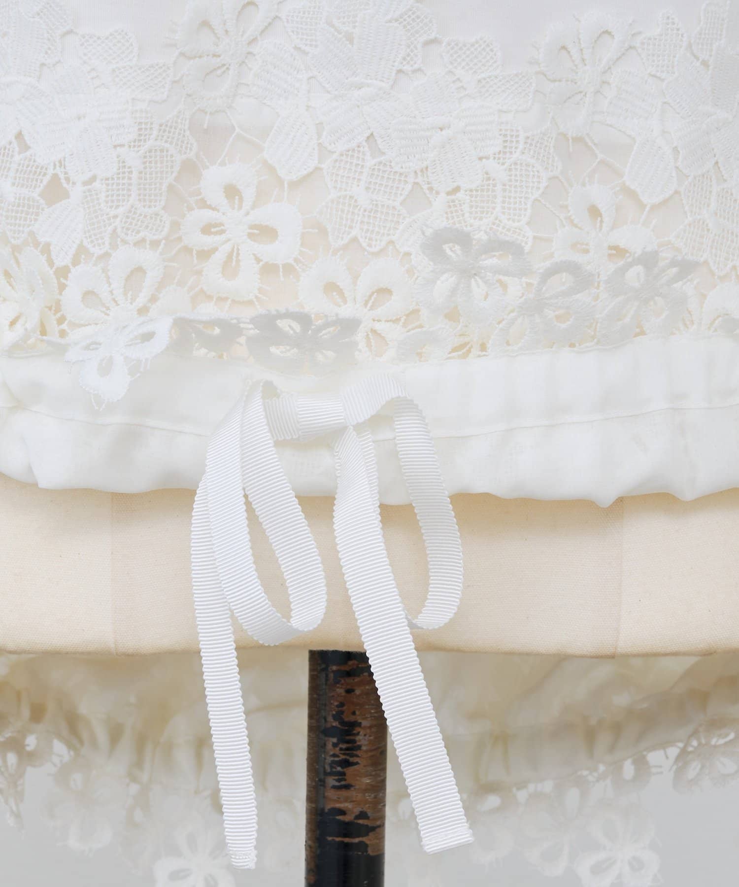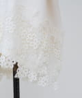 裾はシアー感のある生地に切り替え、その上に幅広のレースを重ねることで、ほどよい透け感が上品なアクセントに。