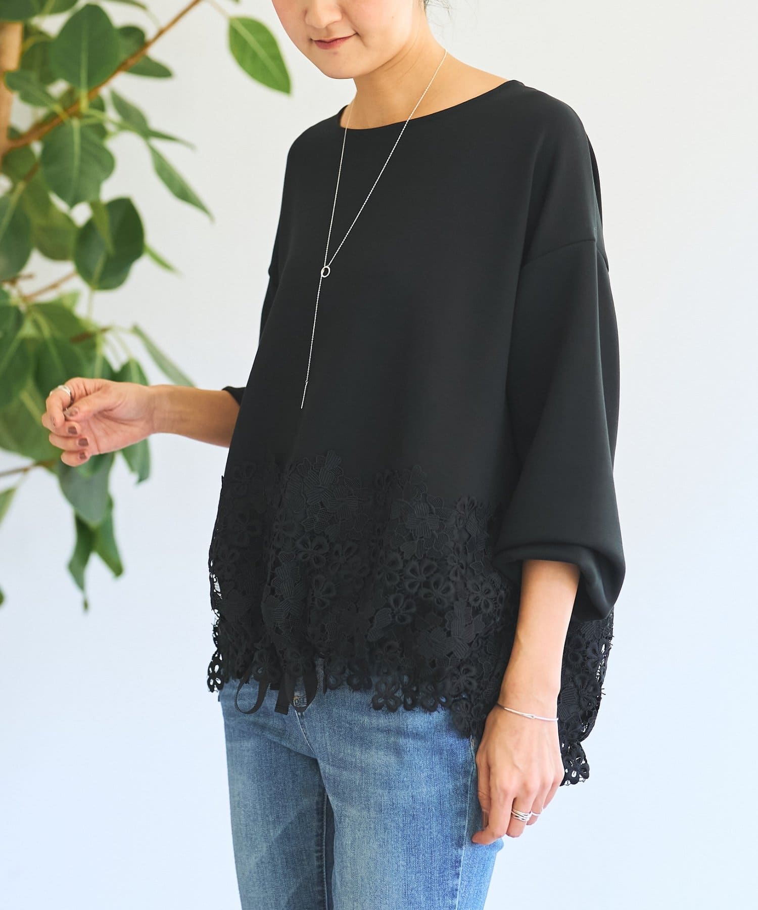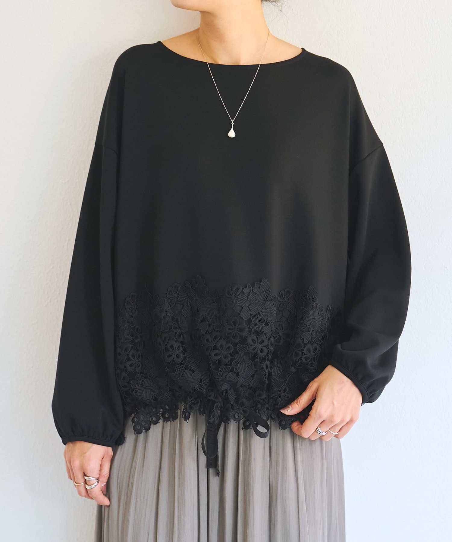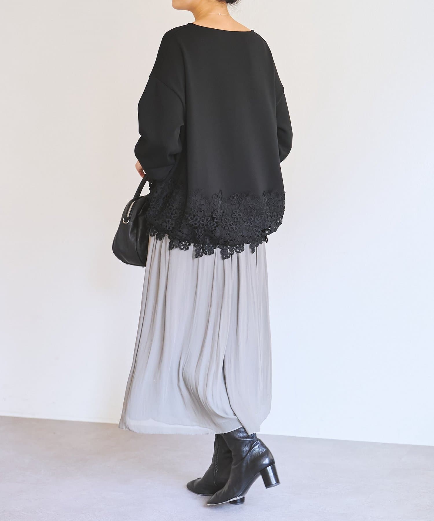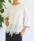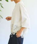 身頃とレースを同系色でまとめることで、甘さを抑えつつ大人に似合う品の良さをプラスした、デイリーに取り入れやすい一枚です。