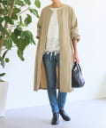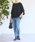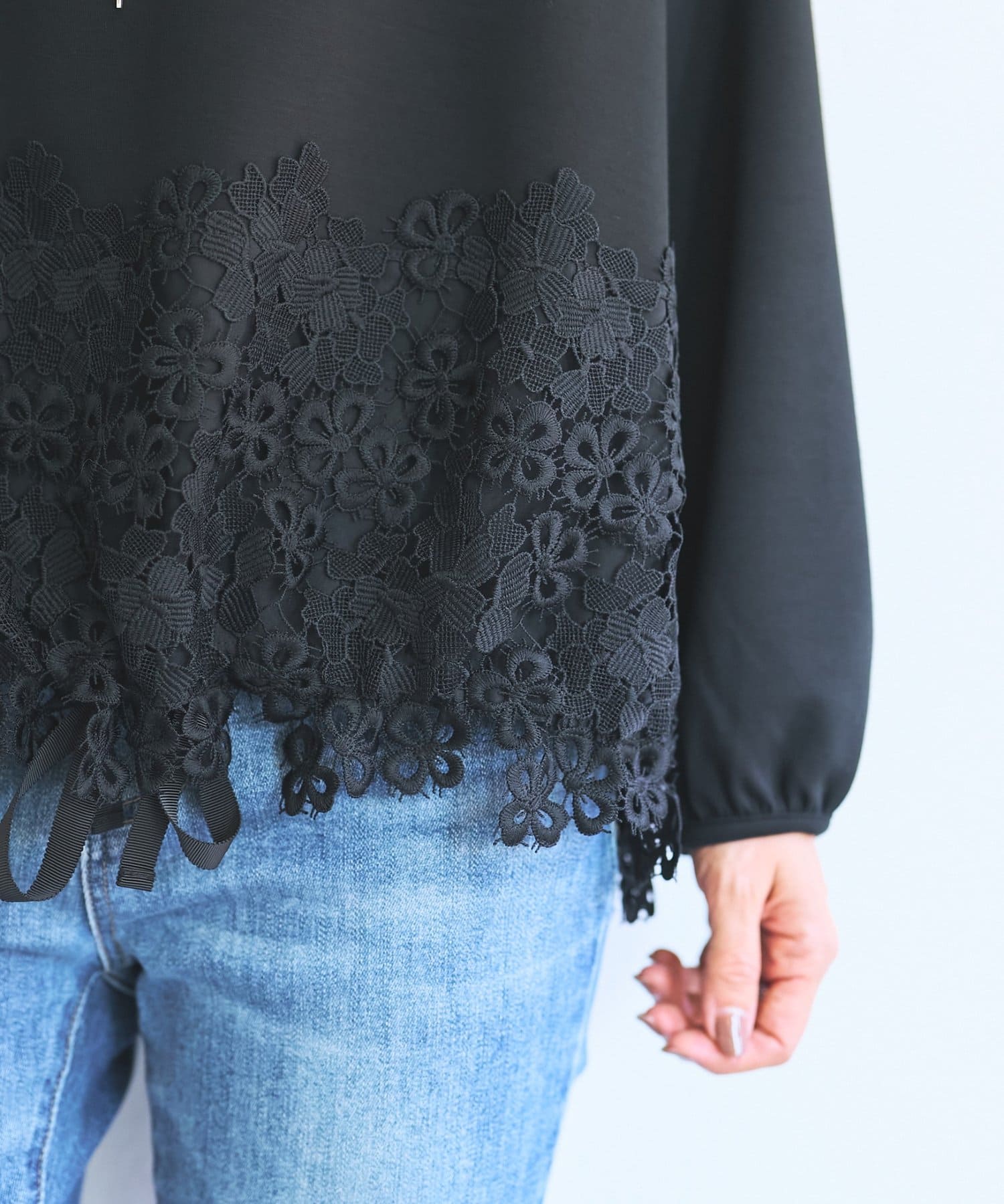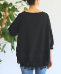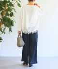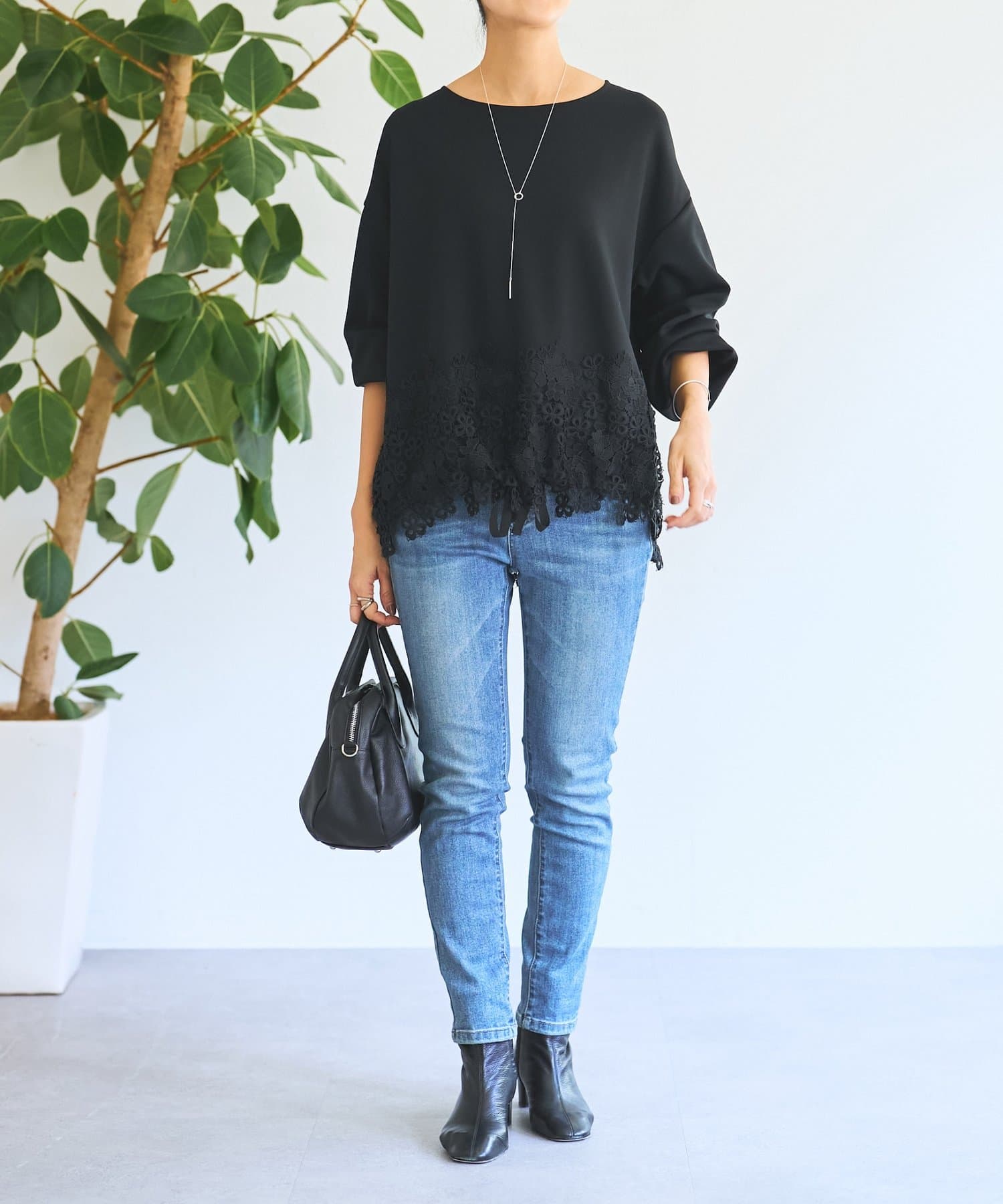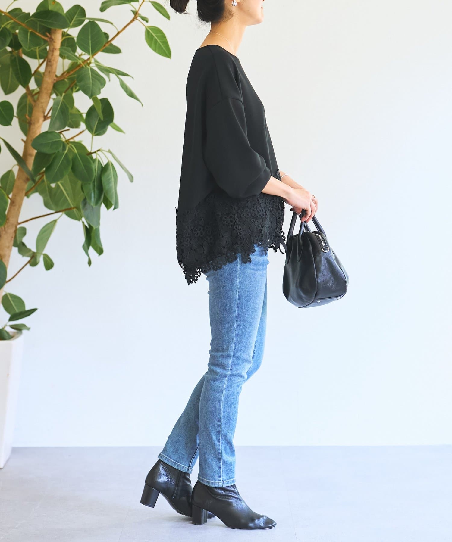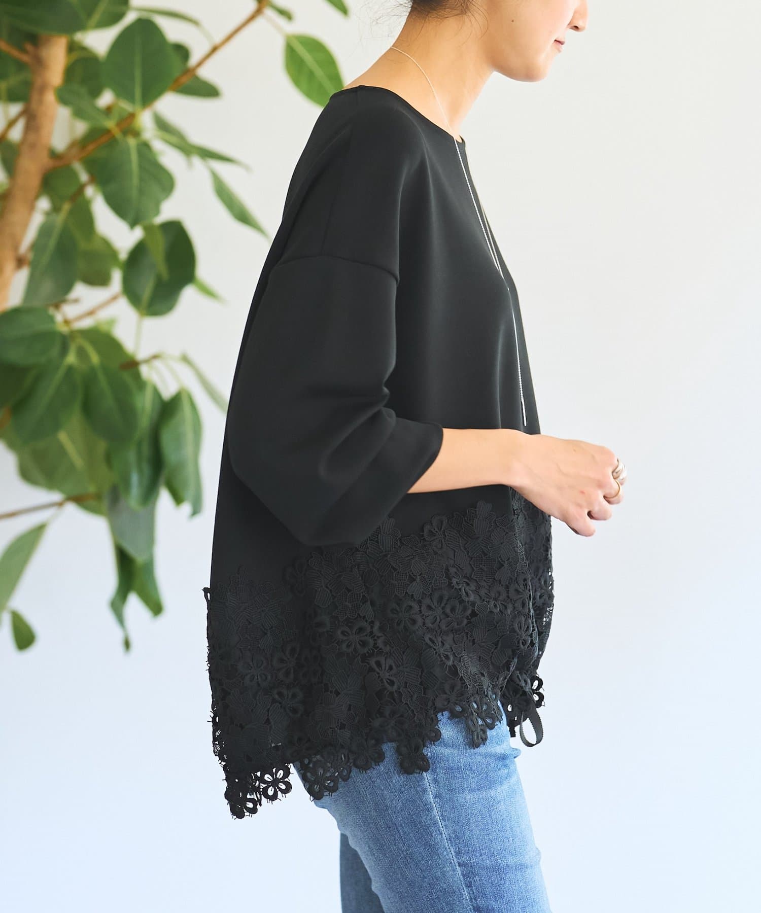 身頃とレースを同系色でまとめることで、甘さを抑えつつ大人に似合う品の良さをプラスした、デイリーに取り入れやすい一枚です。