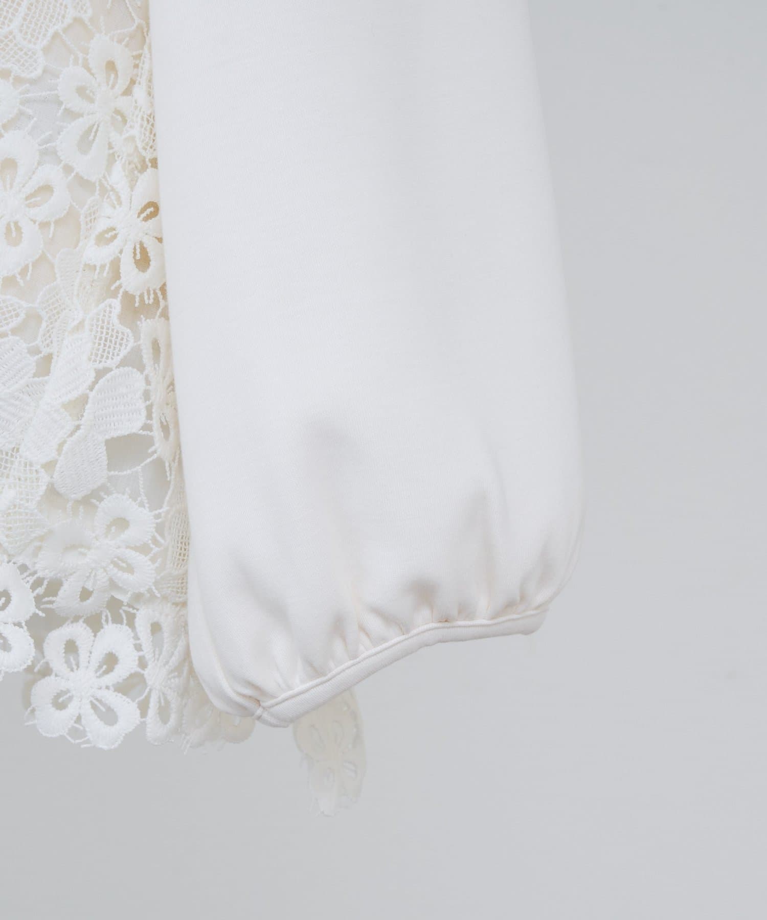 袖口は細かなギャザーを寄せたパフスリーブ仕様。従来の裾レースシリーズとはひと味違うデザインが魅力です。