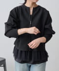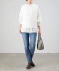 身頃は伸縮性のあるコットンカットソーを使用し、肌ざわりの良い着心地に。
