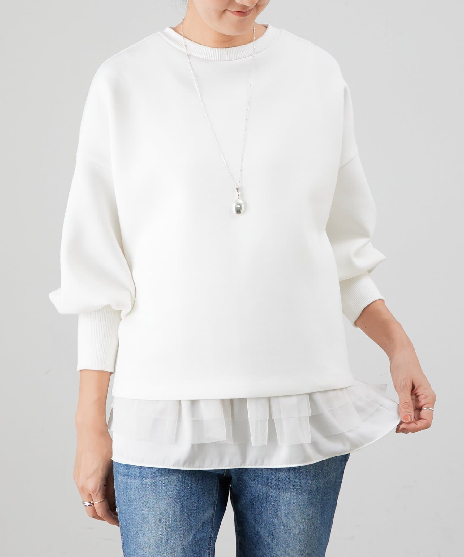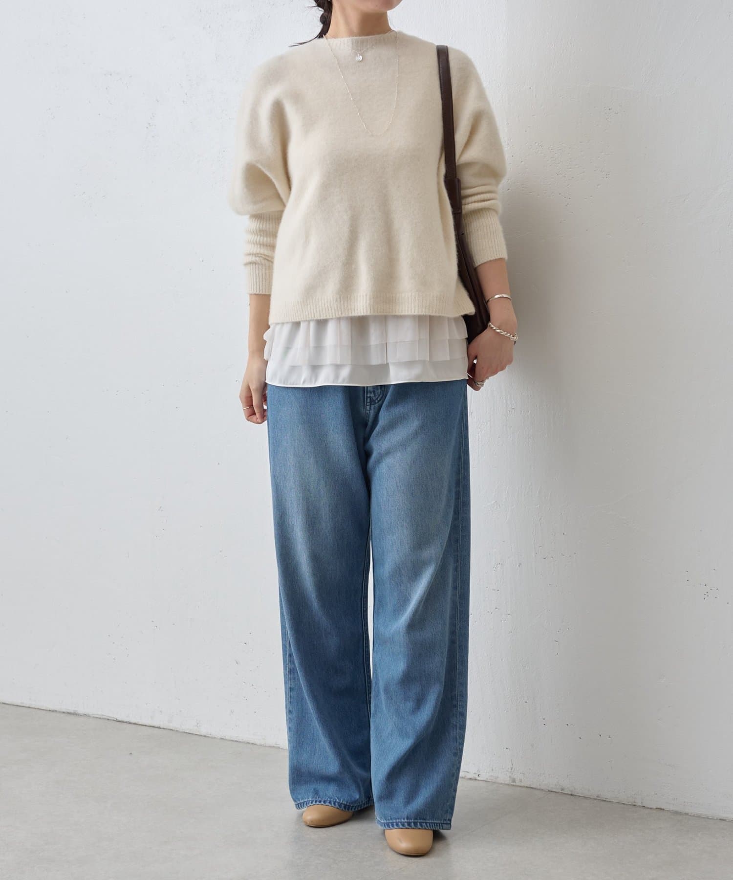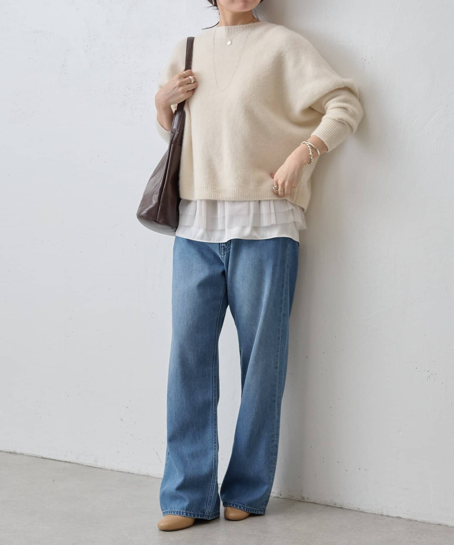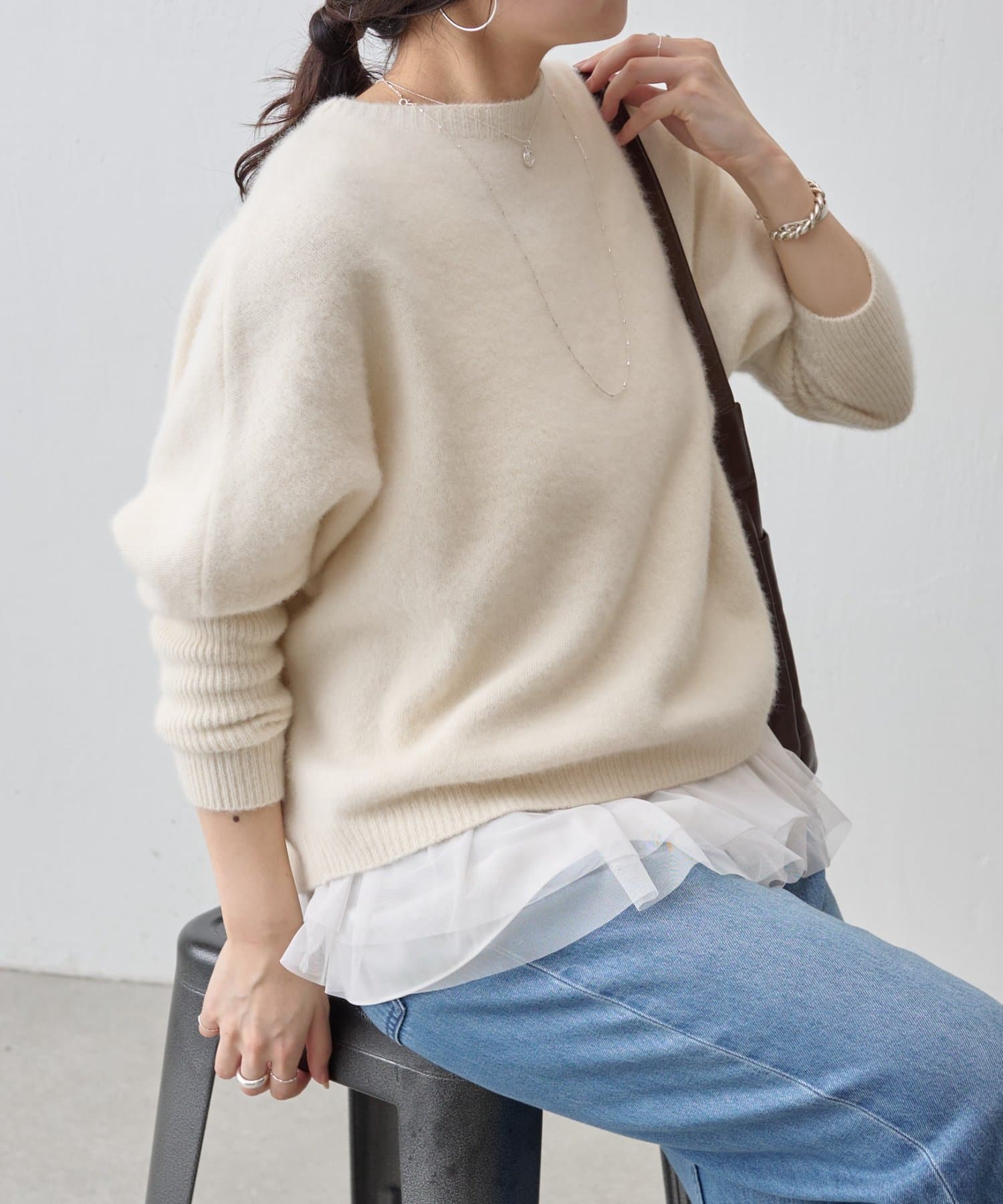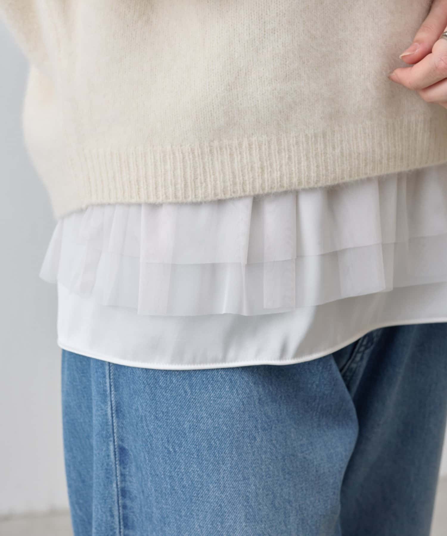 ニットやスウェット、カットソーの下に重ねるだけで、コーデに抜け感と華やかさをプラスしてくれる一枚。