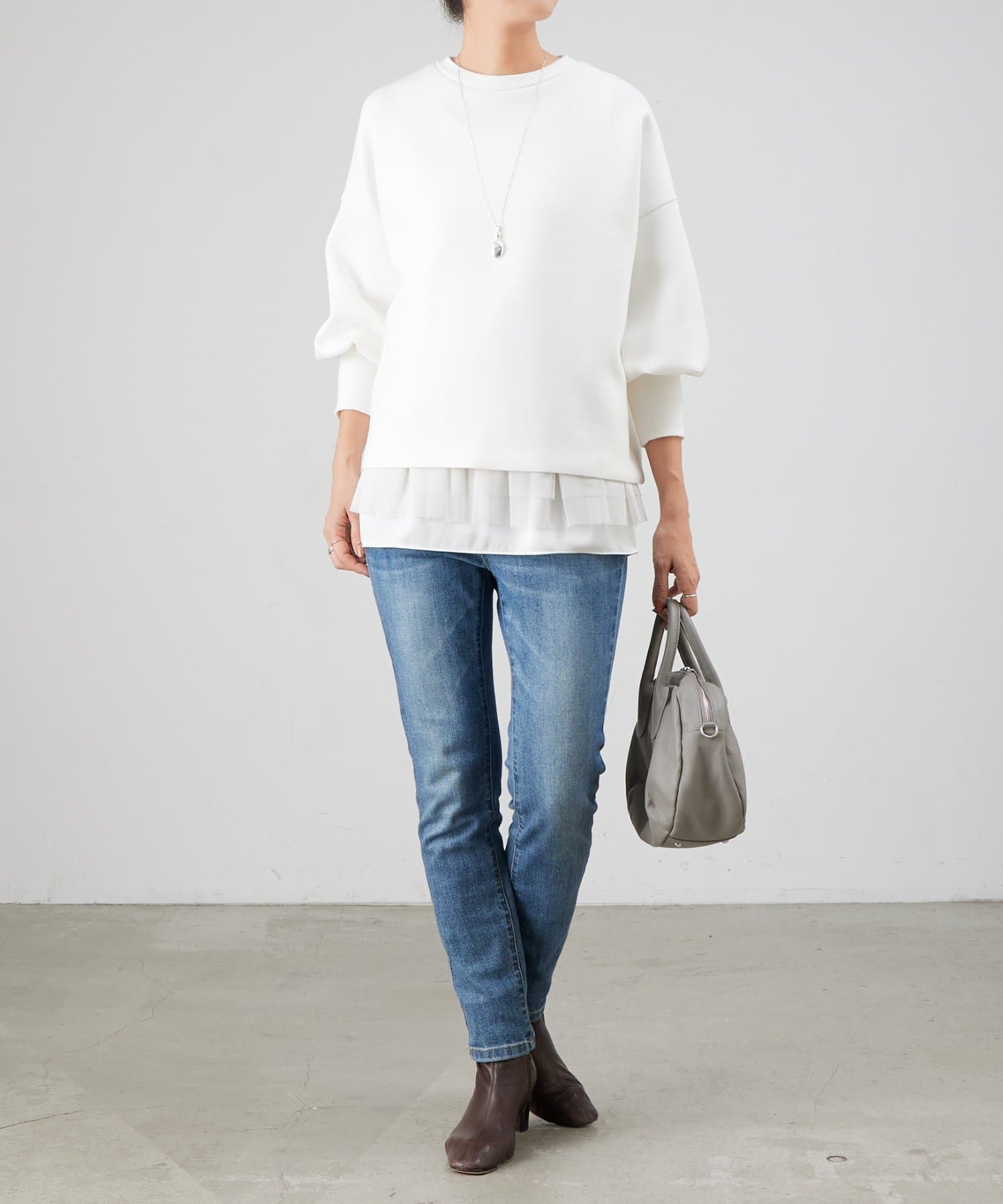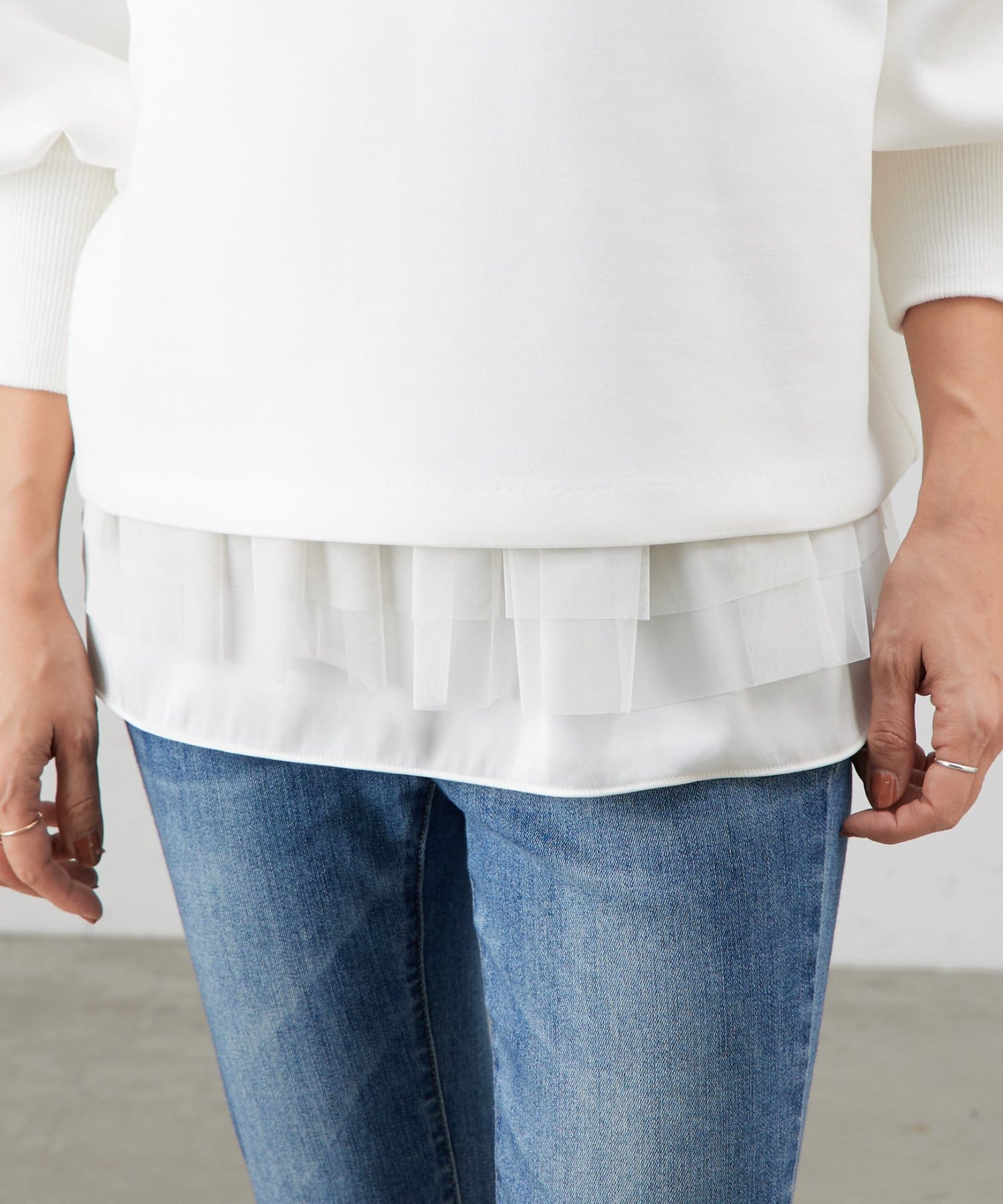 いつものトップスに合わせるだけで、裾からチラリとのぞくチュチュが女性らしいアクセントになります。