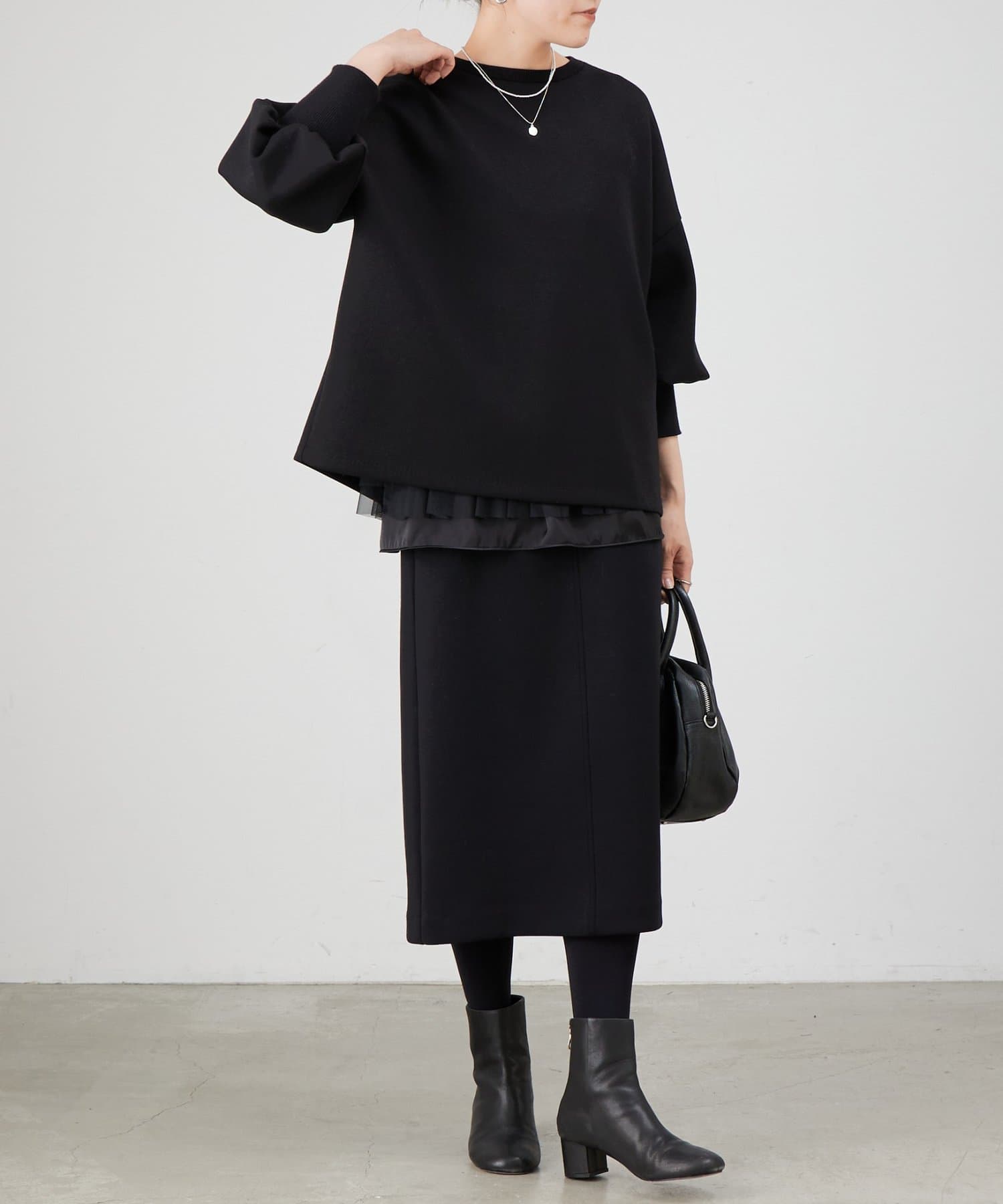 伸縮性:カットソー部分あり・サテン地部分なし(胸下~裾部分)
