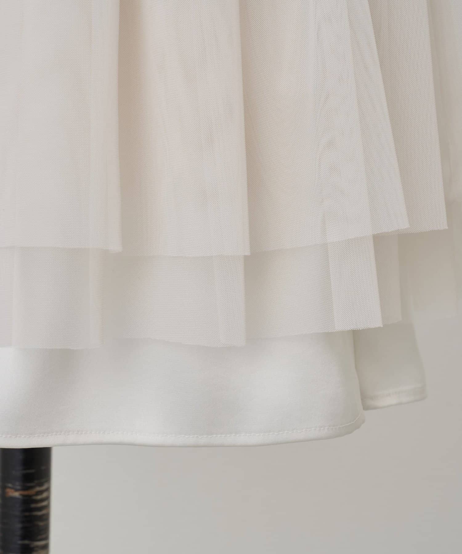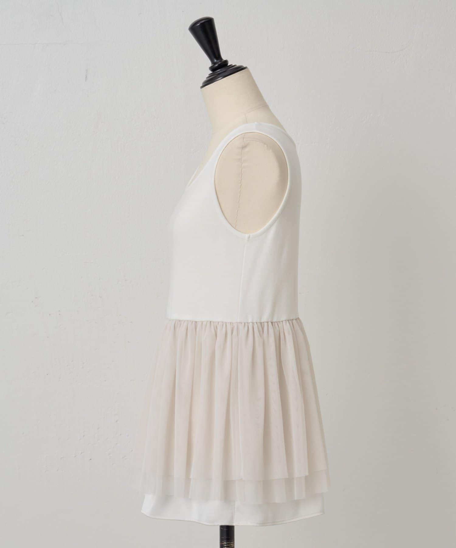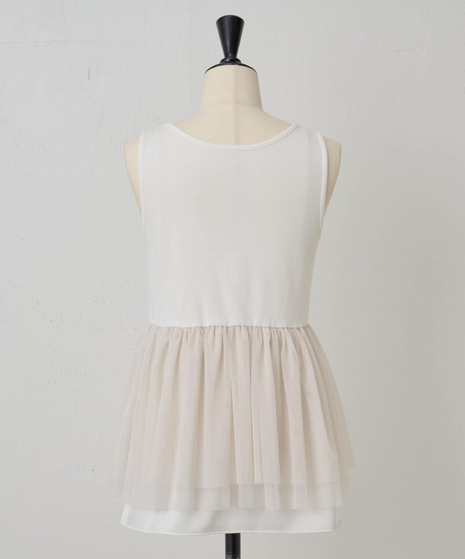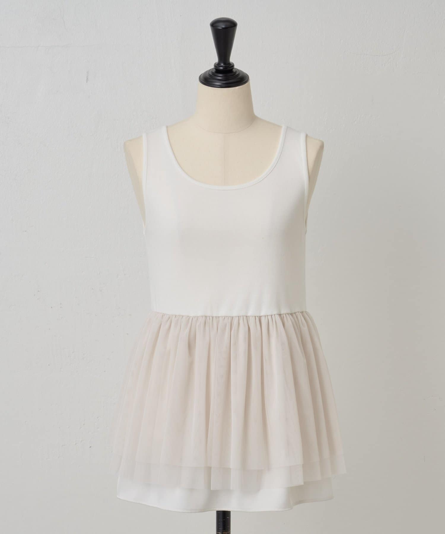 裾にサテン生地とふんわりチュールを重ねた、レイヤード用インナーのチュチュタンク。