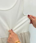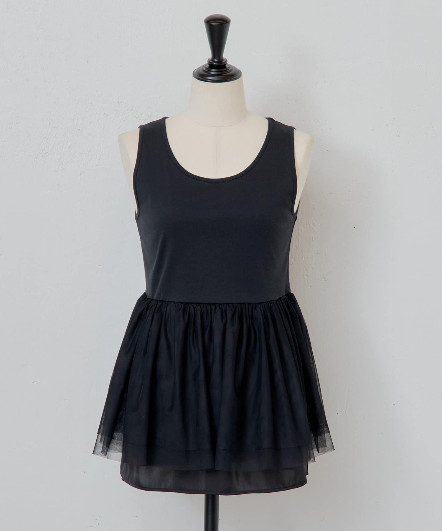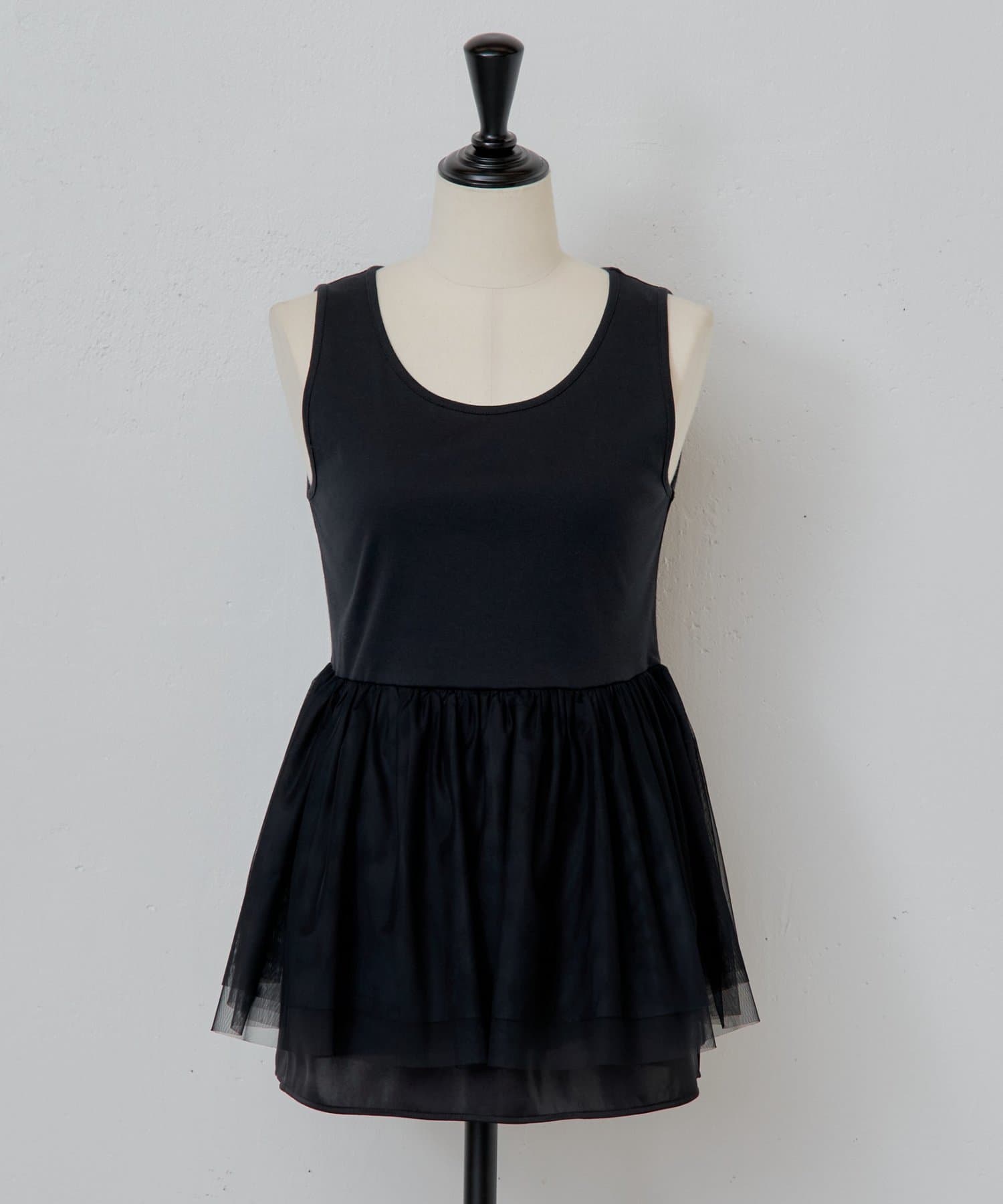 裾にサテン生地とふんわりチュールを重ねた、レイヤード用インナーのチュチュタンク。