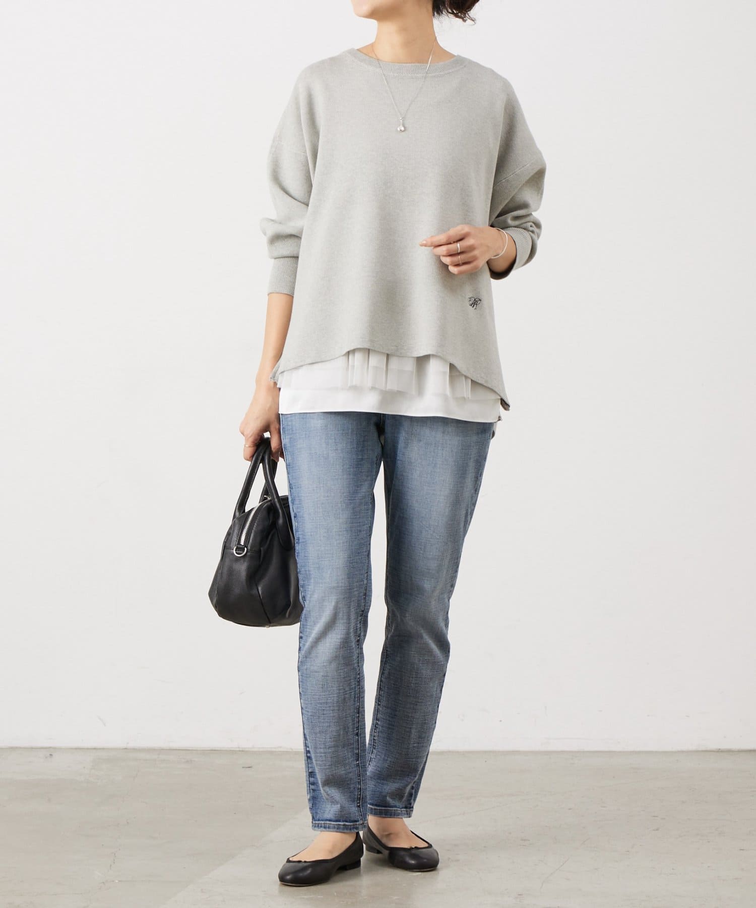 身頃は伸縮性のあるコットンカットソーを使用し、肌ざわりの良い着心地に。