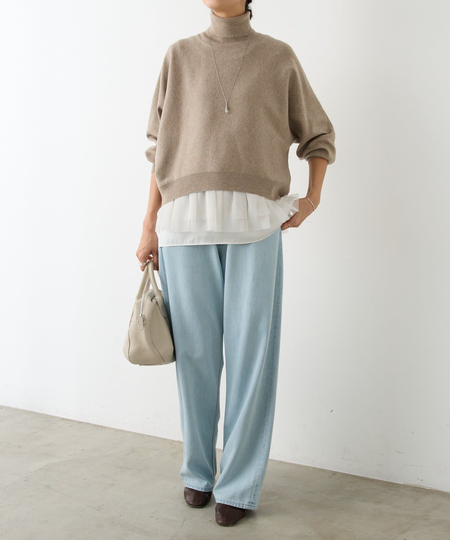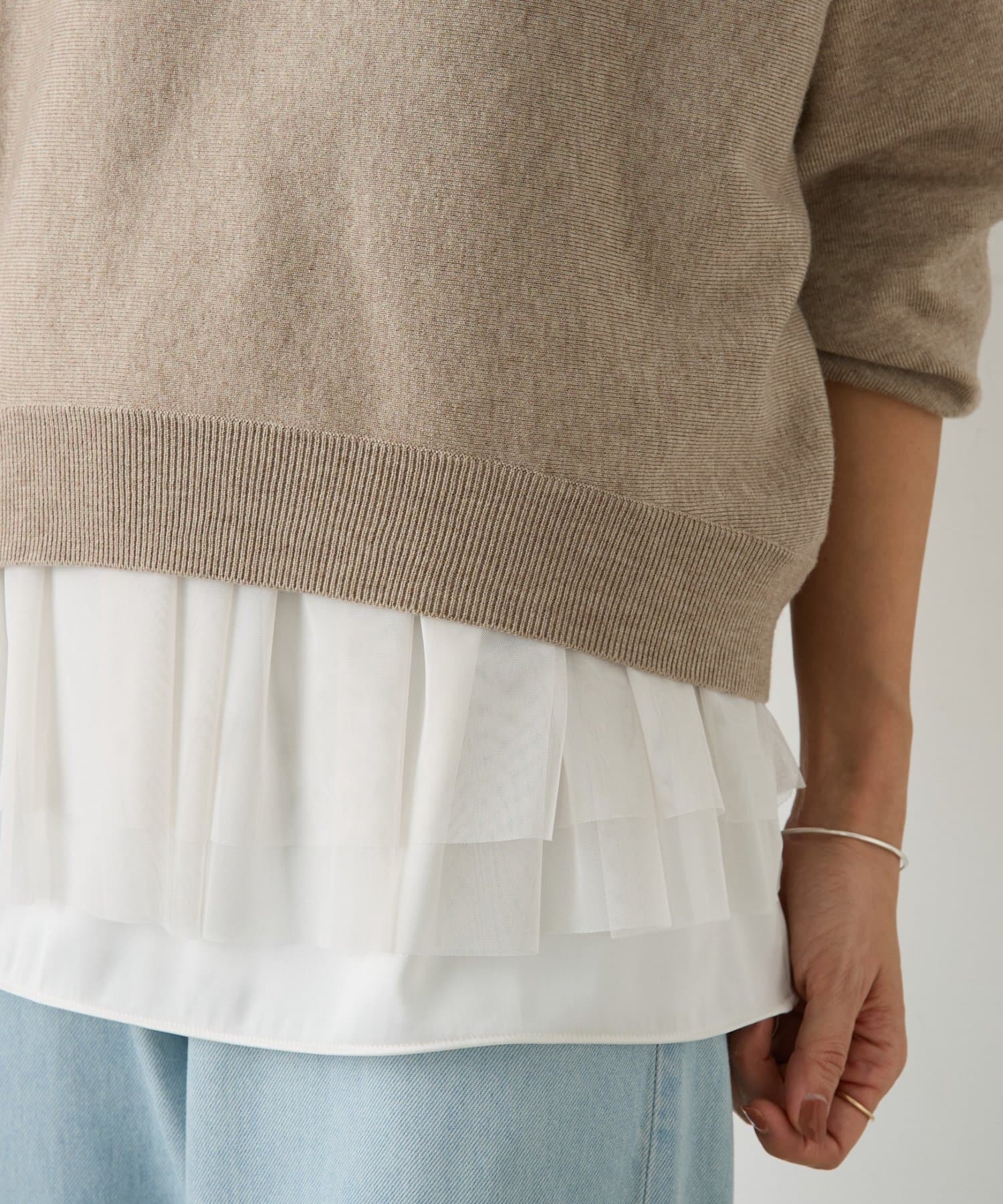 ニットやスウェット、カットソーの下に重ねるだけで、コーデに抜け感と華やかさをプラスしてくれる一枚。