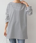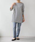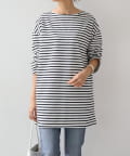 シンプルなボーダー柄のチュニック丈Tシャツです。