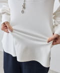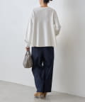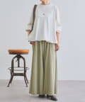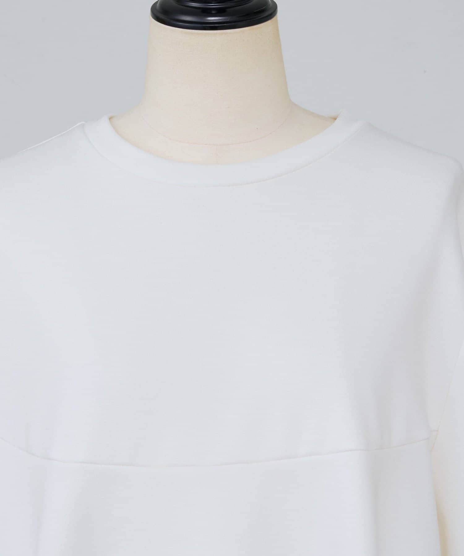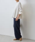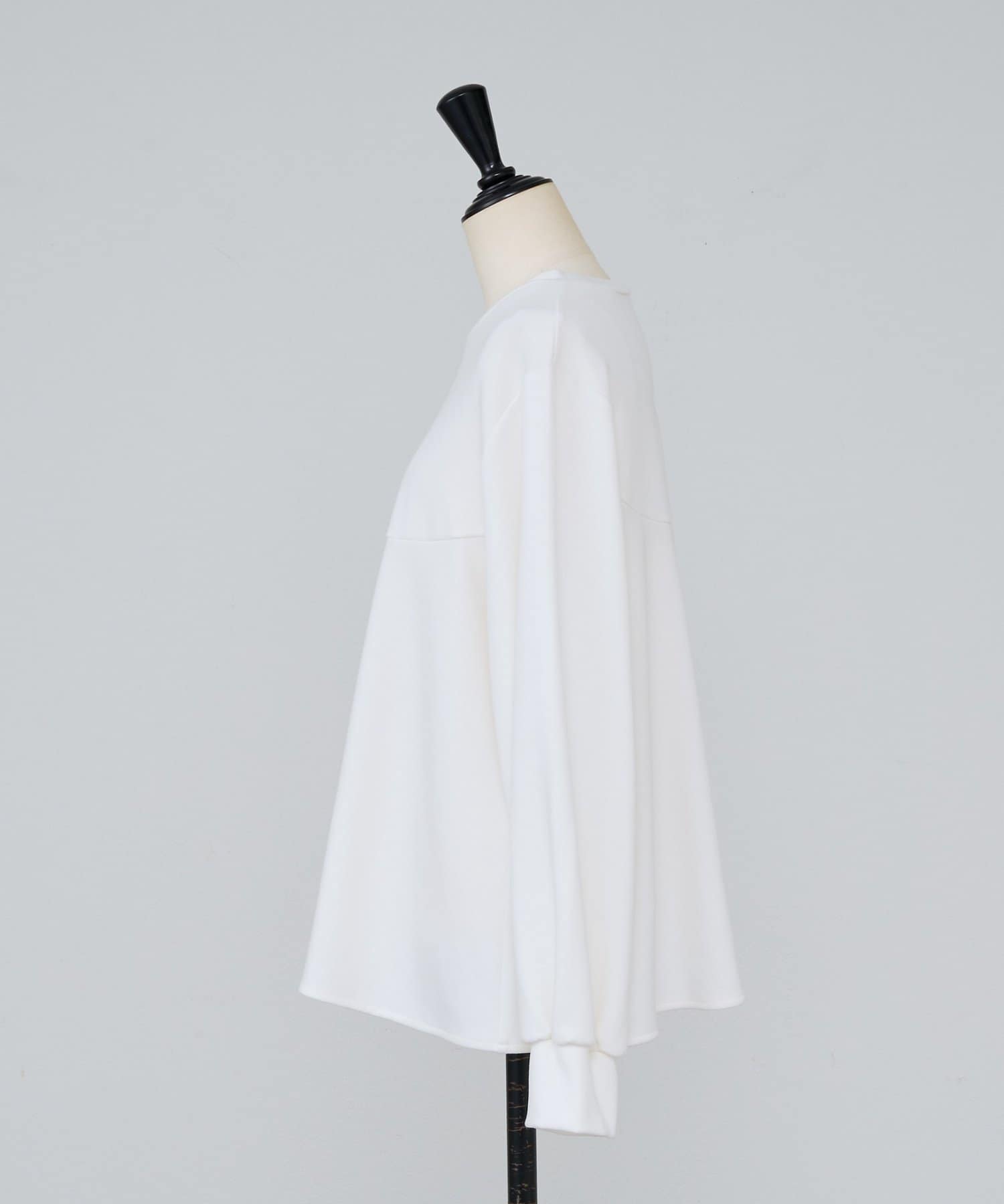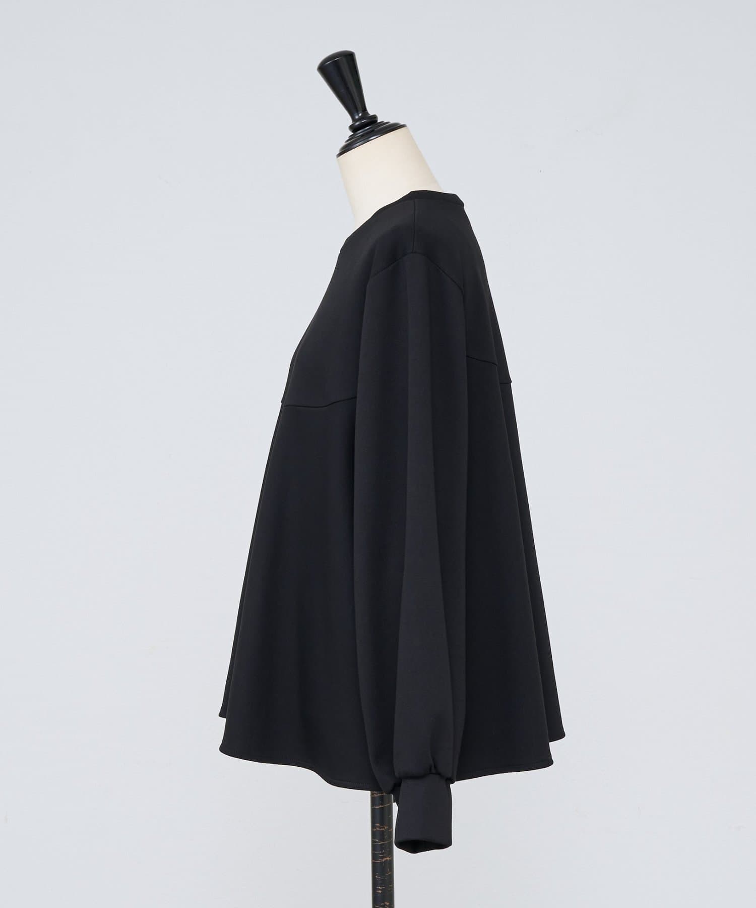 袖口も同じカットソー素材で仕立て、ギャザーを寄せることでやわらかなパフスリーブに。