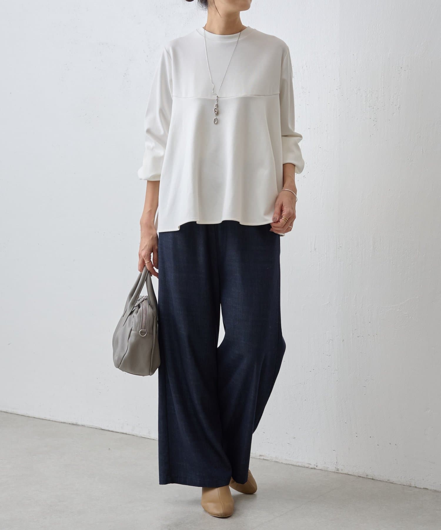 1枚で着映えし、パンツにもスカートにも合わせやすい万能トップスです。