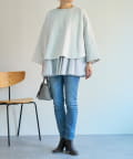 リラックス感のあるトレーナーと、レイヤードしたデザインブラウスが魅力のコンビトレーナー。