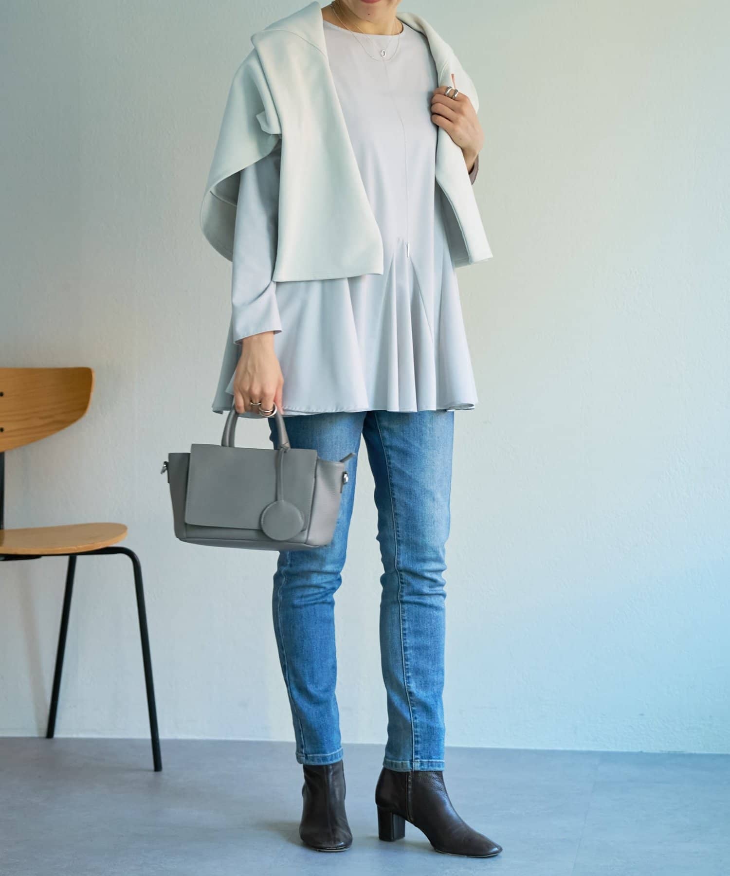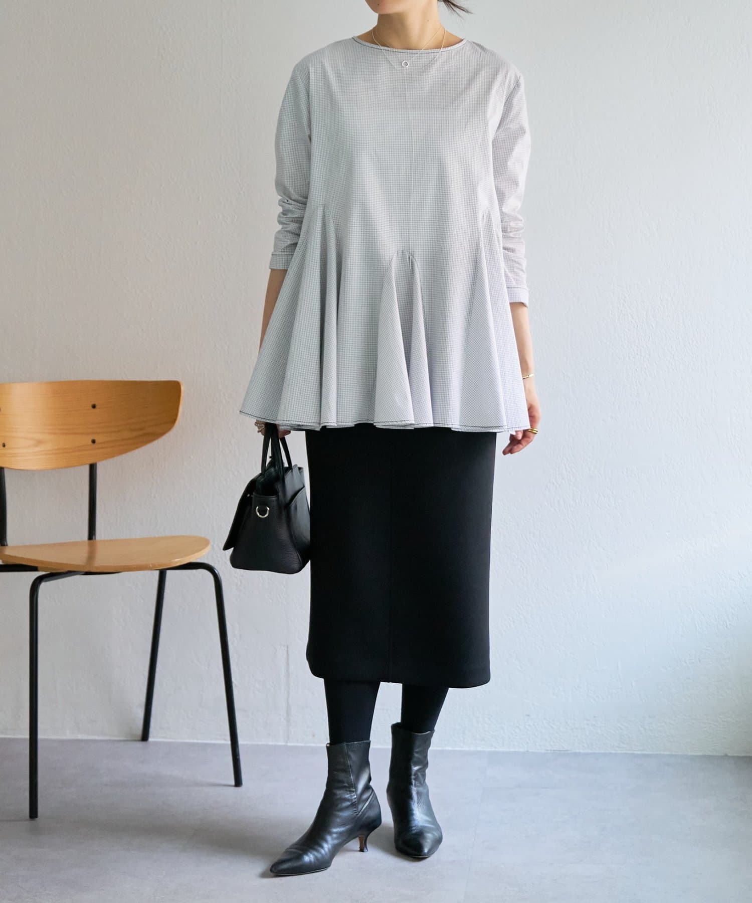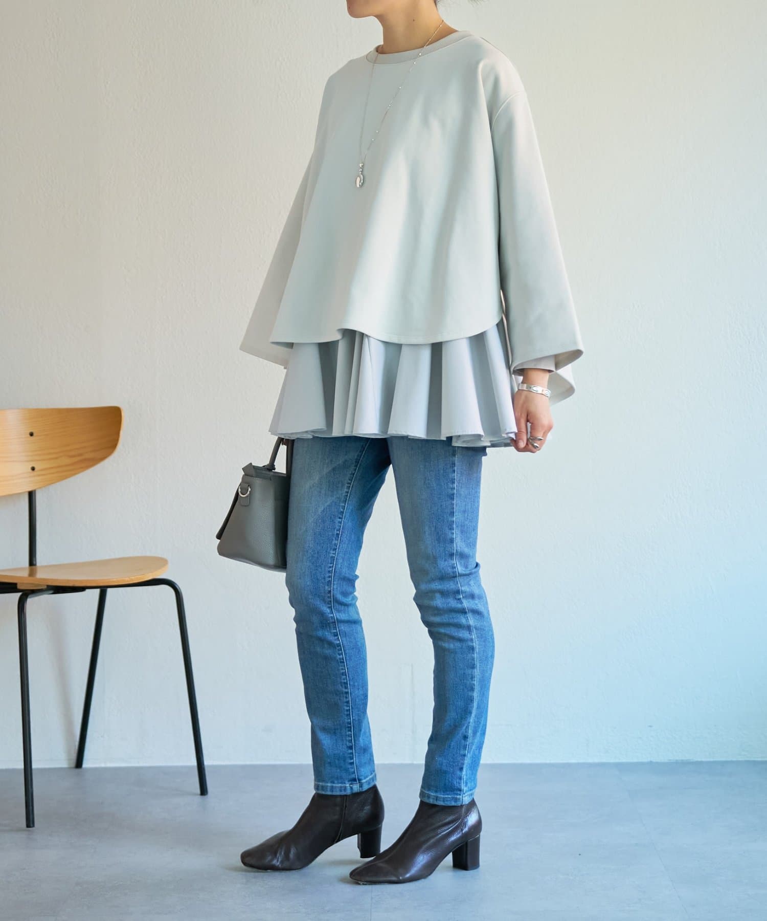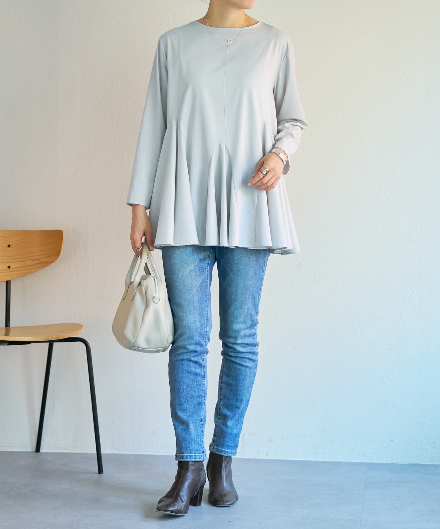 バランスが取りやすく、重ね着スタイルもすっきり見え。