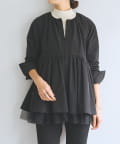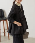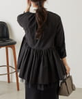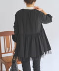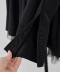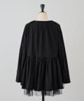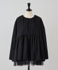 裾にチュールを重ね、軽やかなボリューム感をプラスしたノーカラーブルゾン。