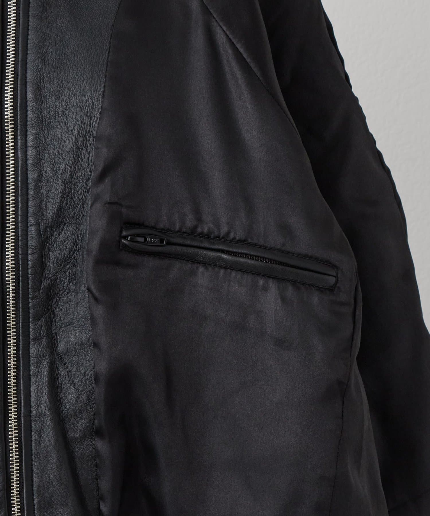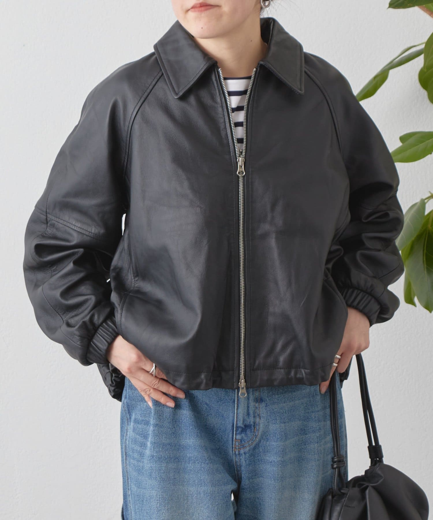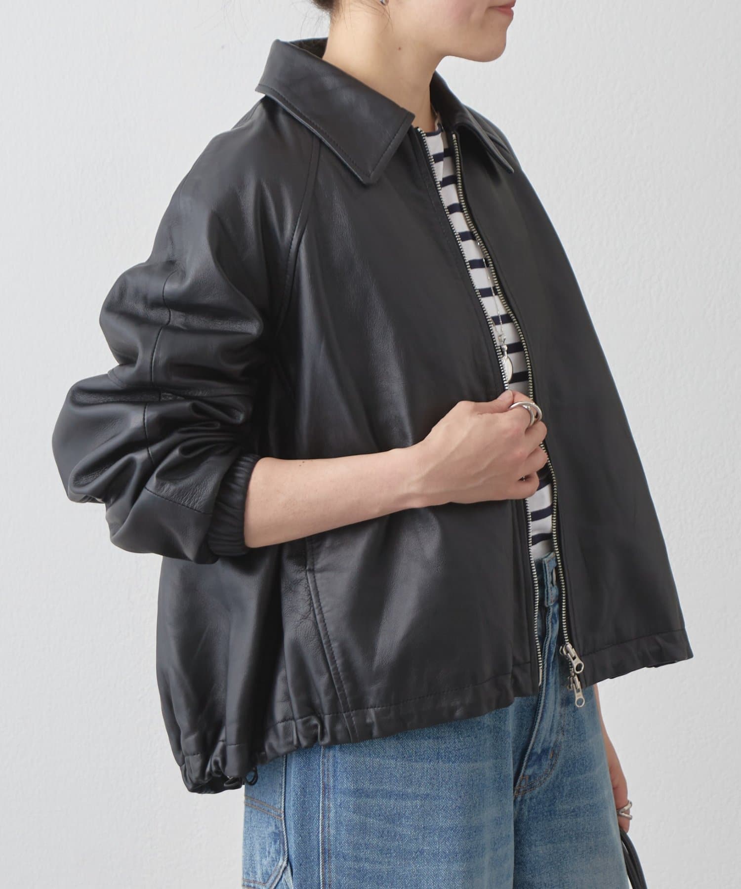 立体的なフォルムが際立つ、計算されたシルエットが魅力のレザーブルゾン。