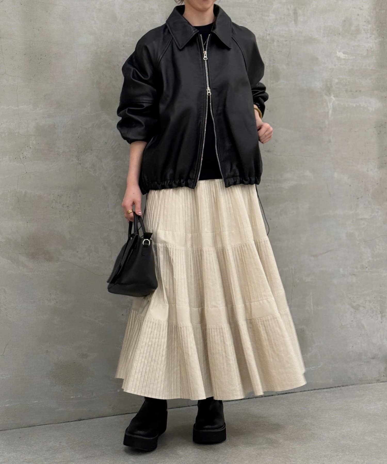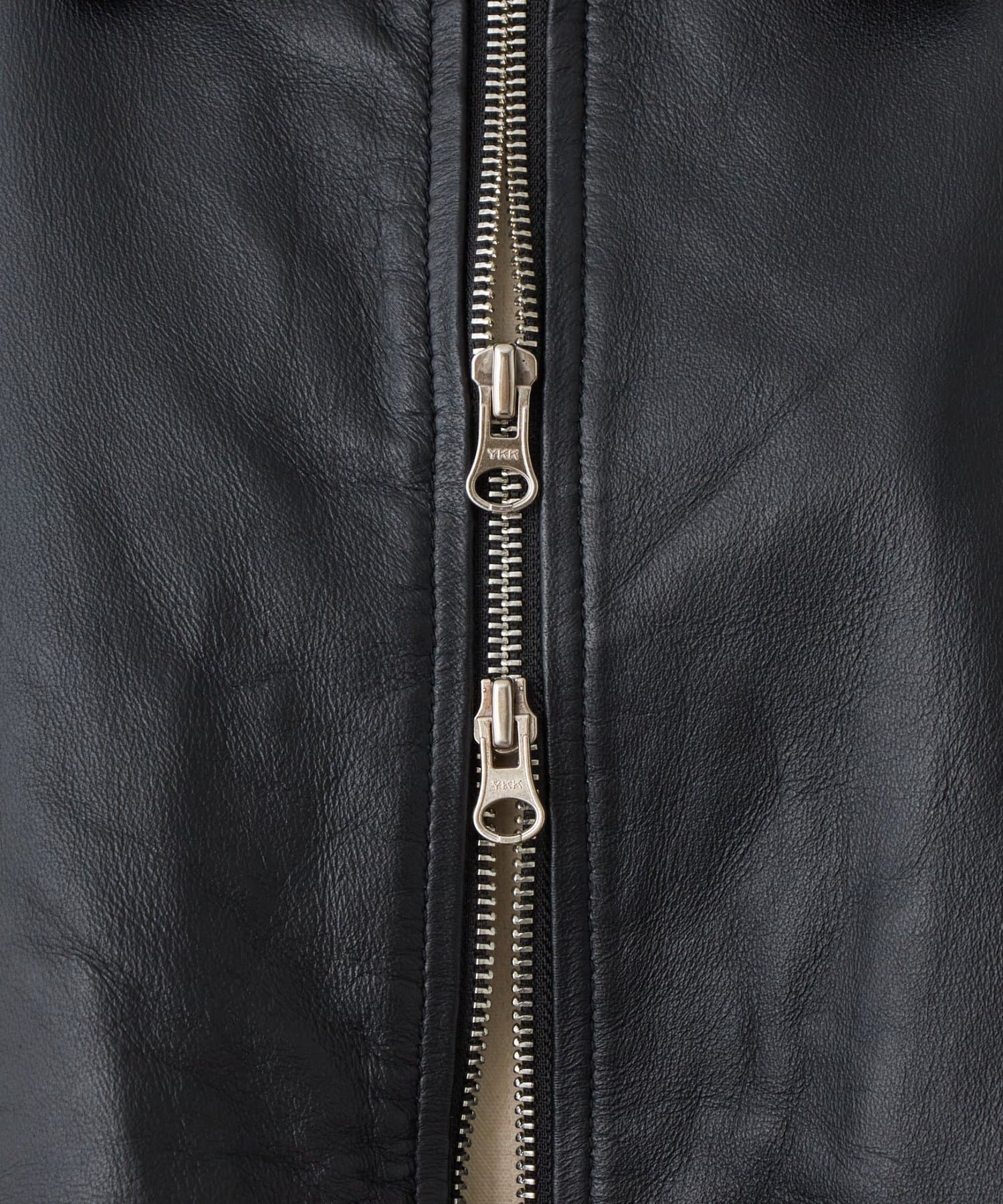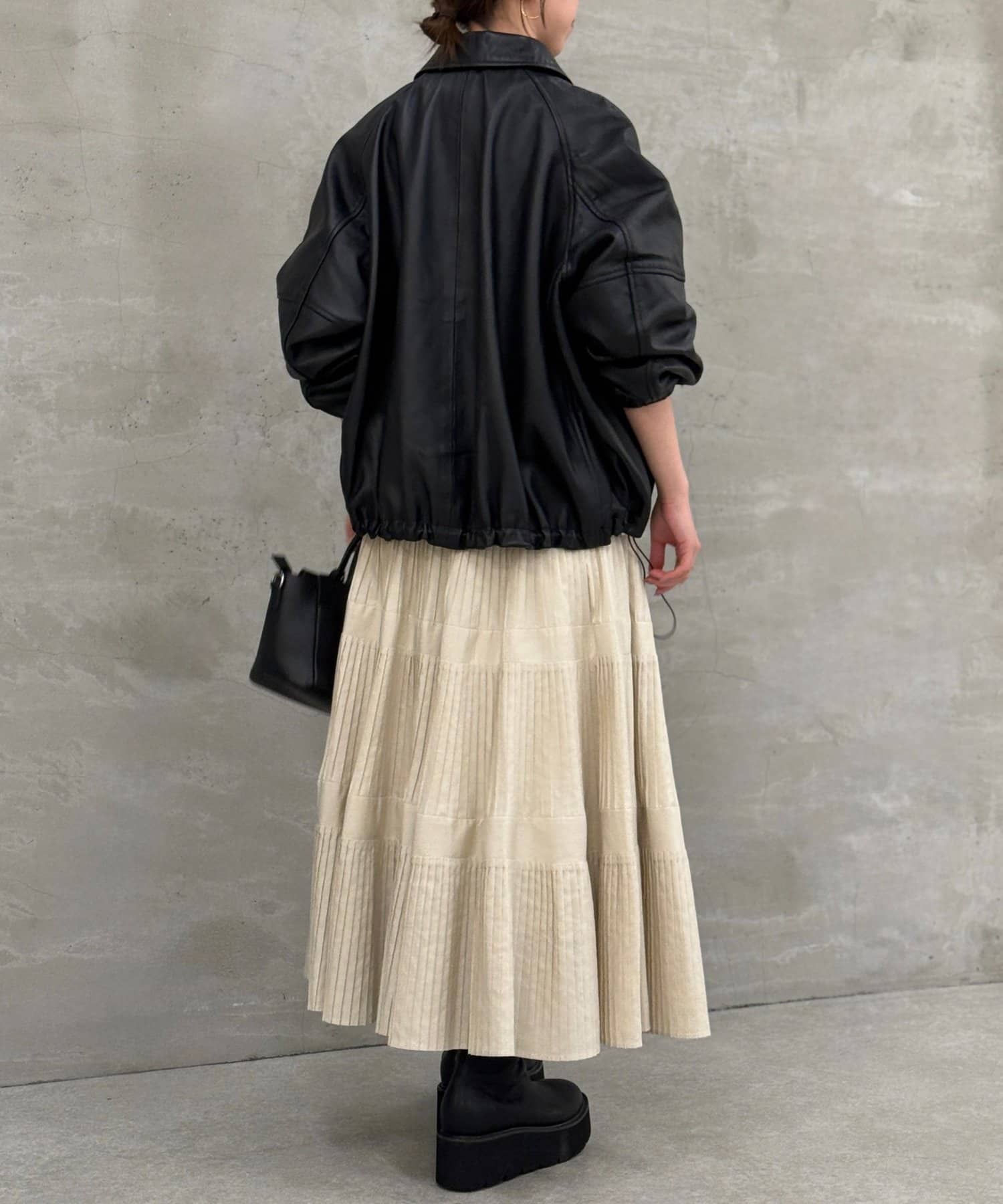 立体的なフォルムが際立つ、計算されたシルエットが魅力のレザーブルゾン。