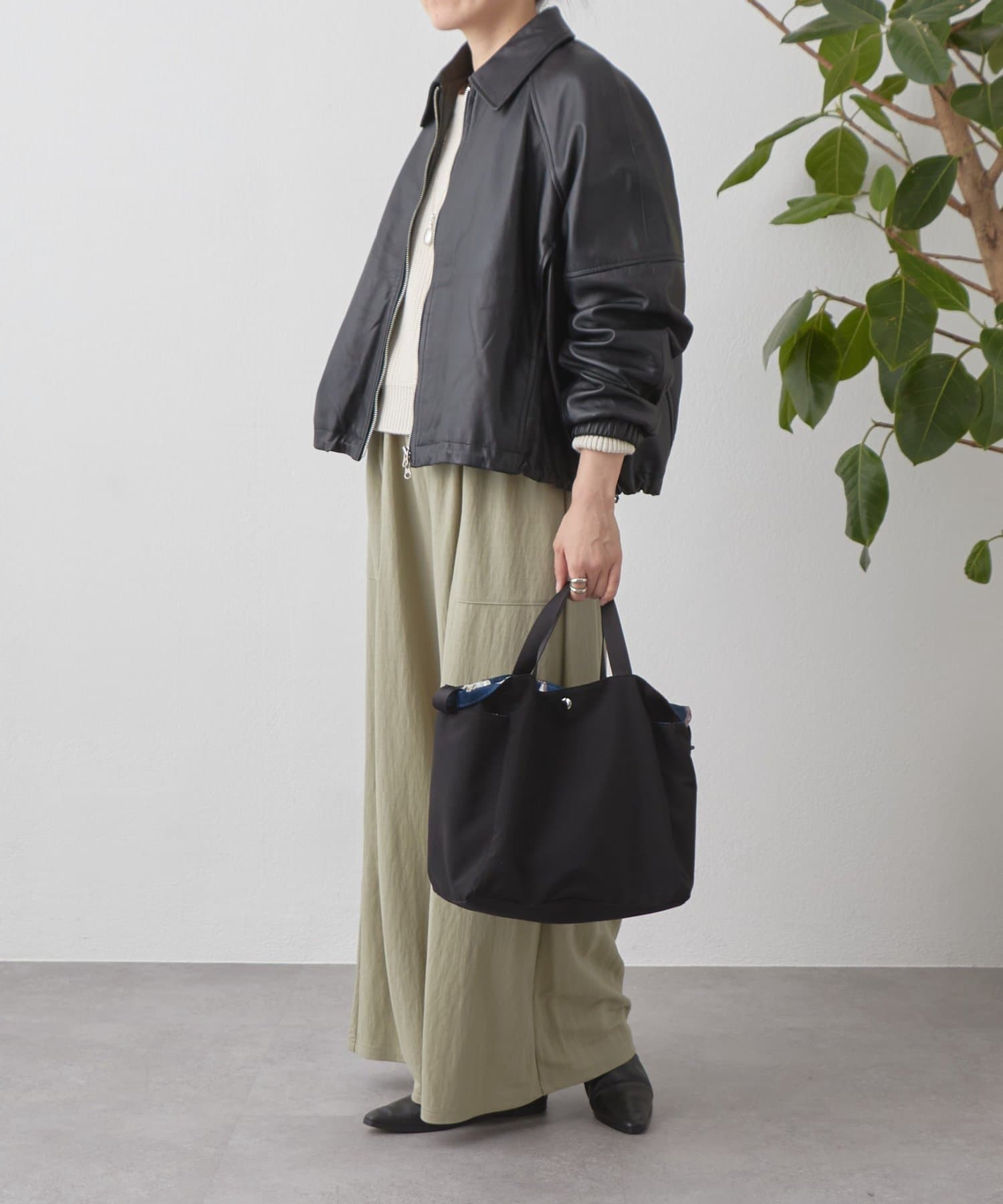 裾にはドロストコードを通しており、絞ることで丸みのあるフォルムに変化。