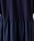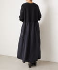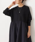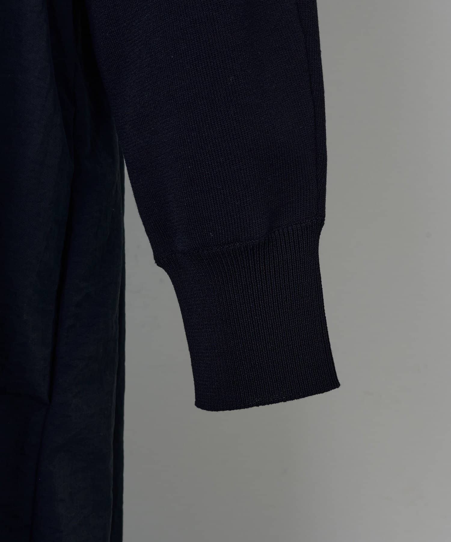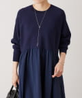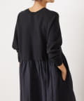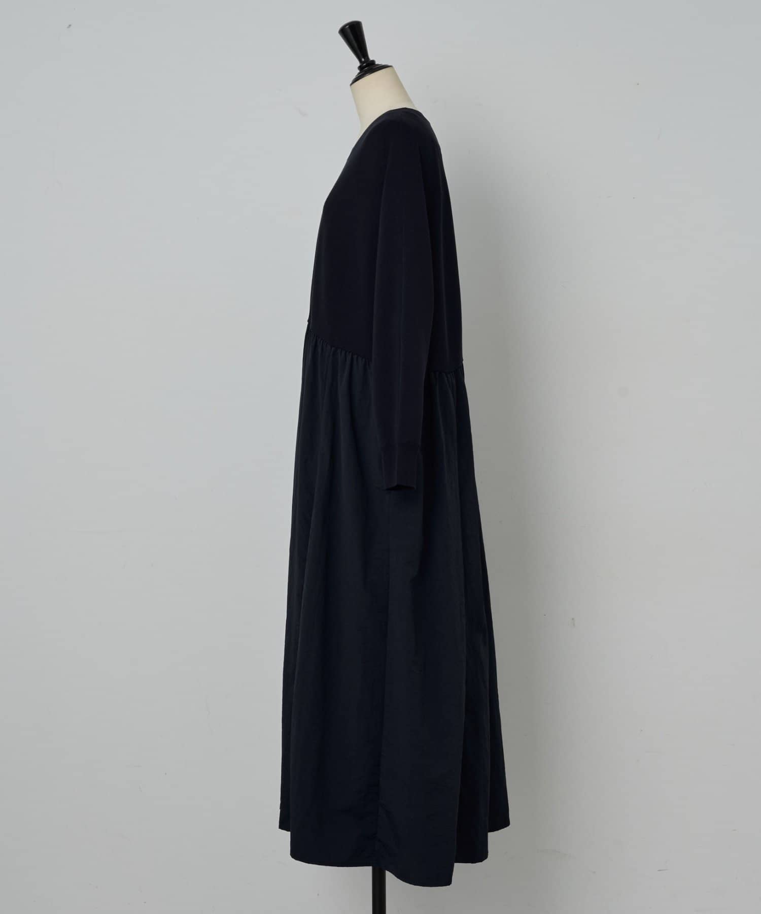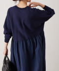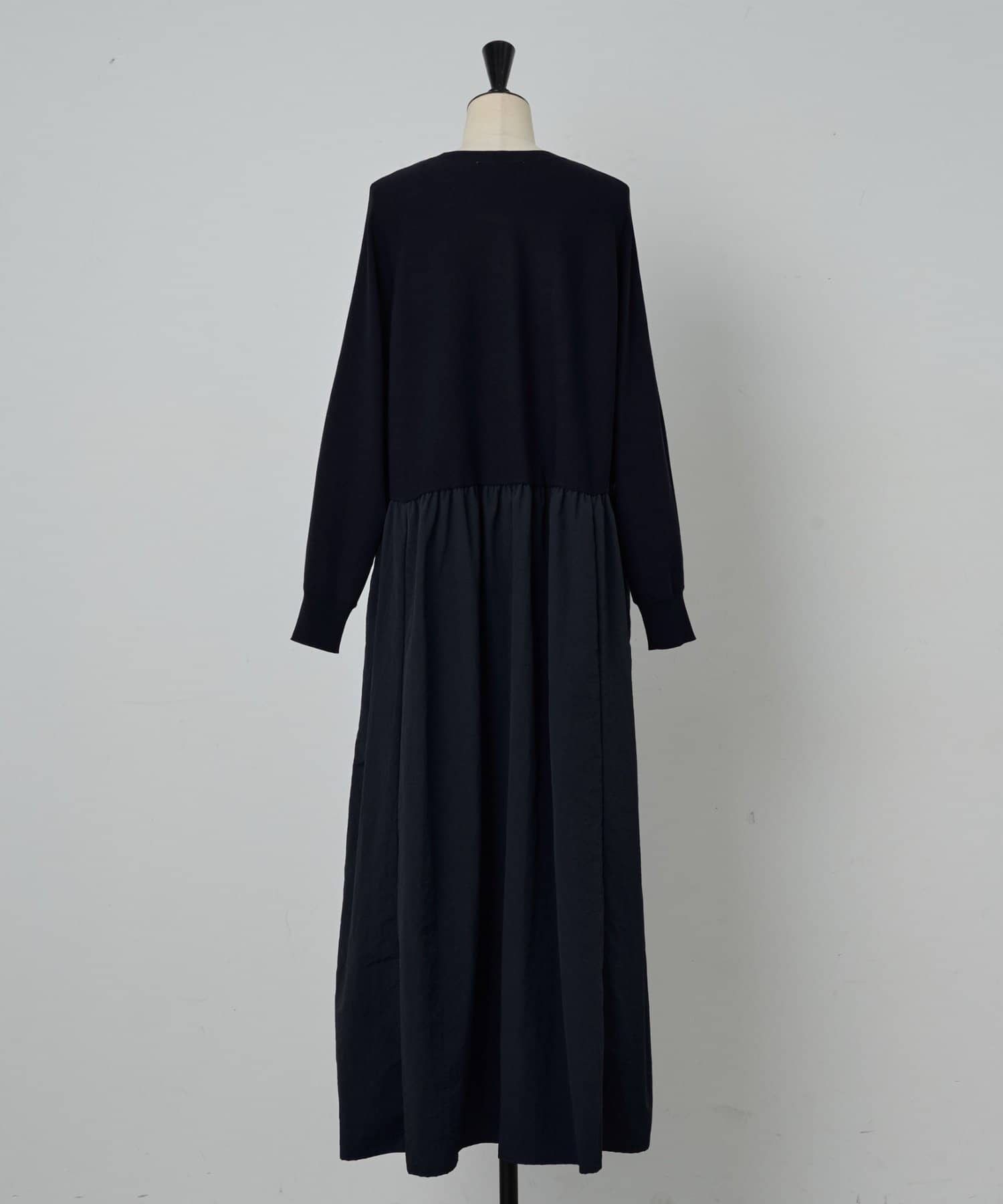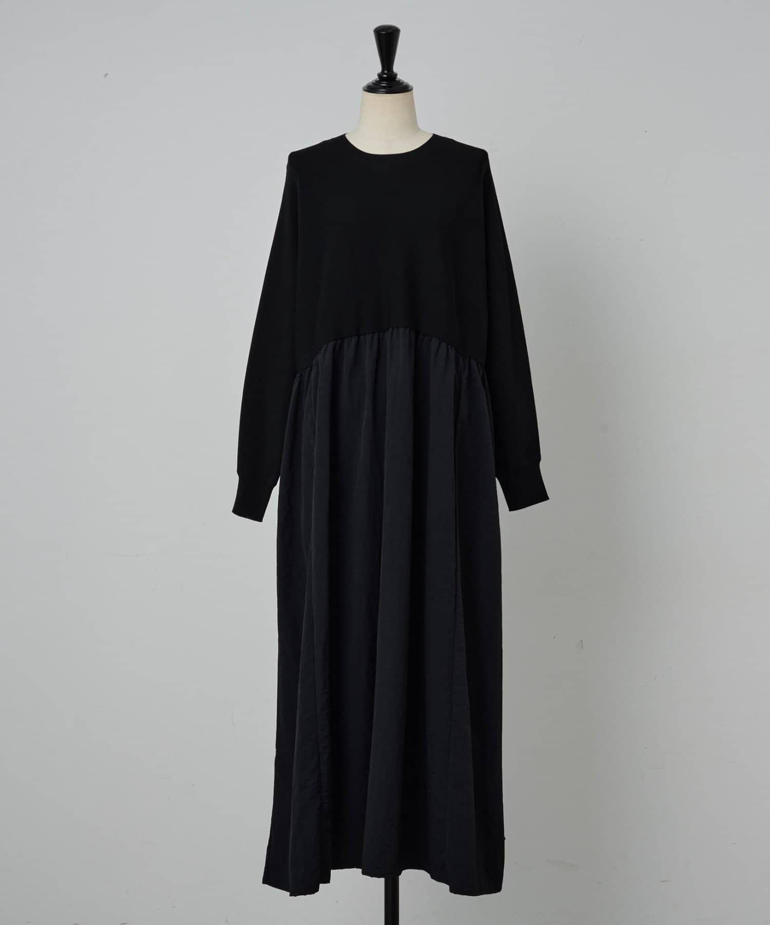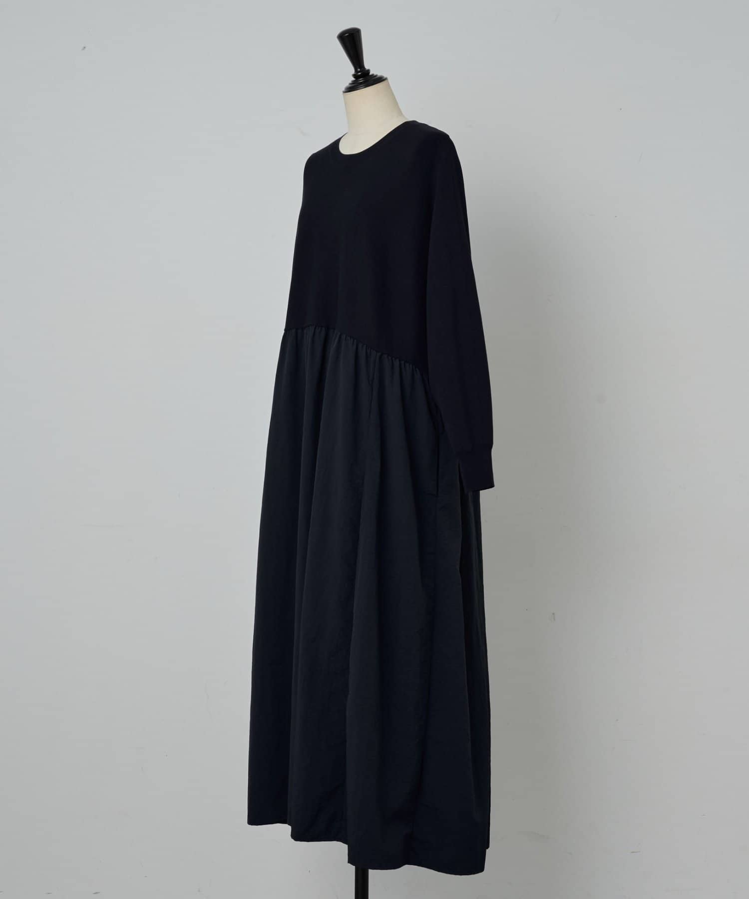 ニット×ナイロンスカートの異素材コンビワンピース。
