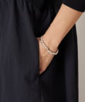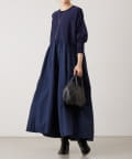 トップスには、さらりとした肌触りのハイゲージニットを使用し、上品で落ち着いた印象に。