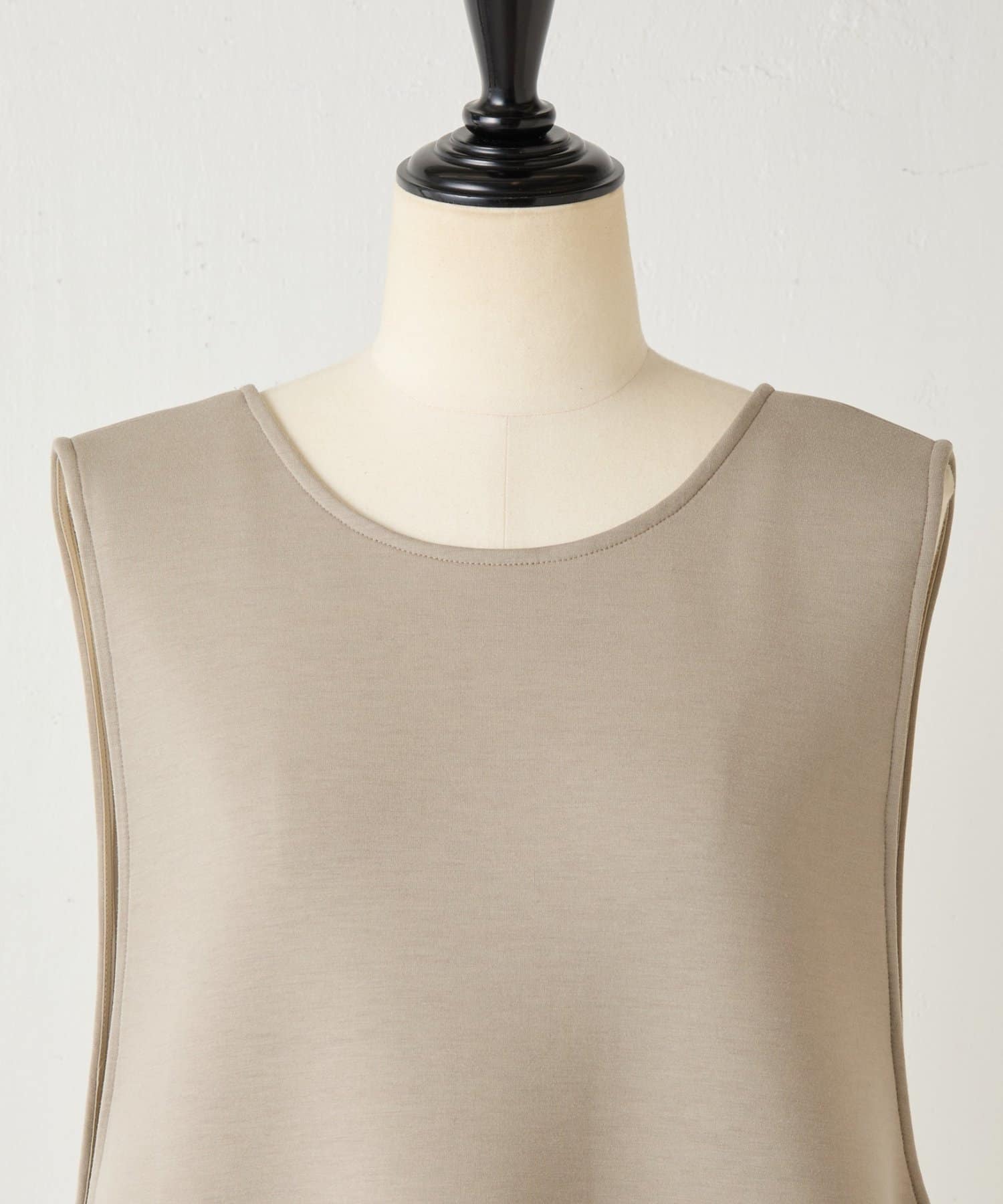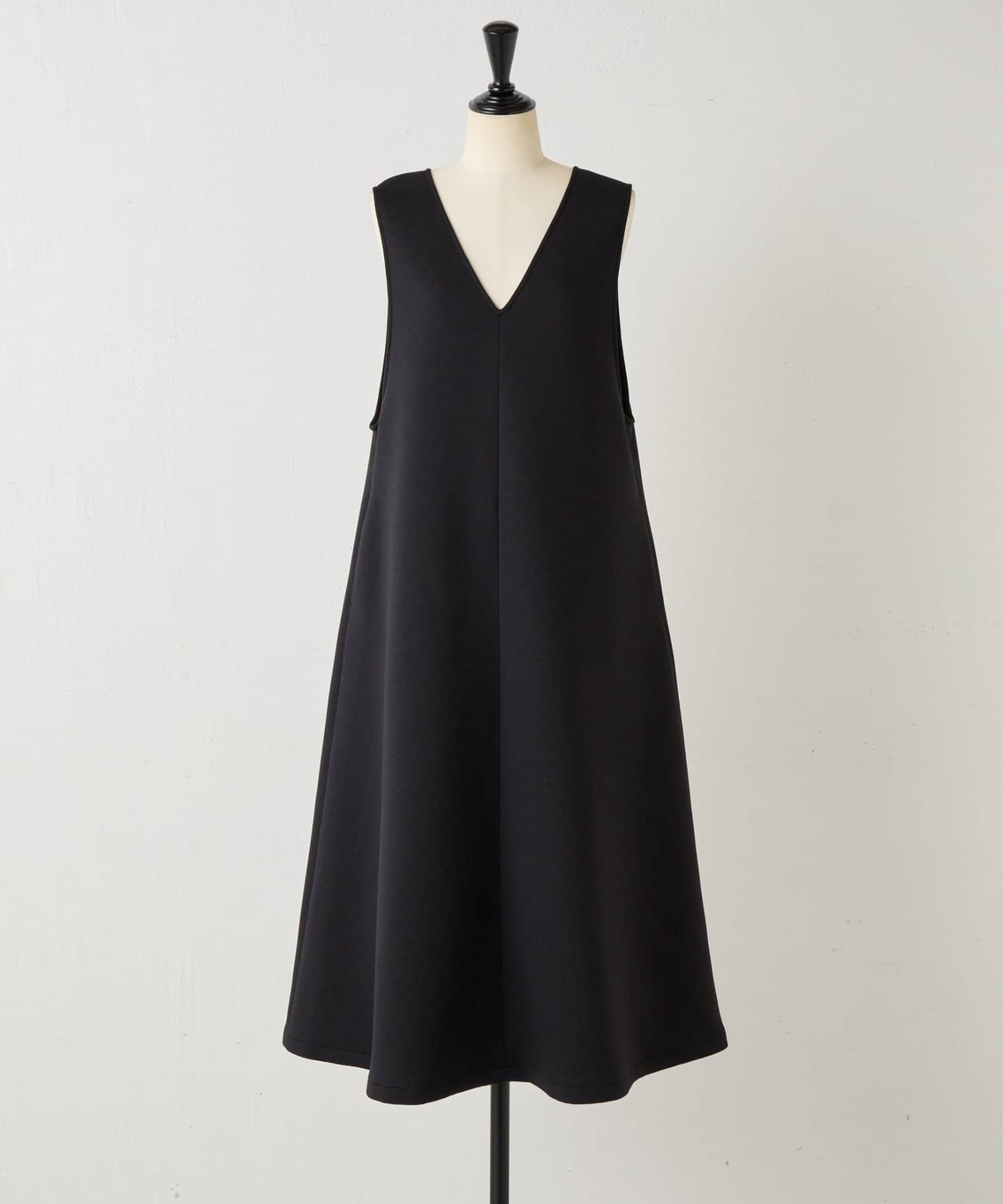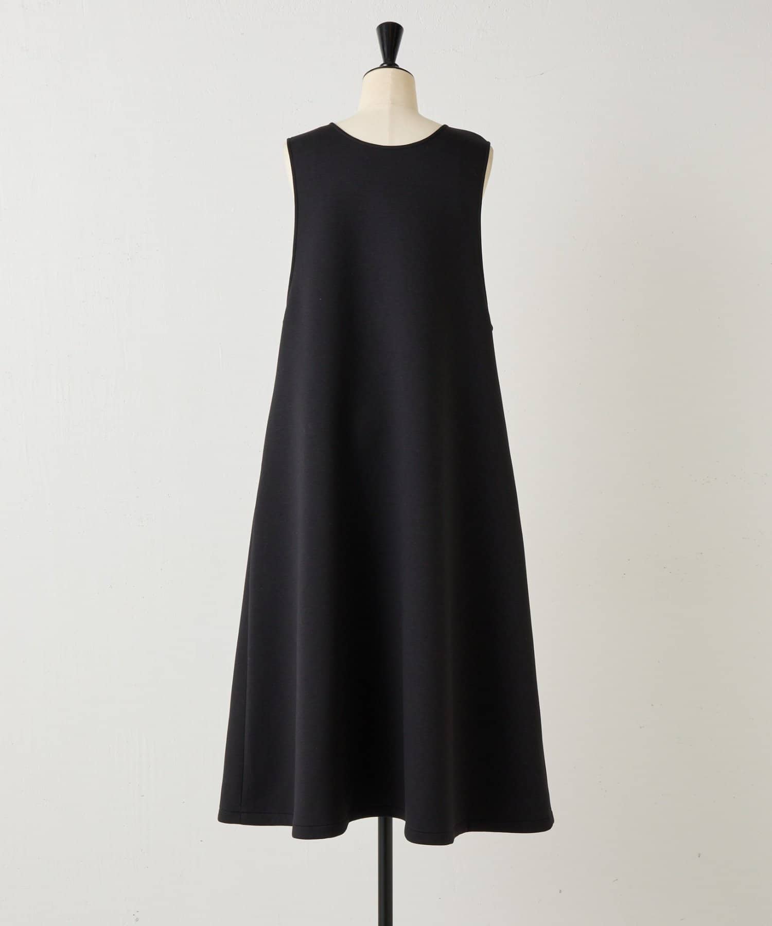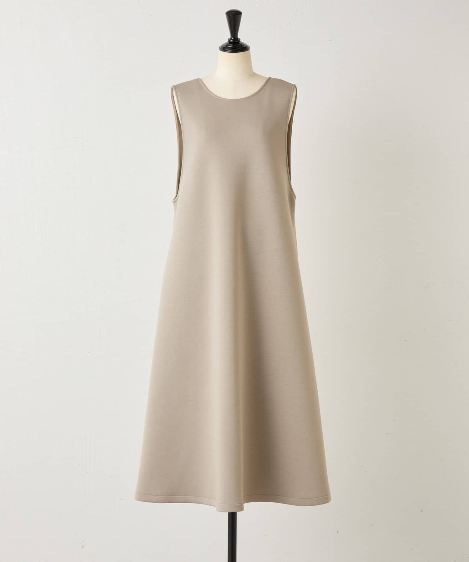 ハリ感のある生地が身体のラインを拾いにくく、裾に向かって美しく広がるフレアシルエットをキープ。