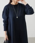 衿元に施した切り替えが、さりげないアクセントになるスウェットワンピース。