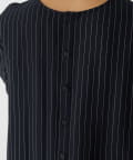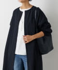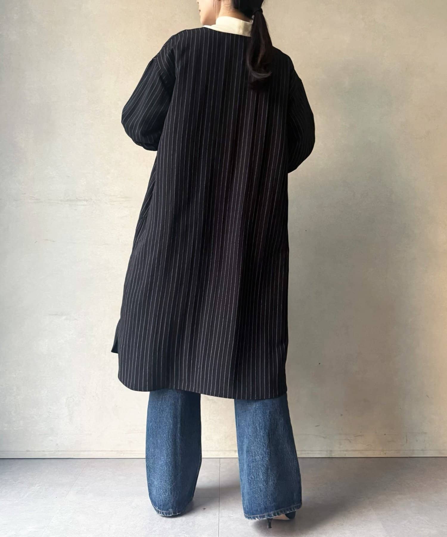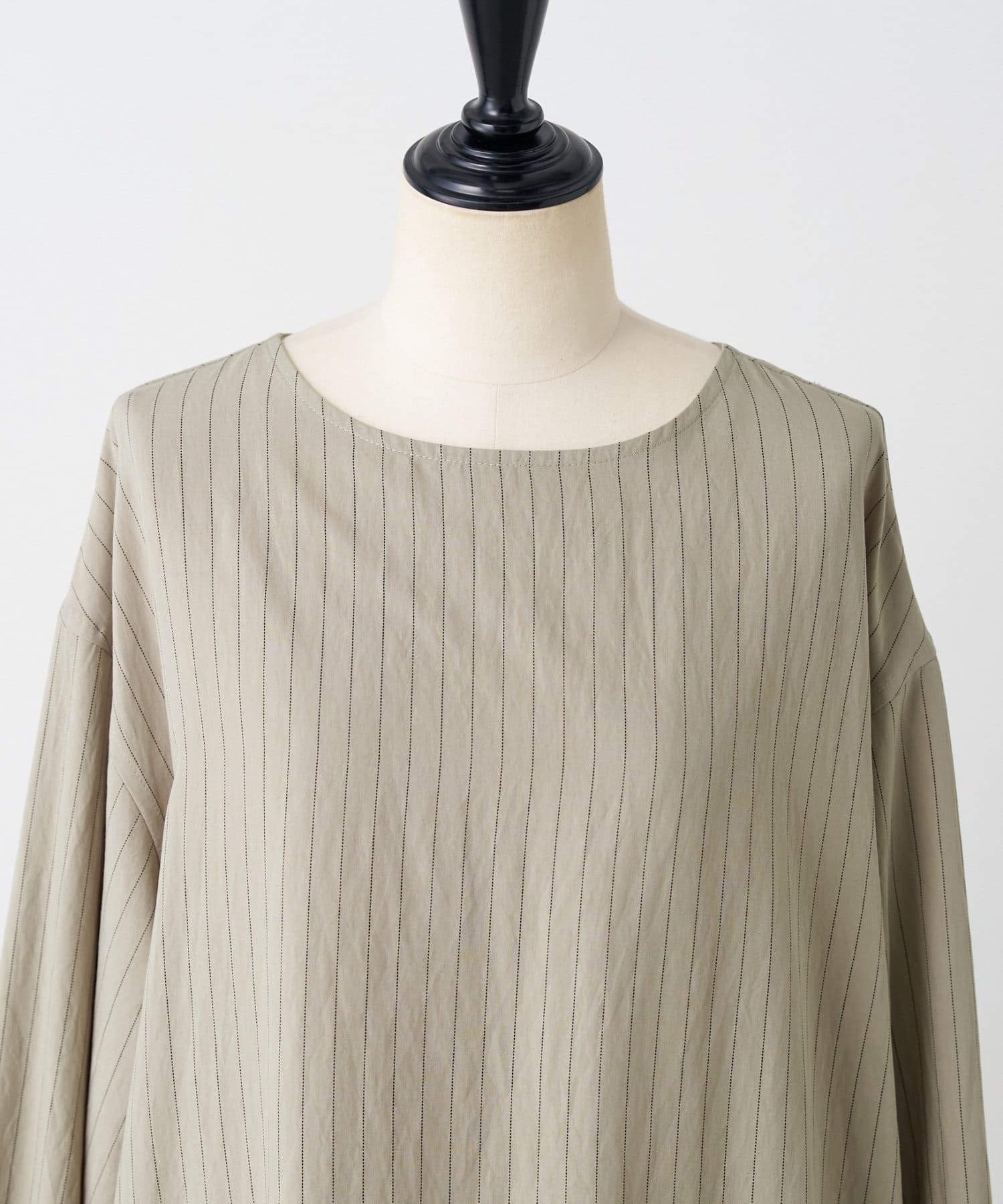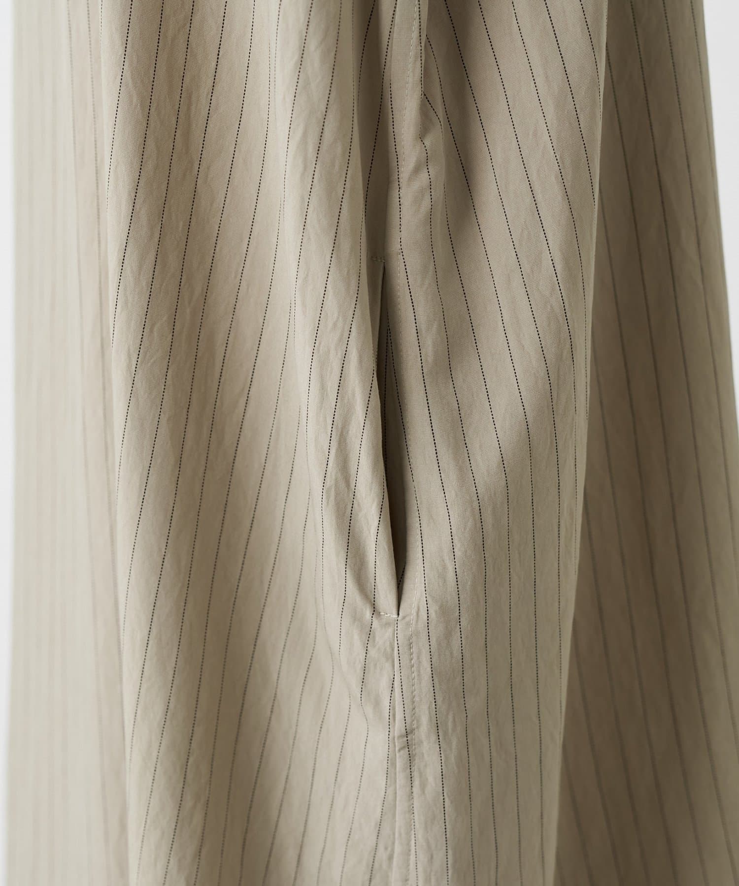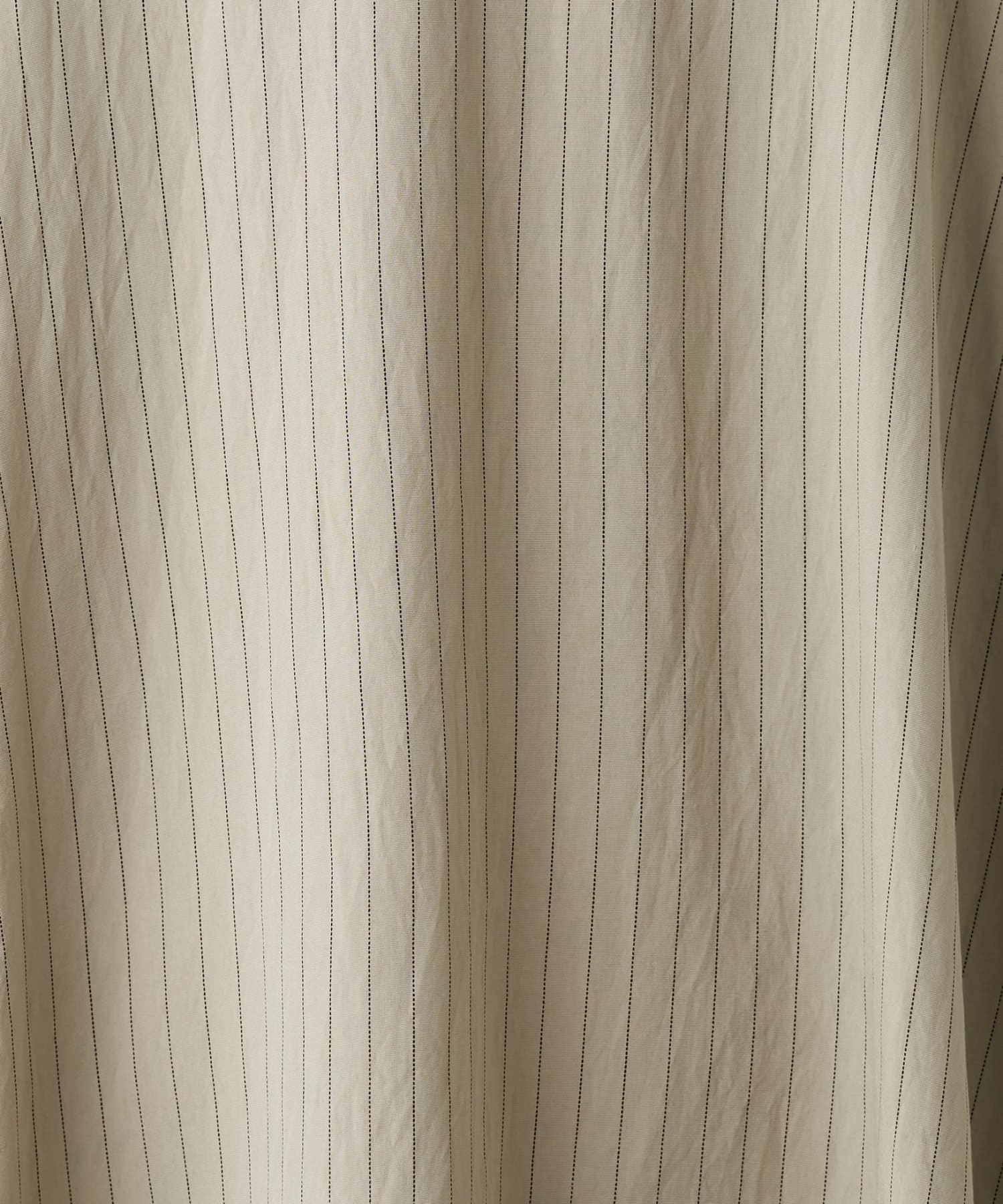 ペンシルストライプ生地を用いた、クリーンな表情のシャツワンピース。