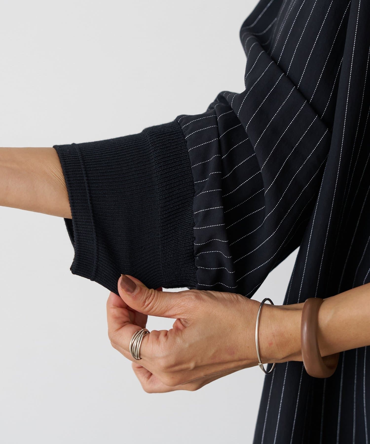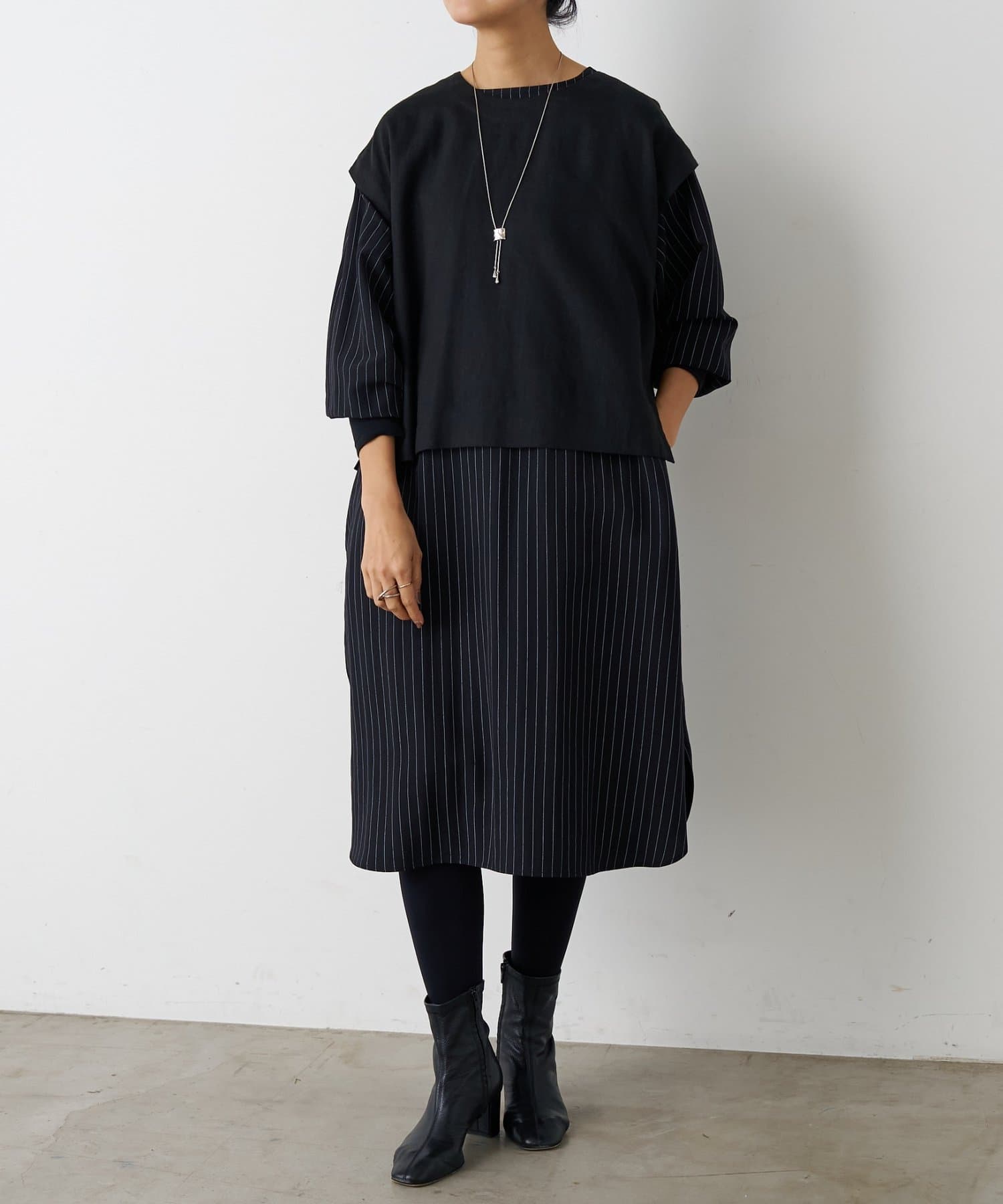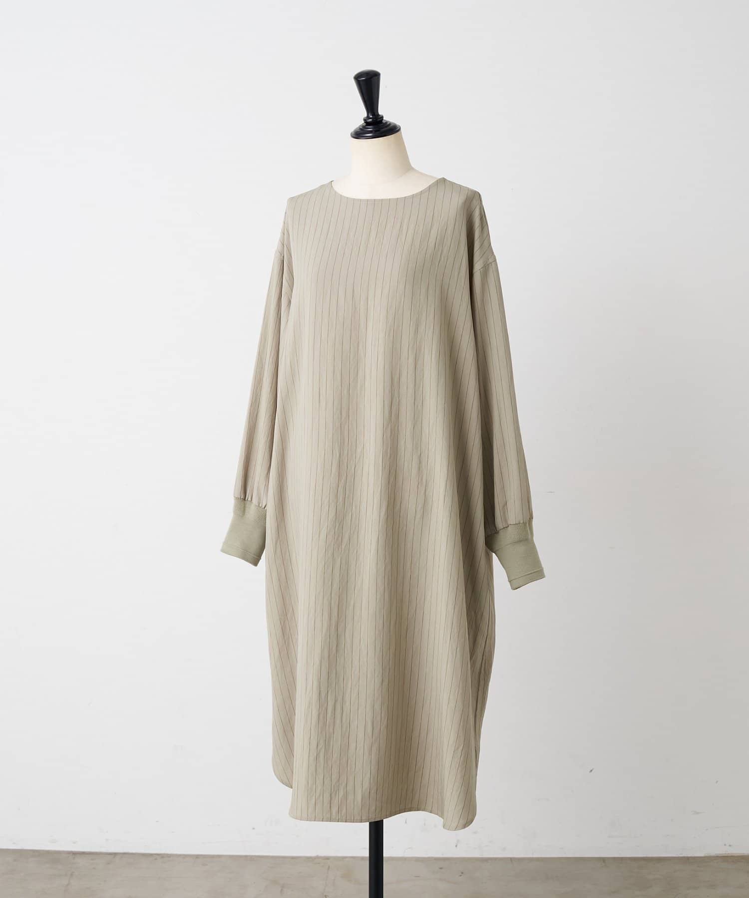 一枚で様になる上品さと、レイヤードにも使いやすい万能さを兼ね備えた、大人のためのストライプワンピースです。