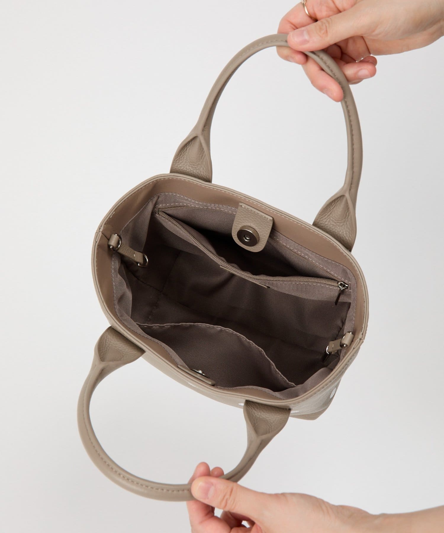 取り外し可能なショルダーストラップ付きで、ハンド・ショルダーの2WAY仕様。