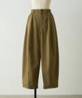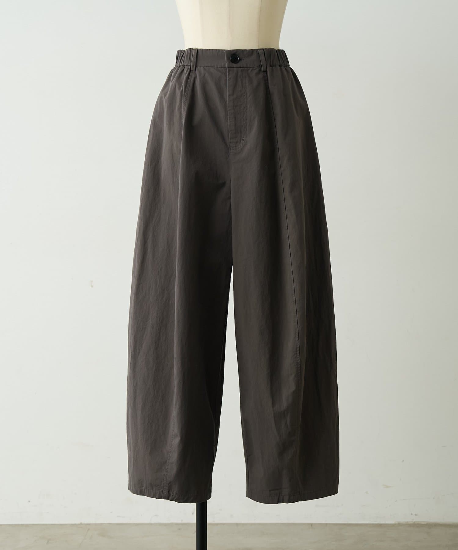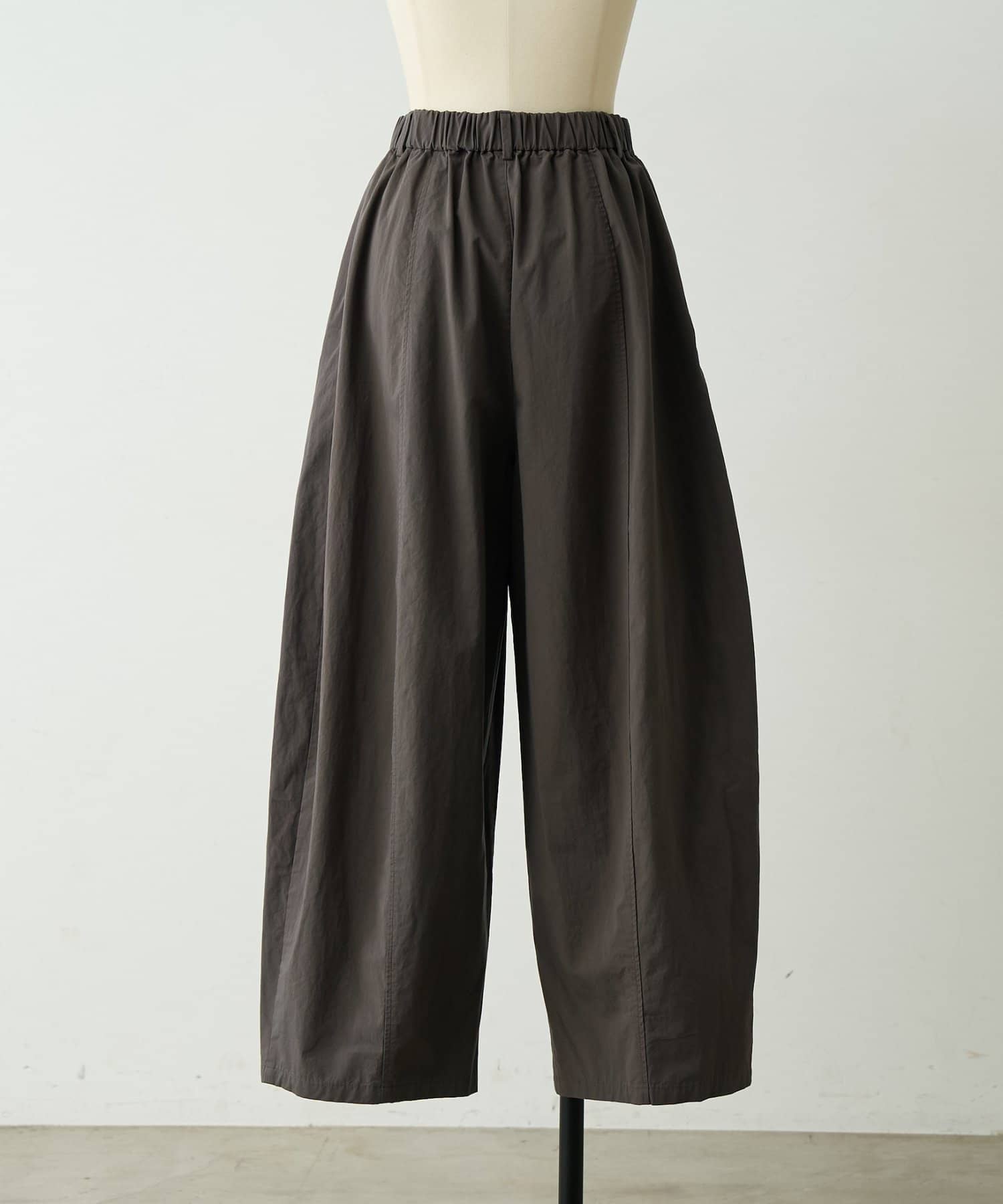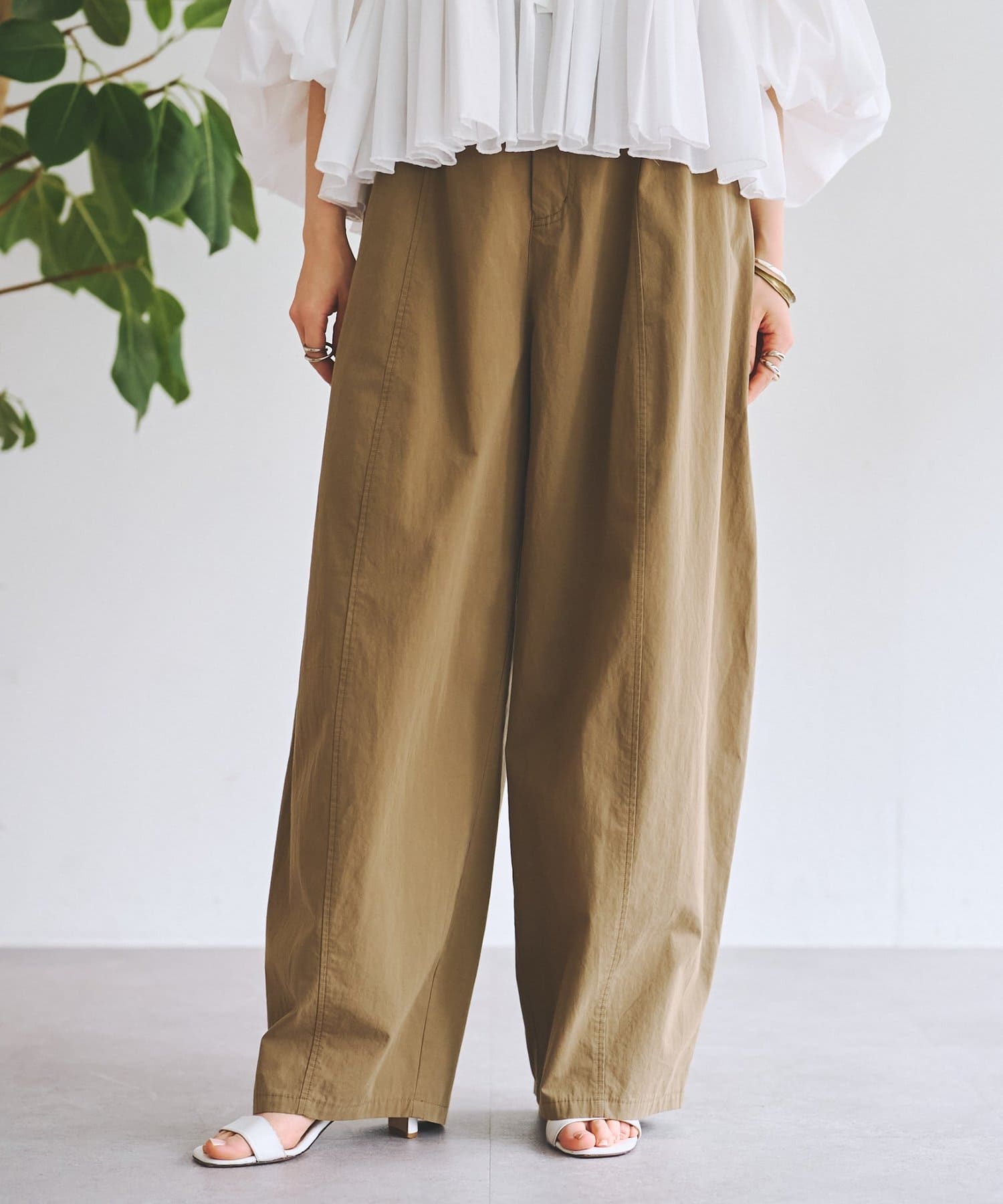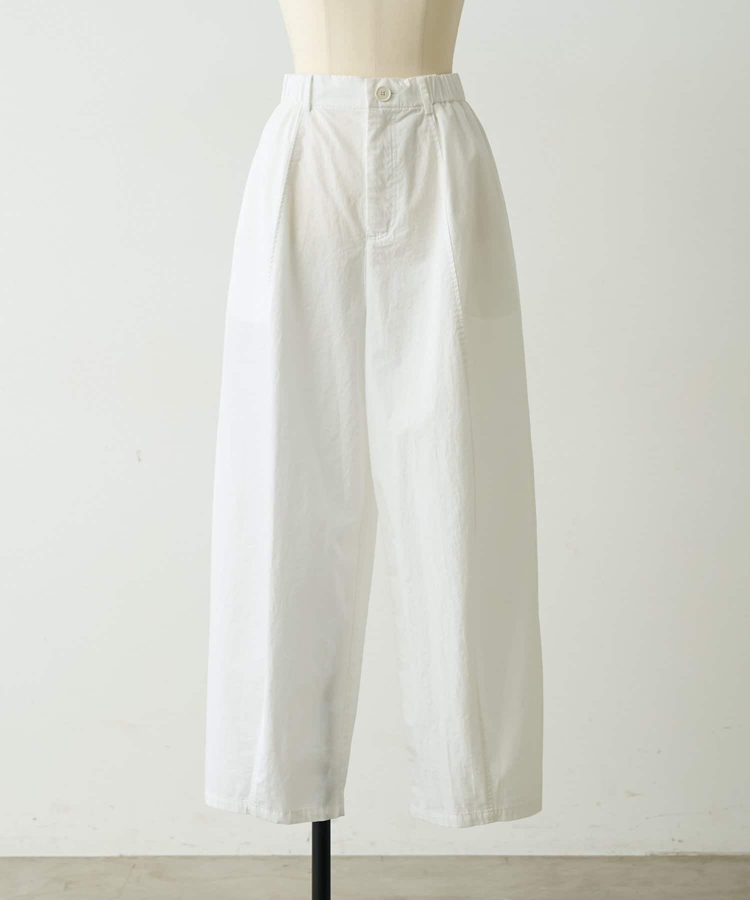 丸みのある立体的なシルエットが特徴のコットンバレルパンツ。
