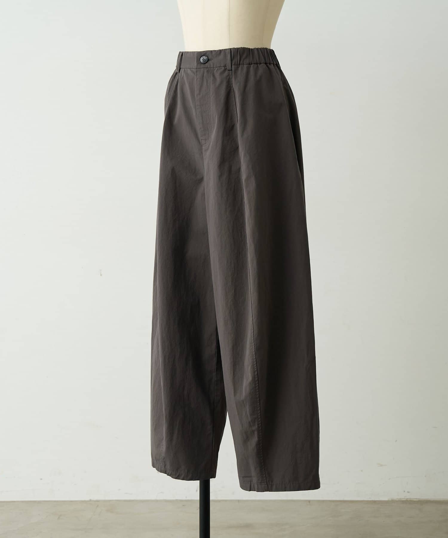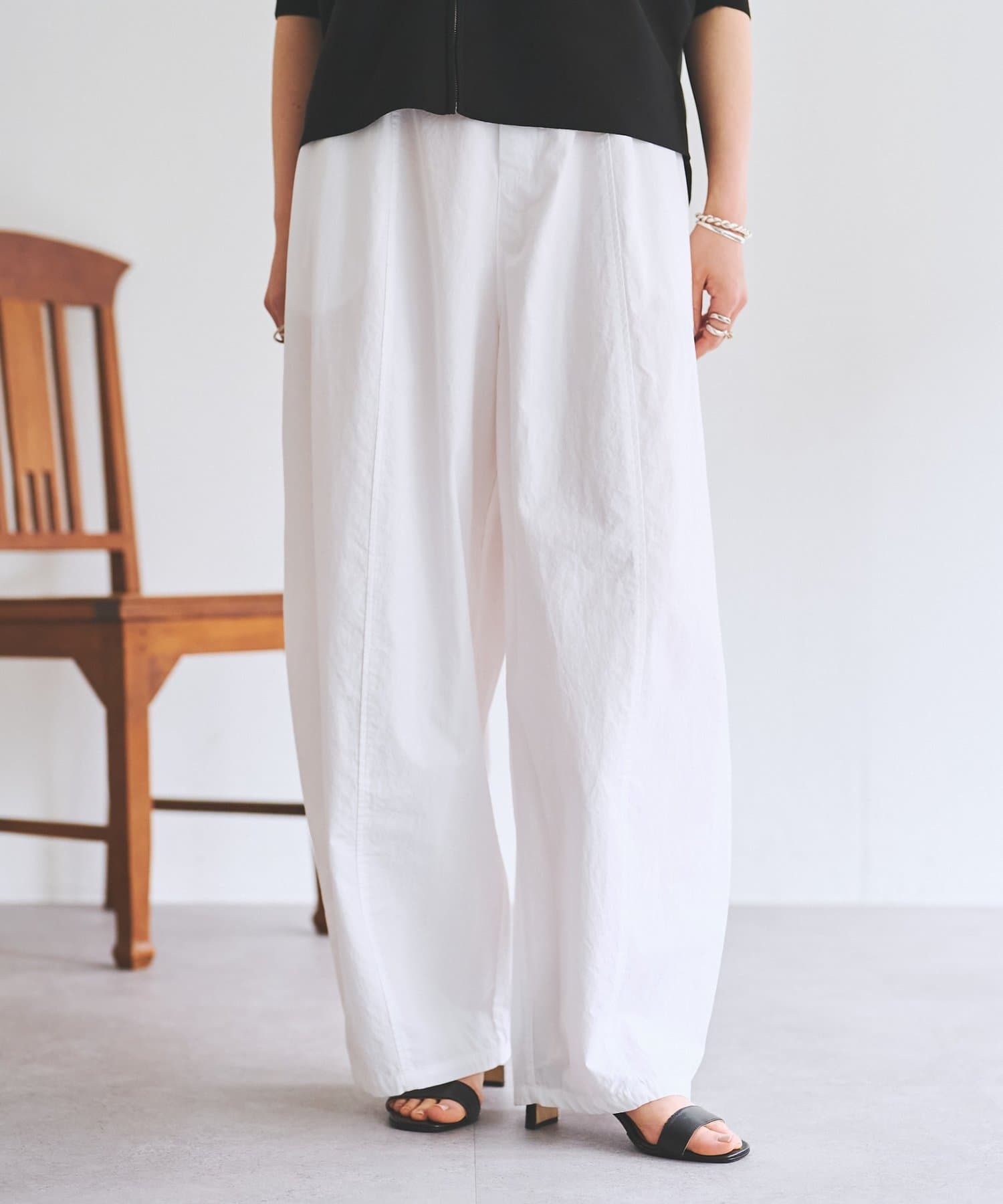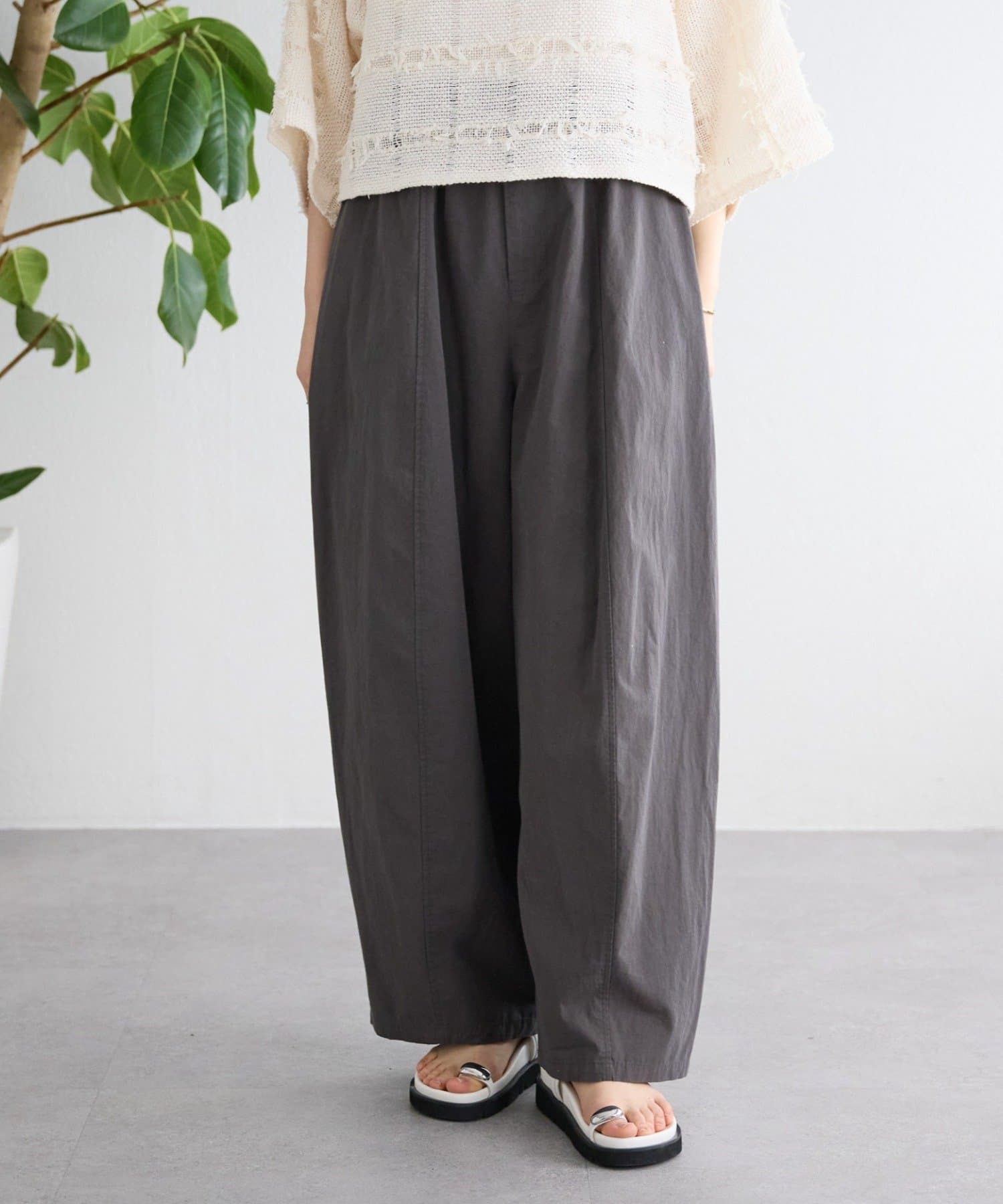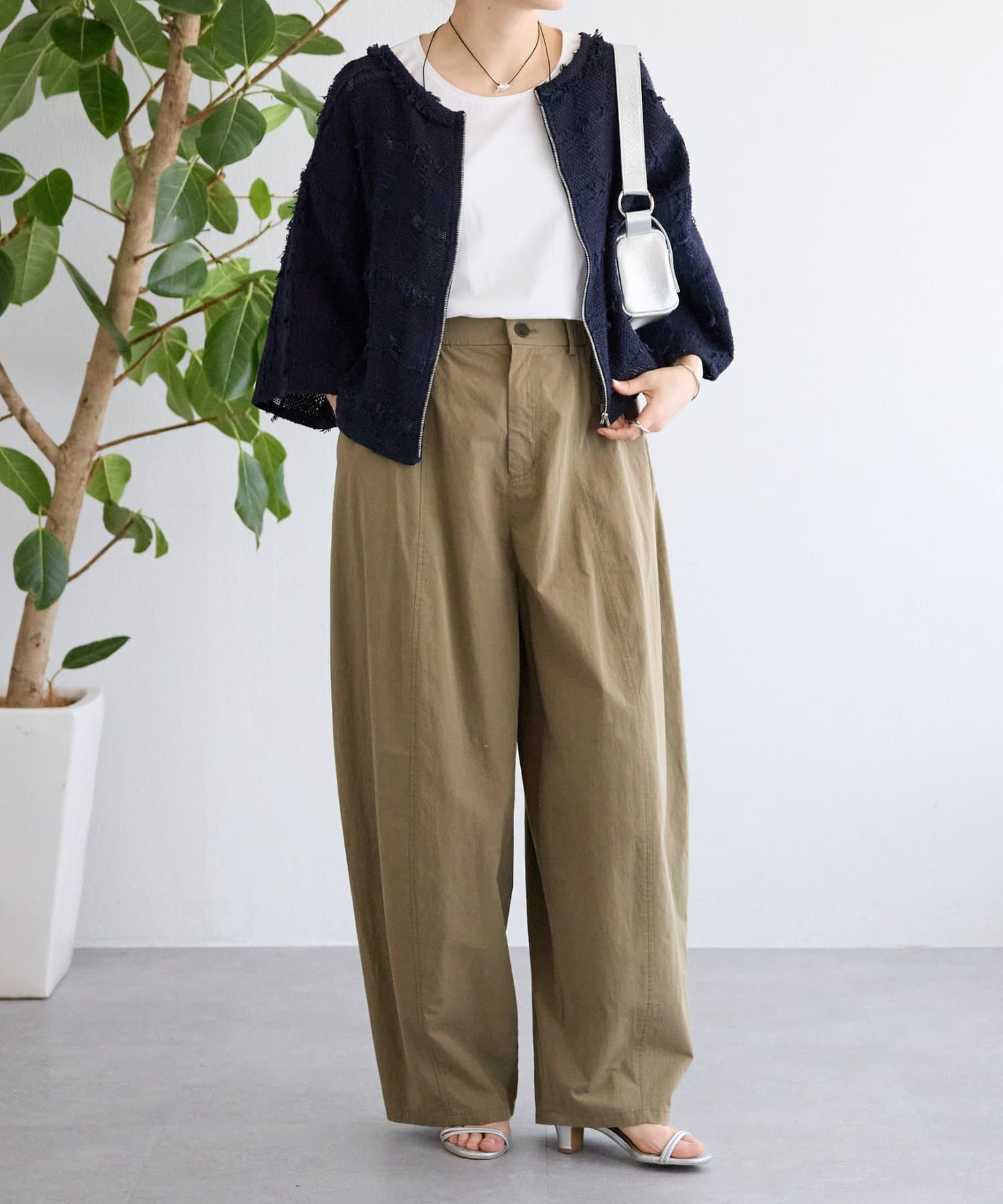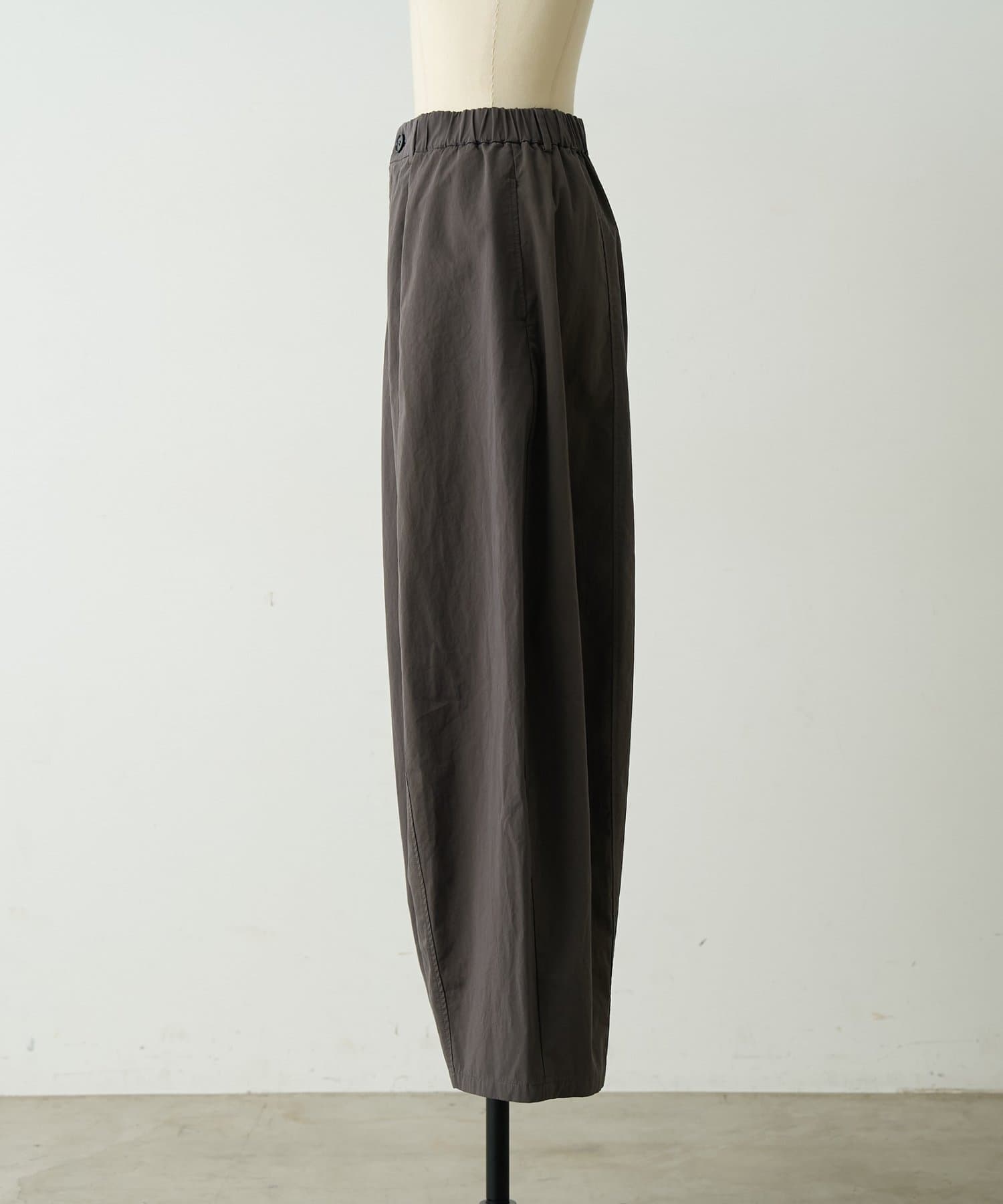 丸みのある立体的なシルエットが特徴のコットンバレルパンツ。