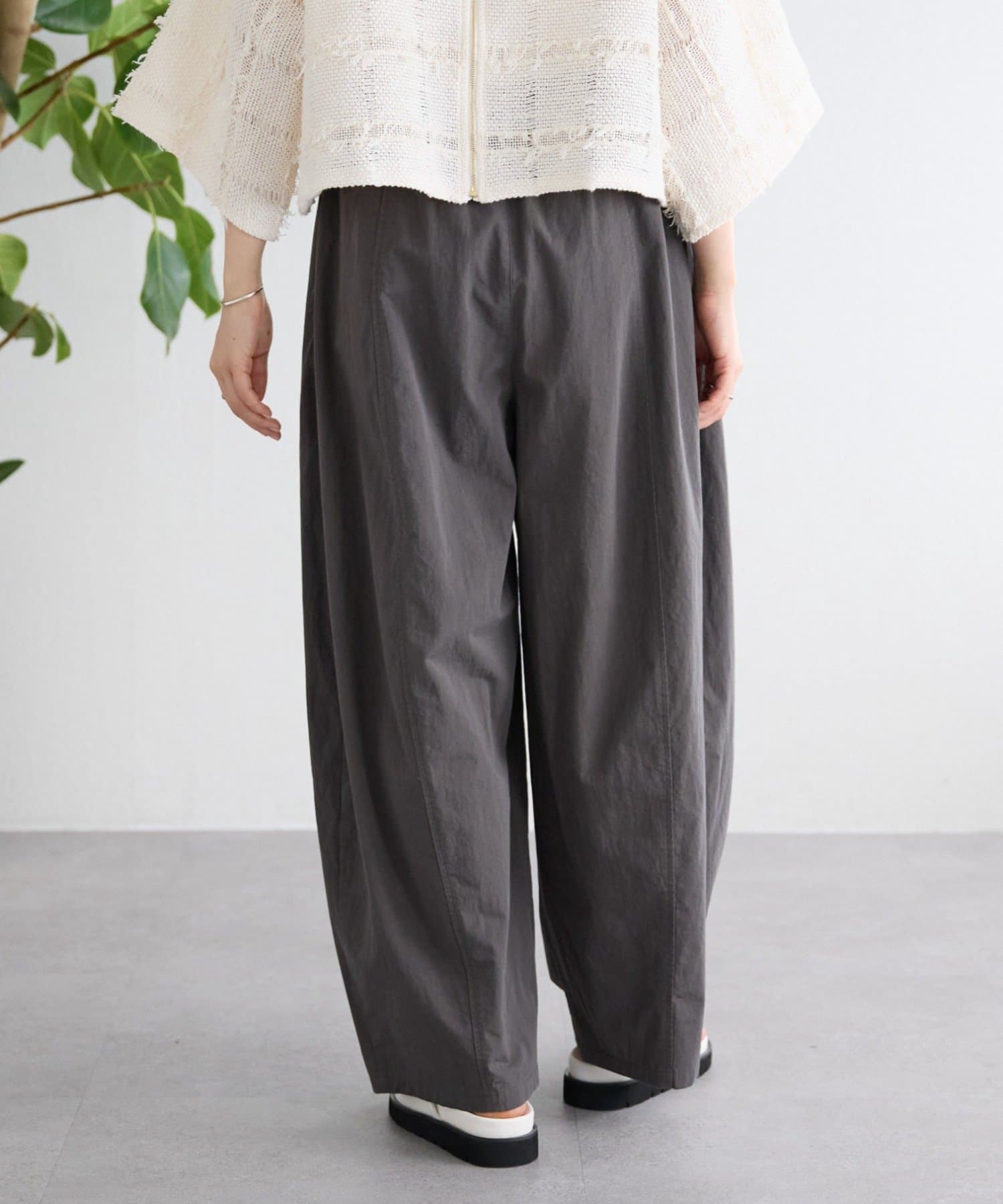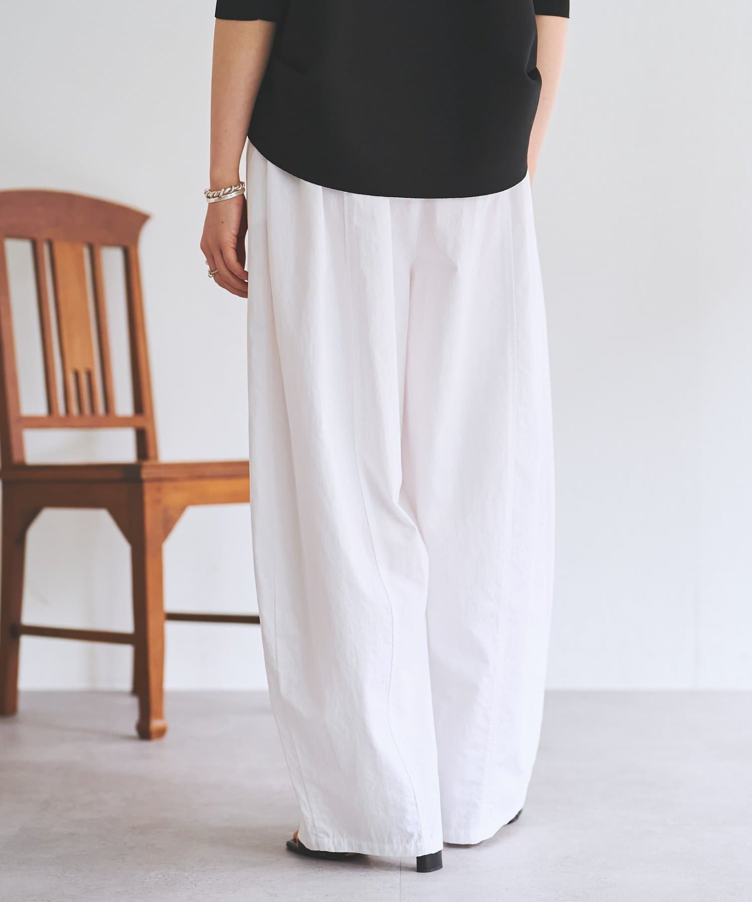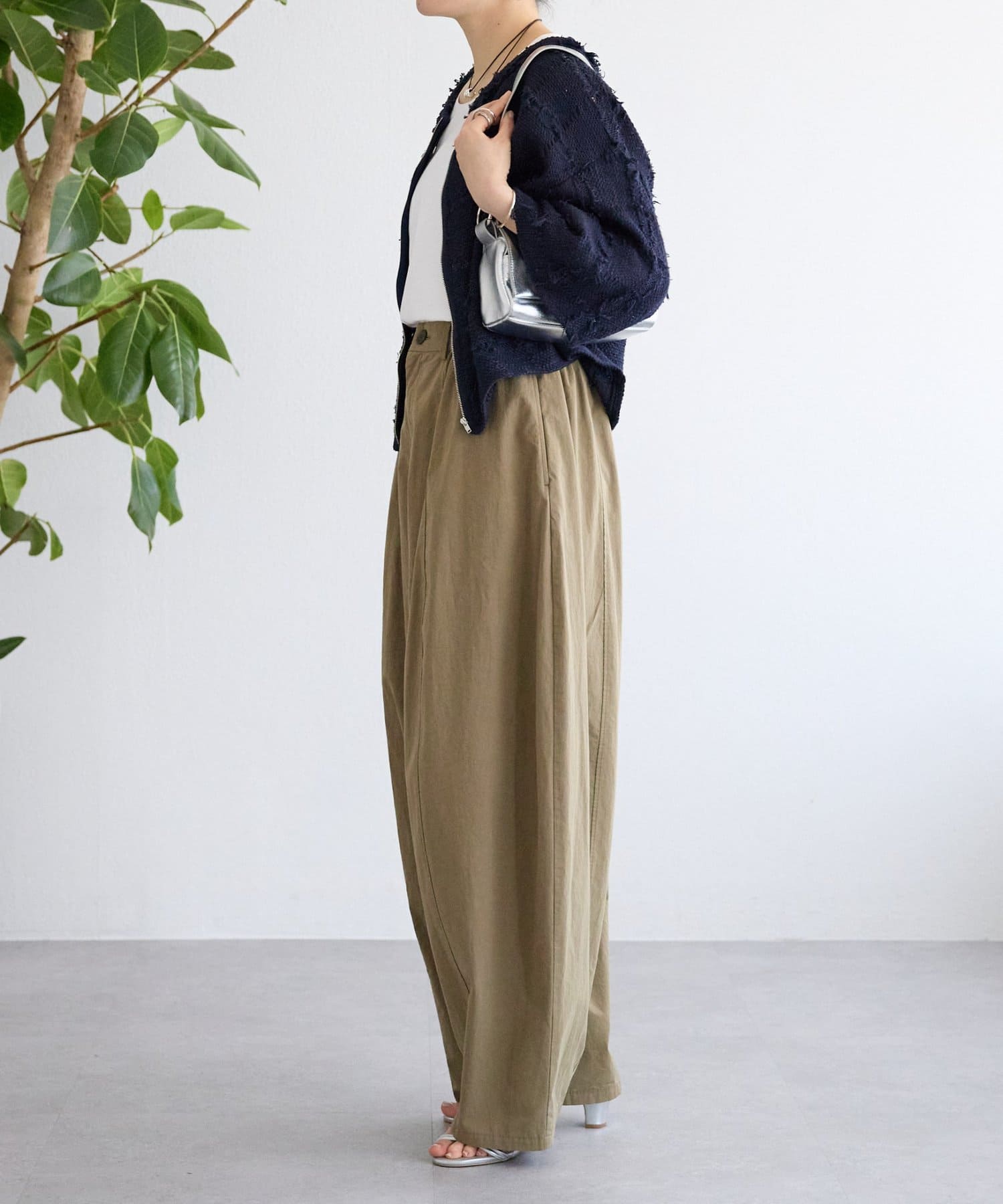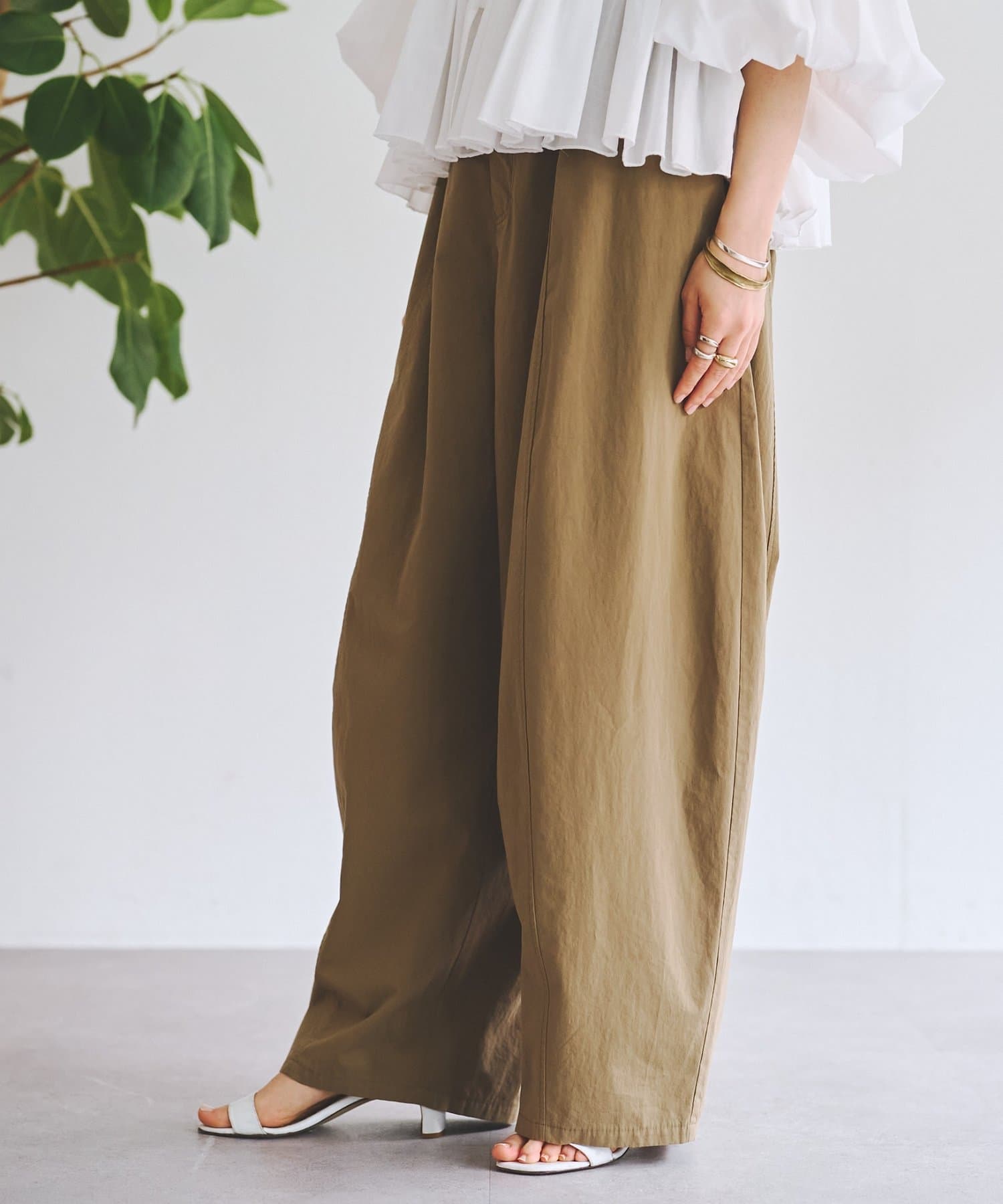 丸みのある立体的なシルエットが特徴のコットンバレルパンツ。