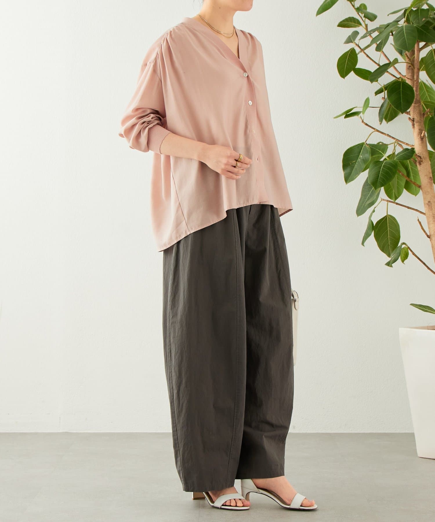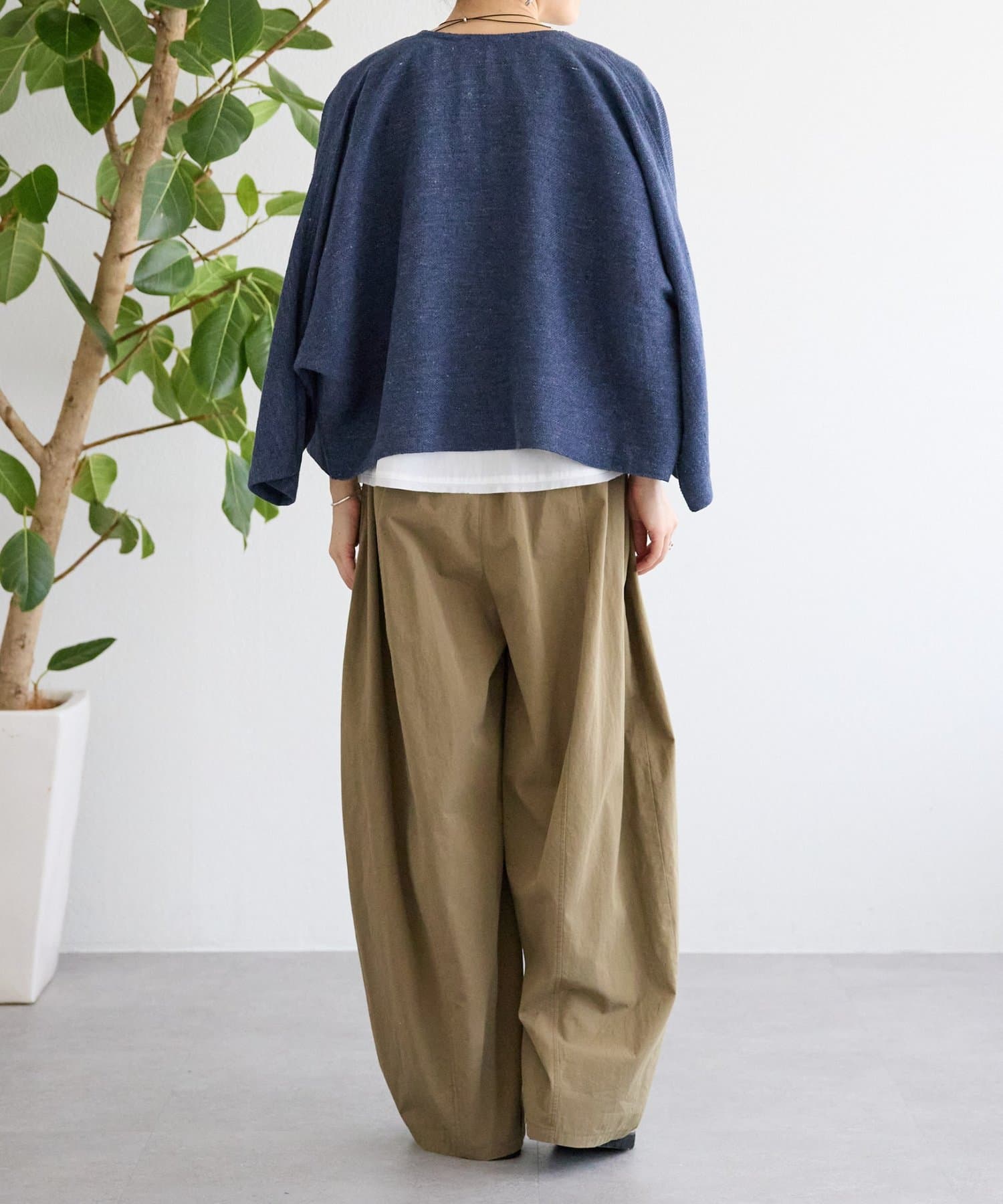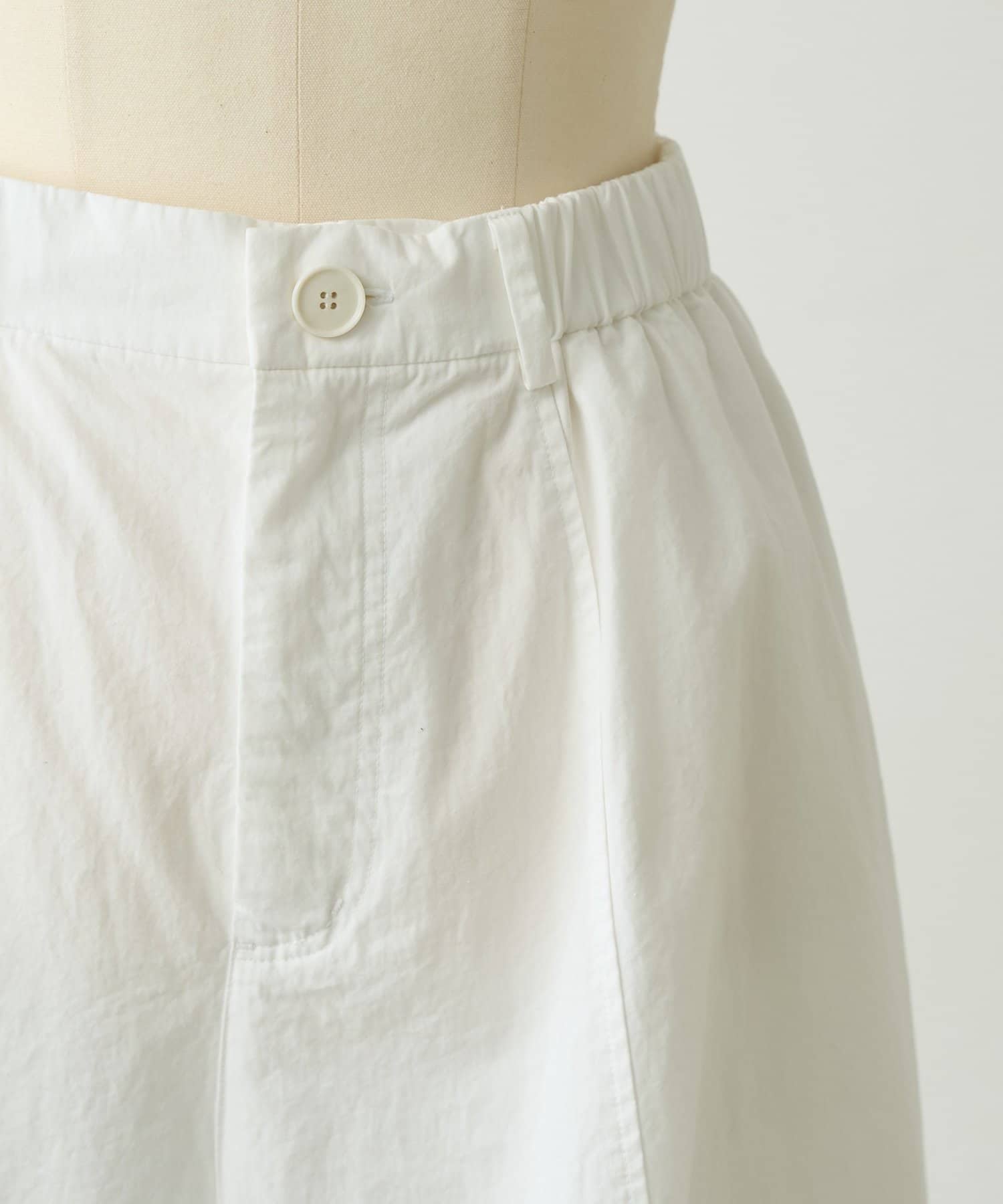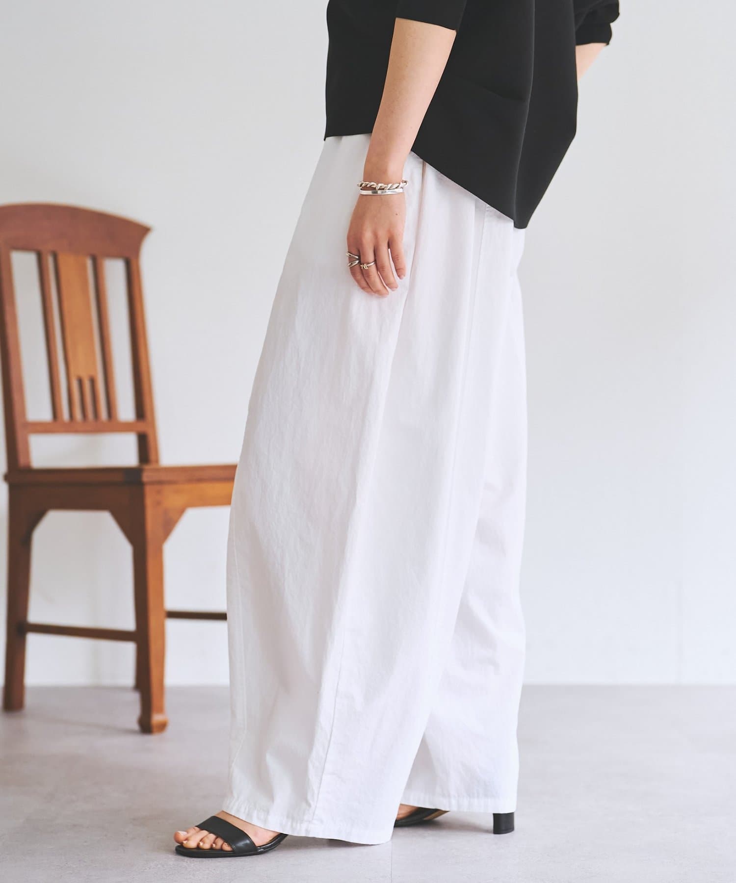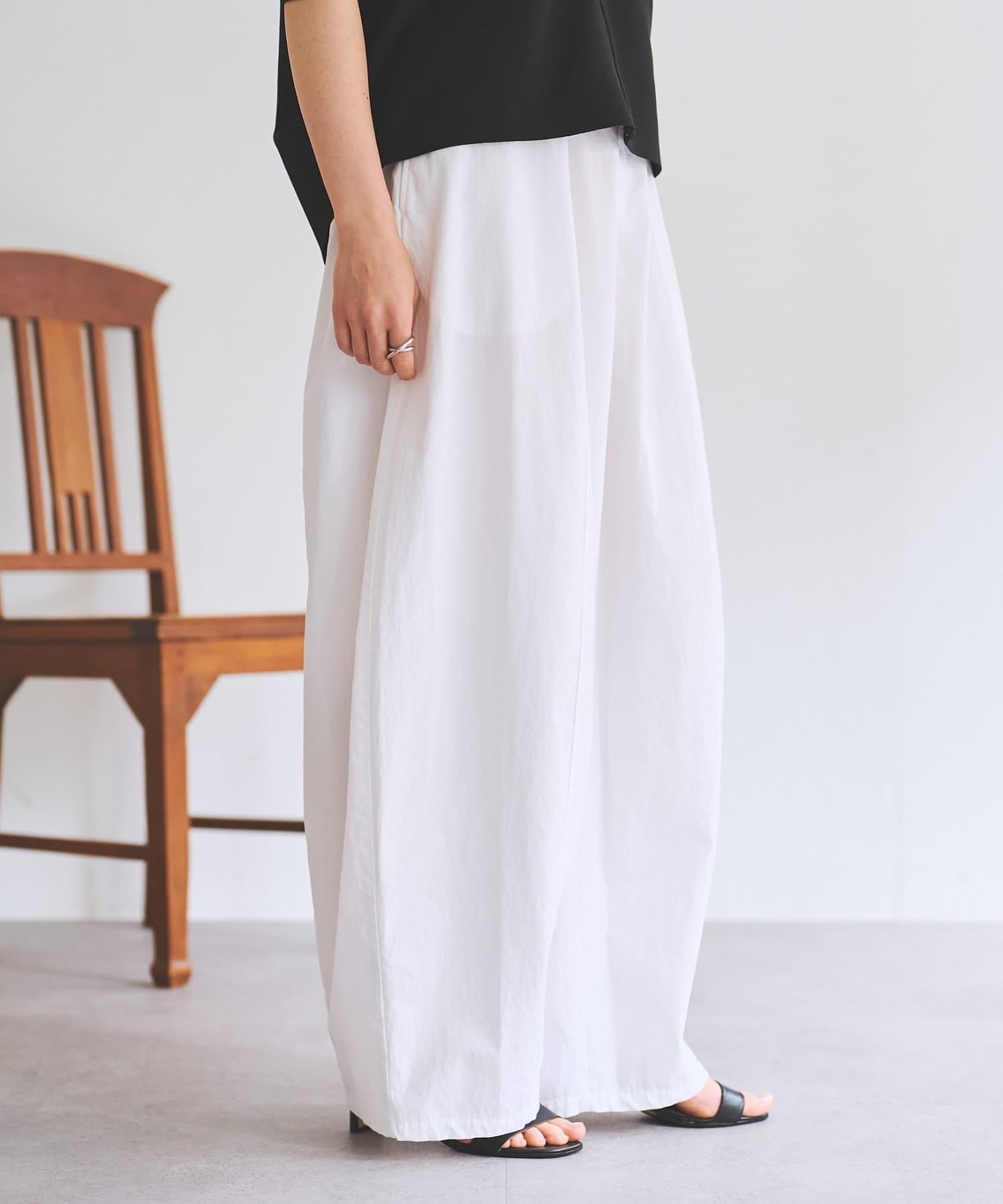 丸みのある立体的なシルエットが特徴のコットンバレルパンツ。